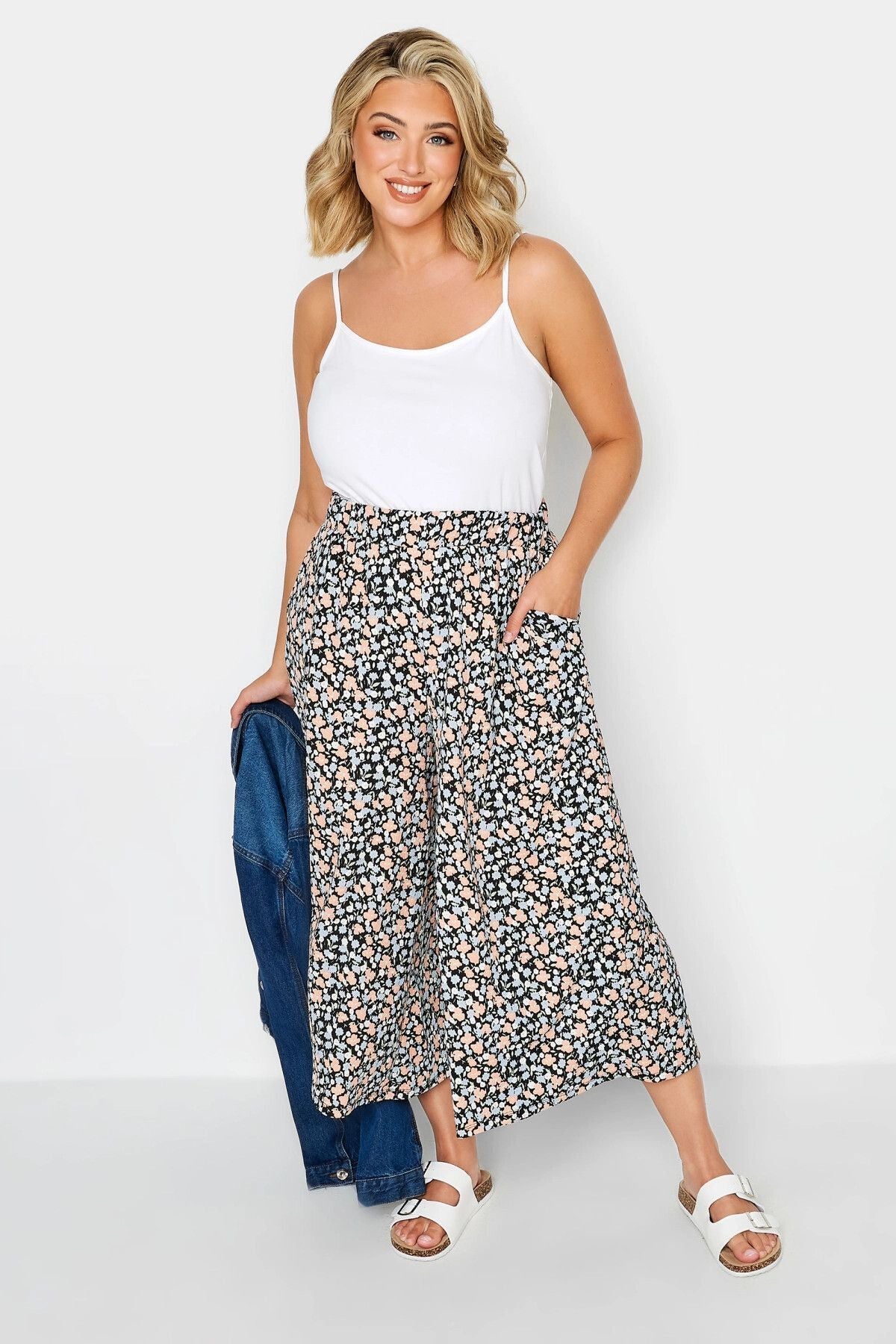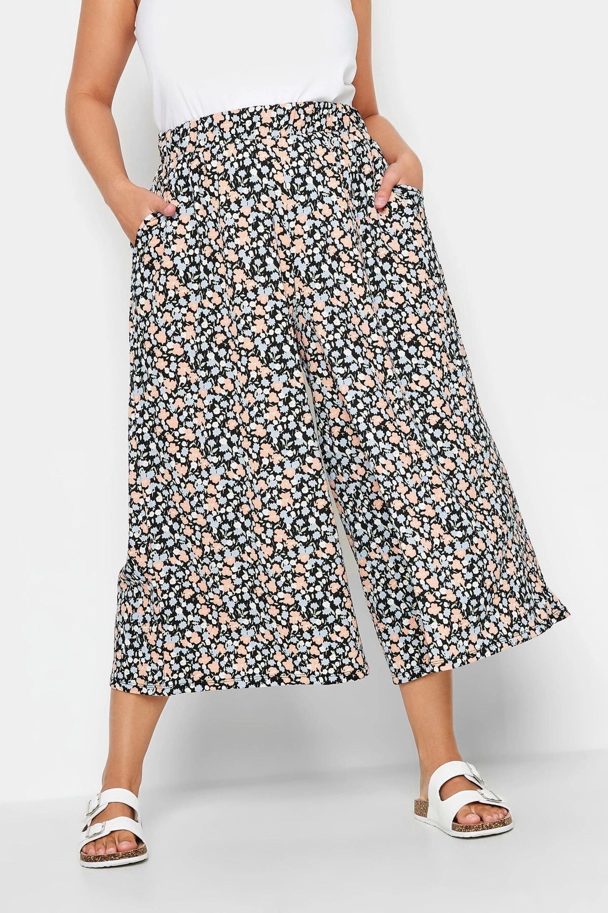 • Büyük Beden Desenli Bol Kesim Likralı Kapri Pantolon 302432