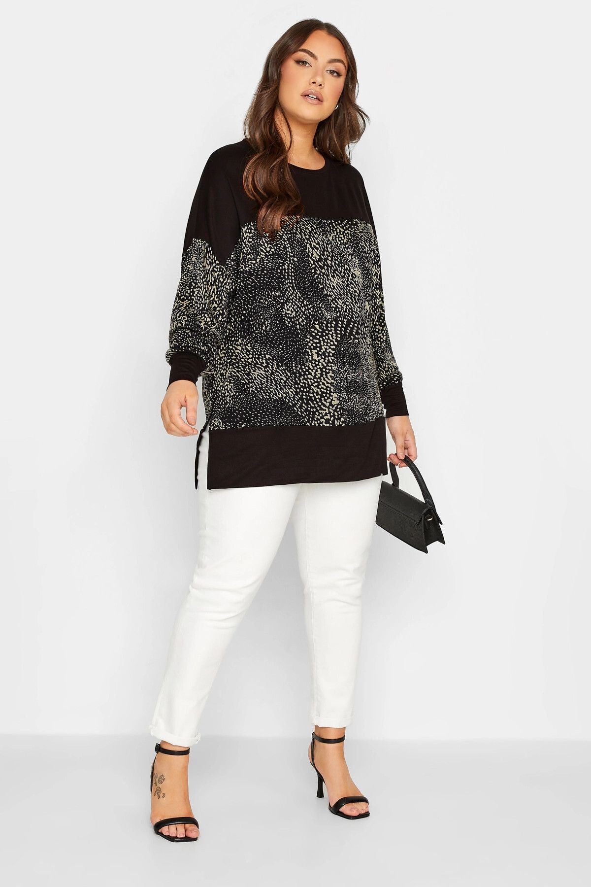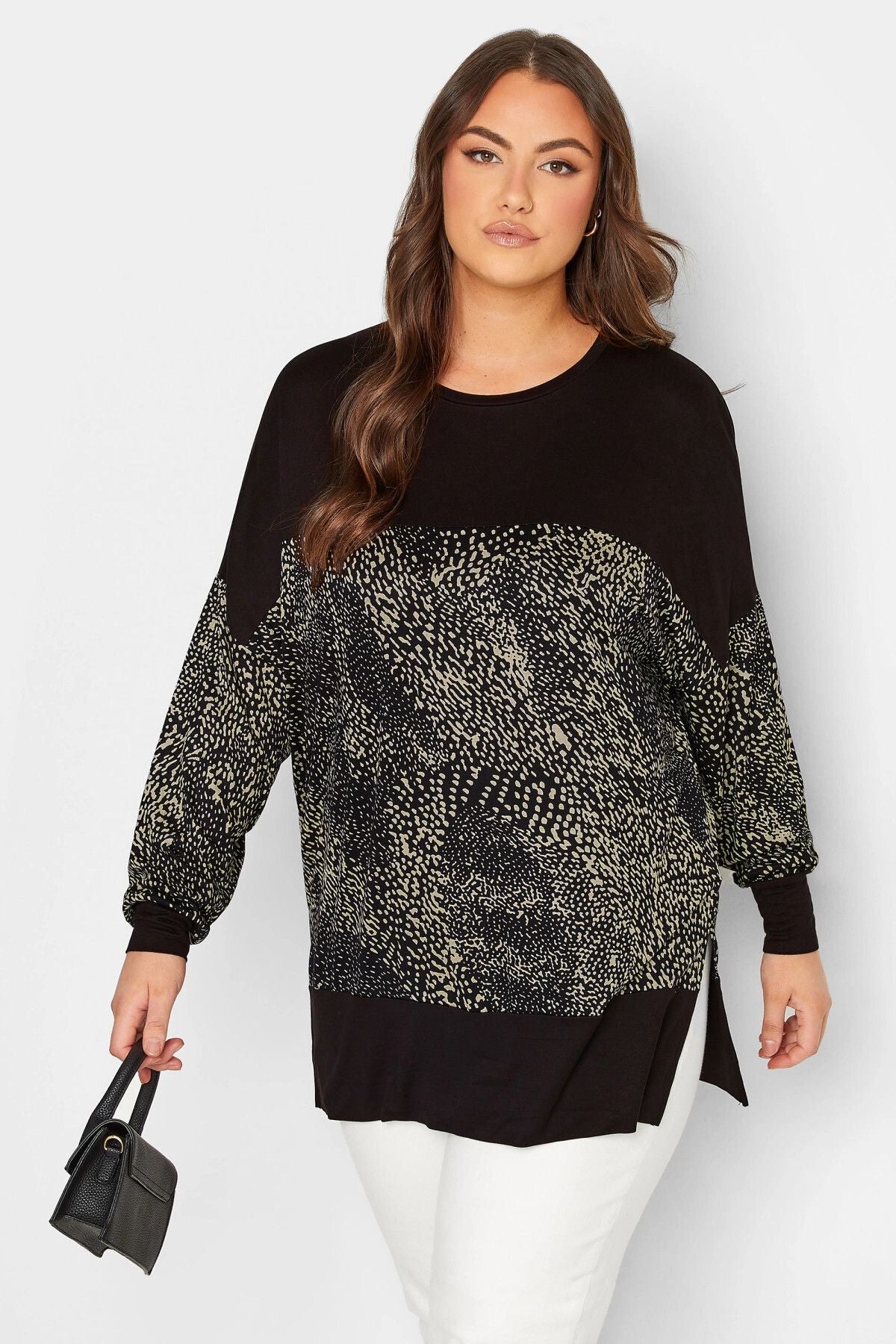 Büyük Beden Desenli Esnek Kumaş Uzun Bluz 301528