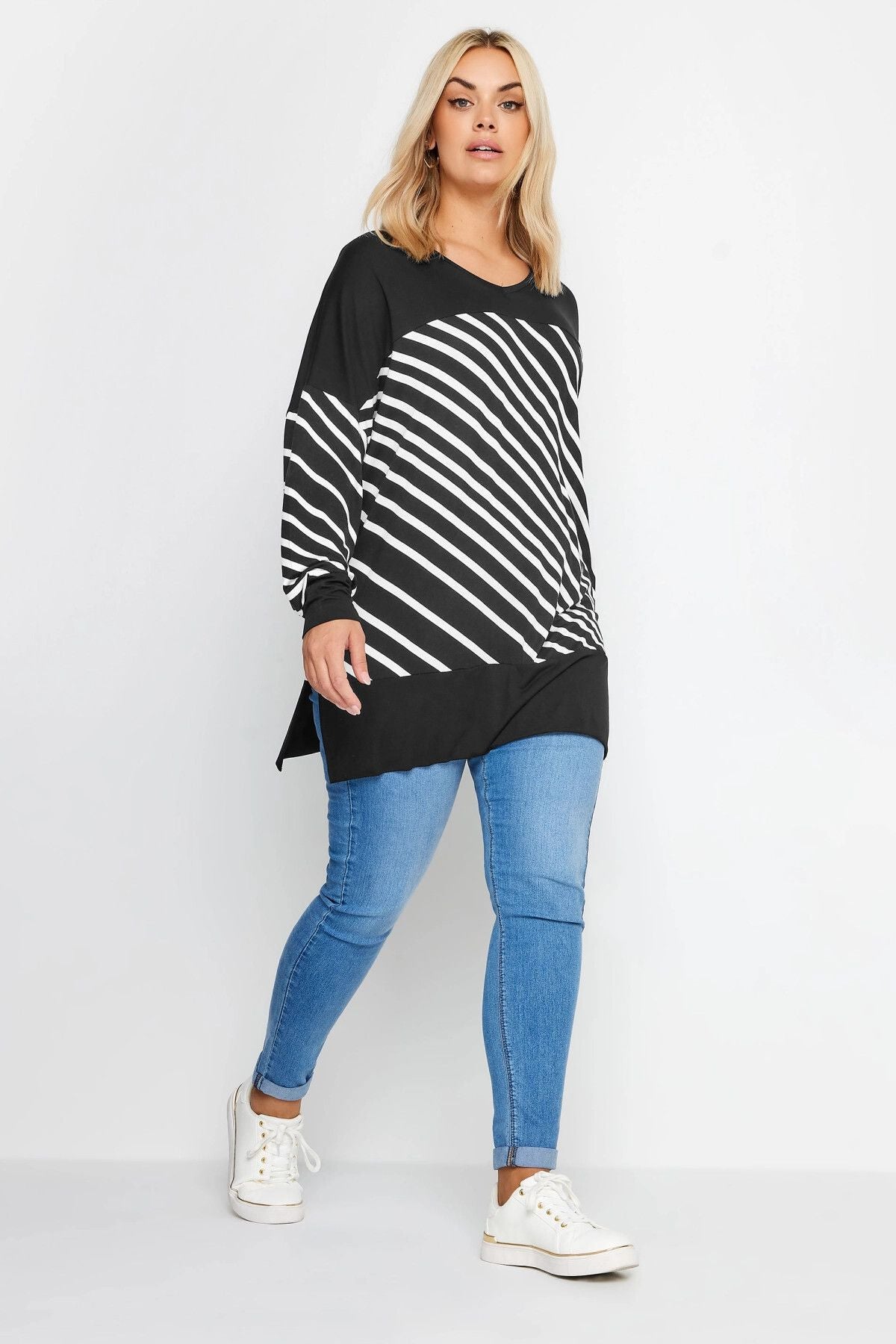 Büyük Beden Desenli Esnek Kumaş Uzun Kollu Uzun Kesim Bluz 303056