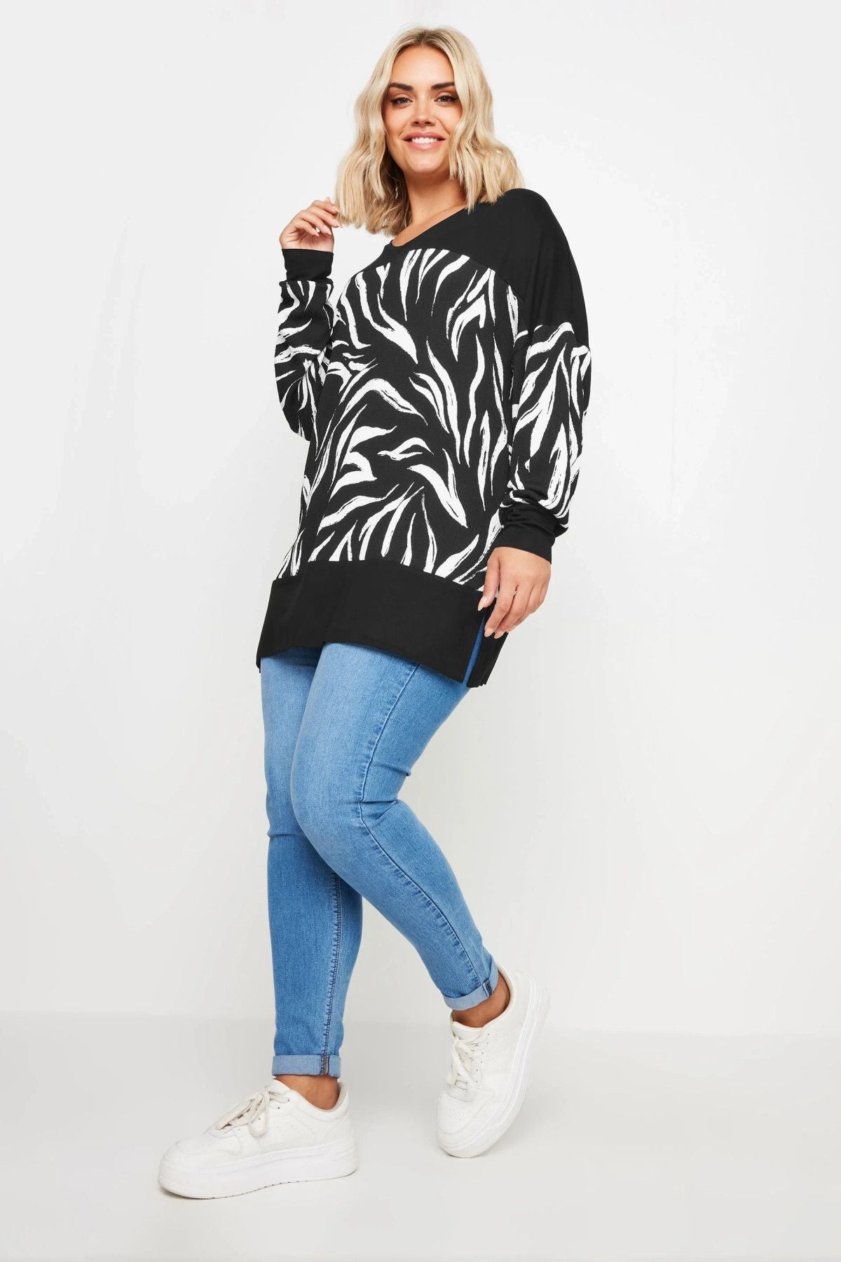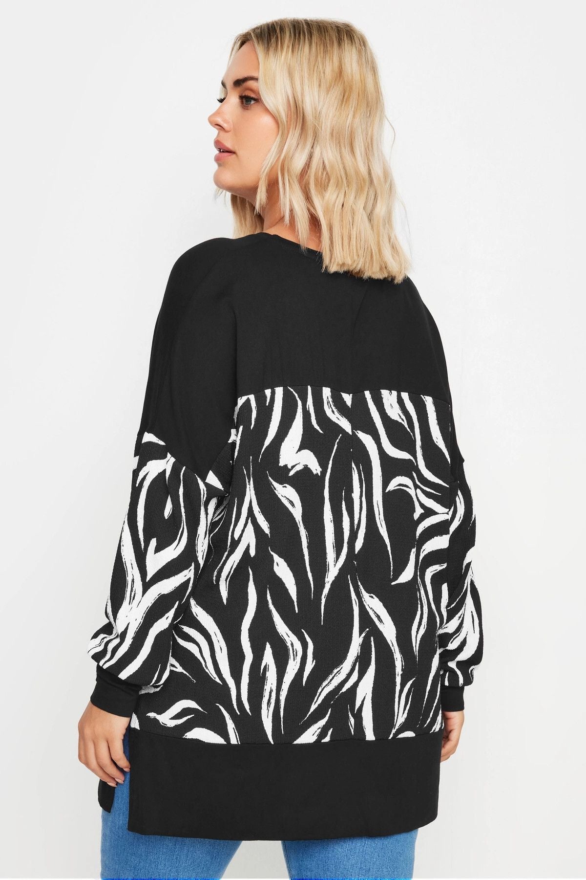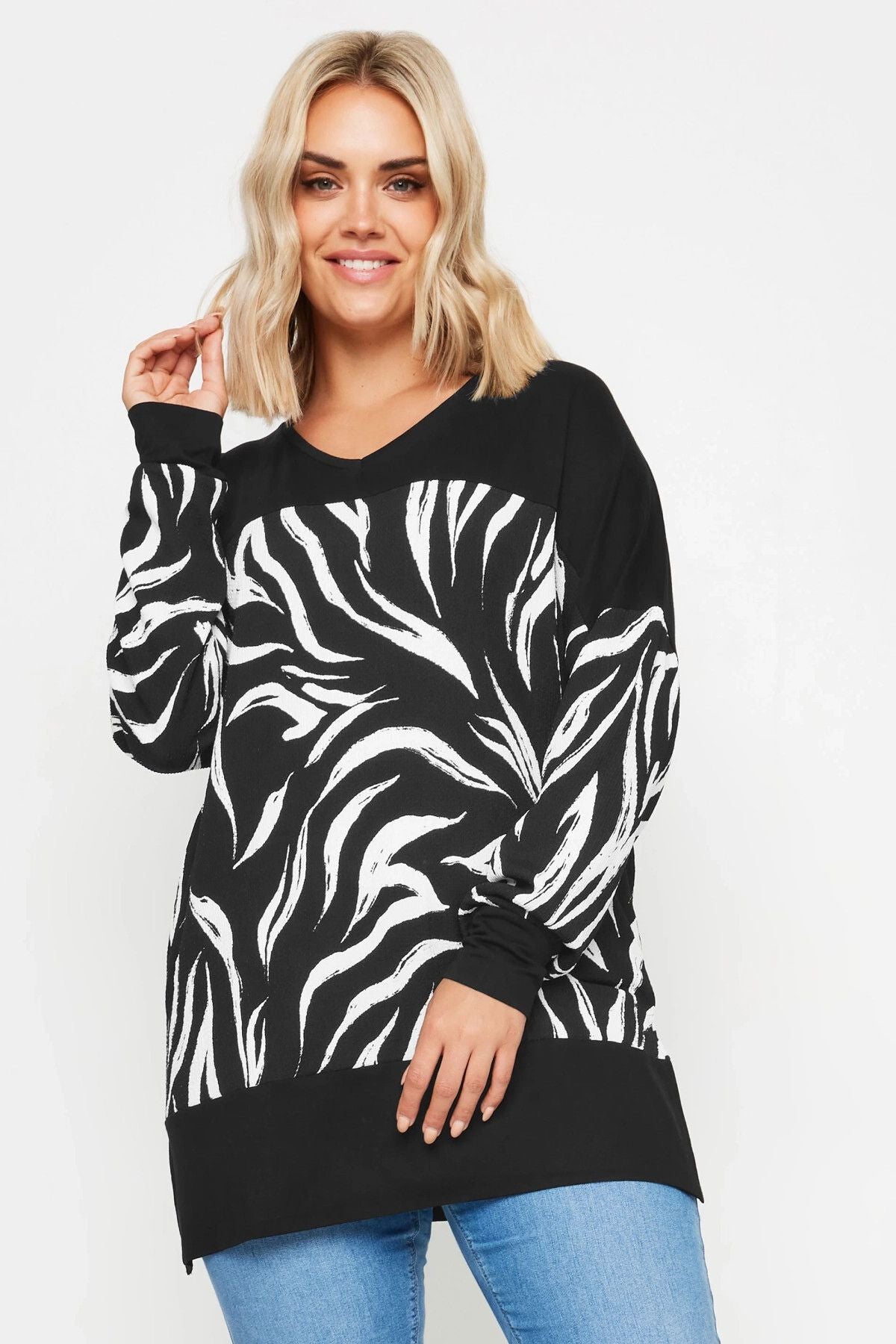 Büyük Beden Desenli Esnek Kumaş Uzun Kollu Uzun Kesim Bluz 303057