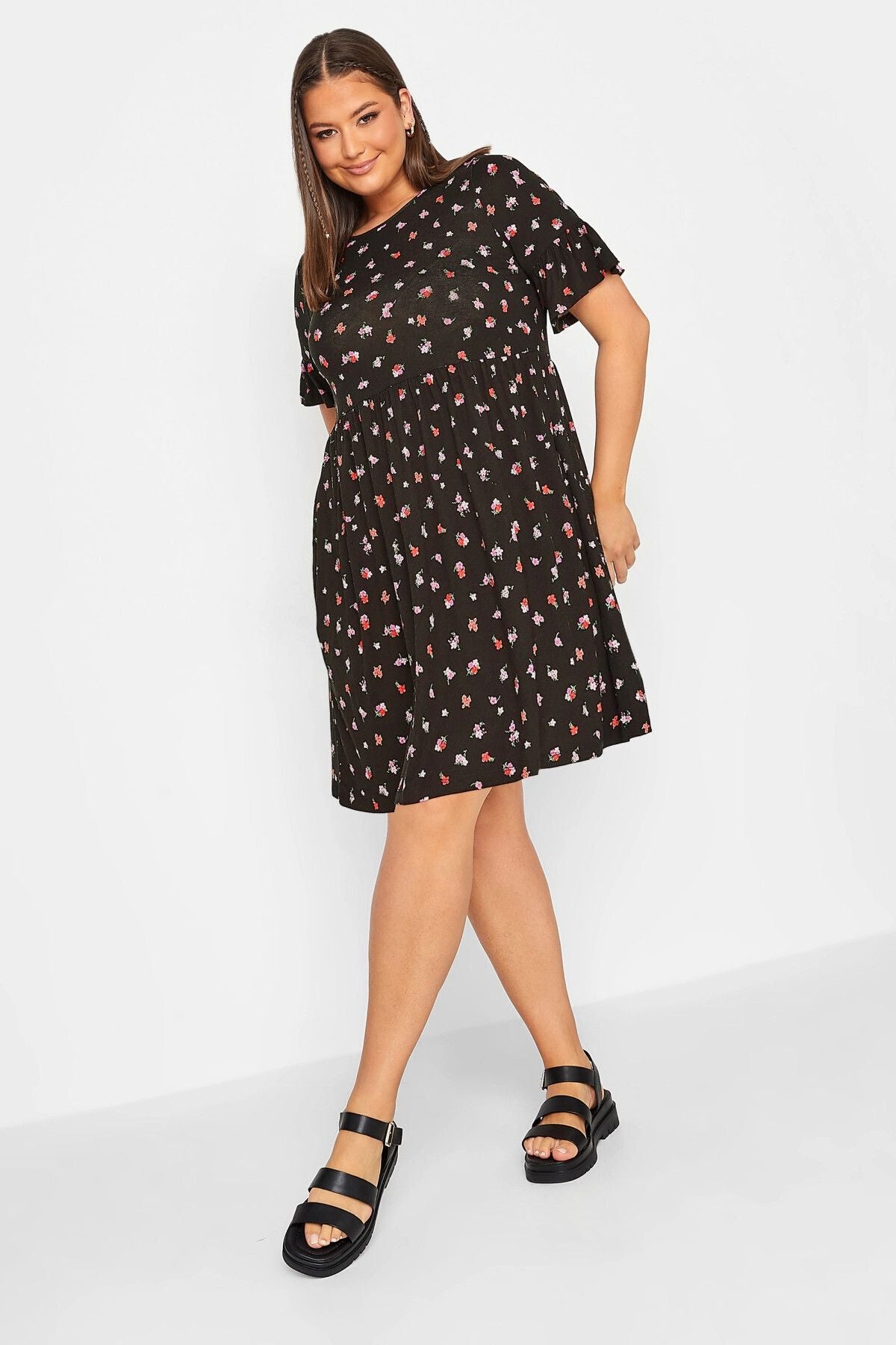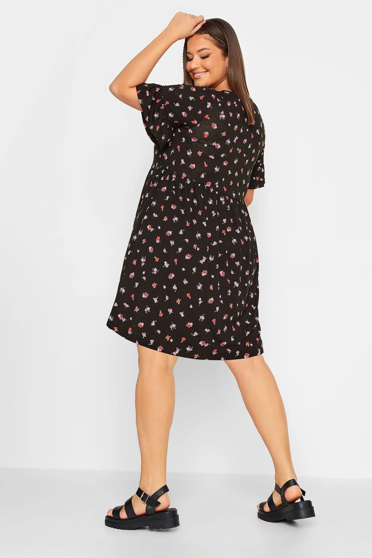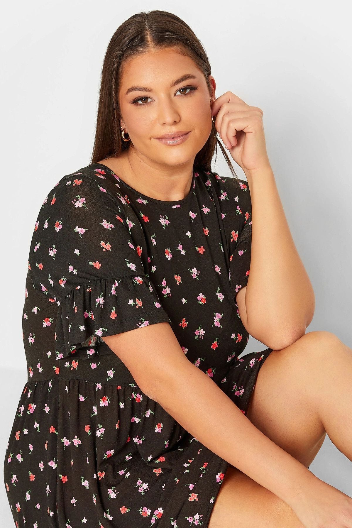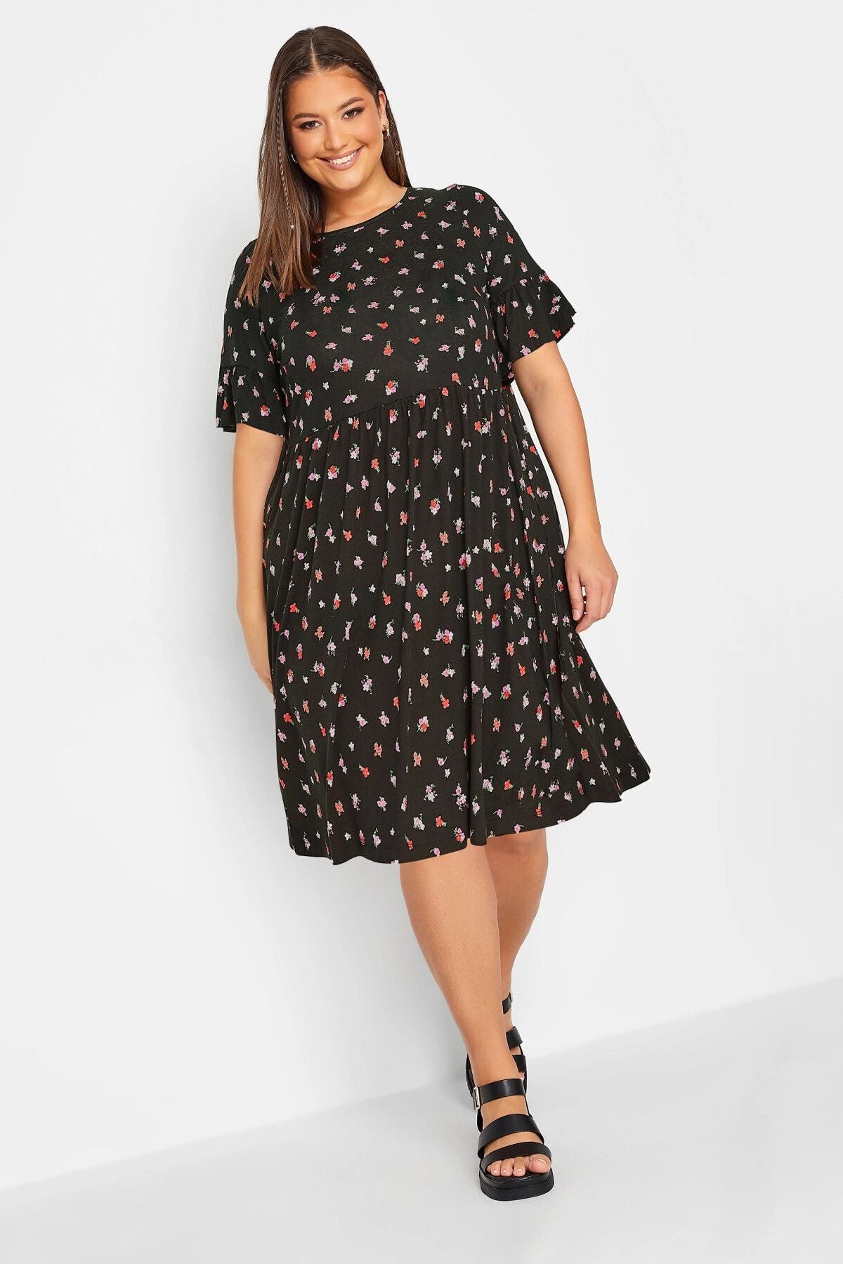 Büyük Beden Desenli Fırfırlı Yarım Kol Likralı Kısa Elbise 302356