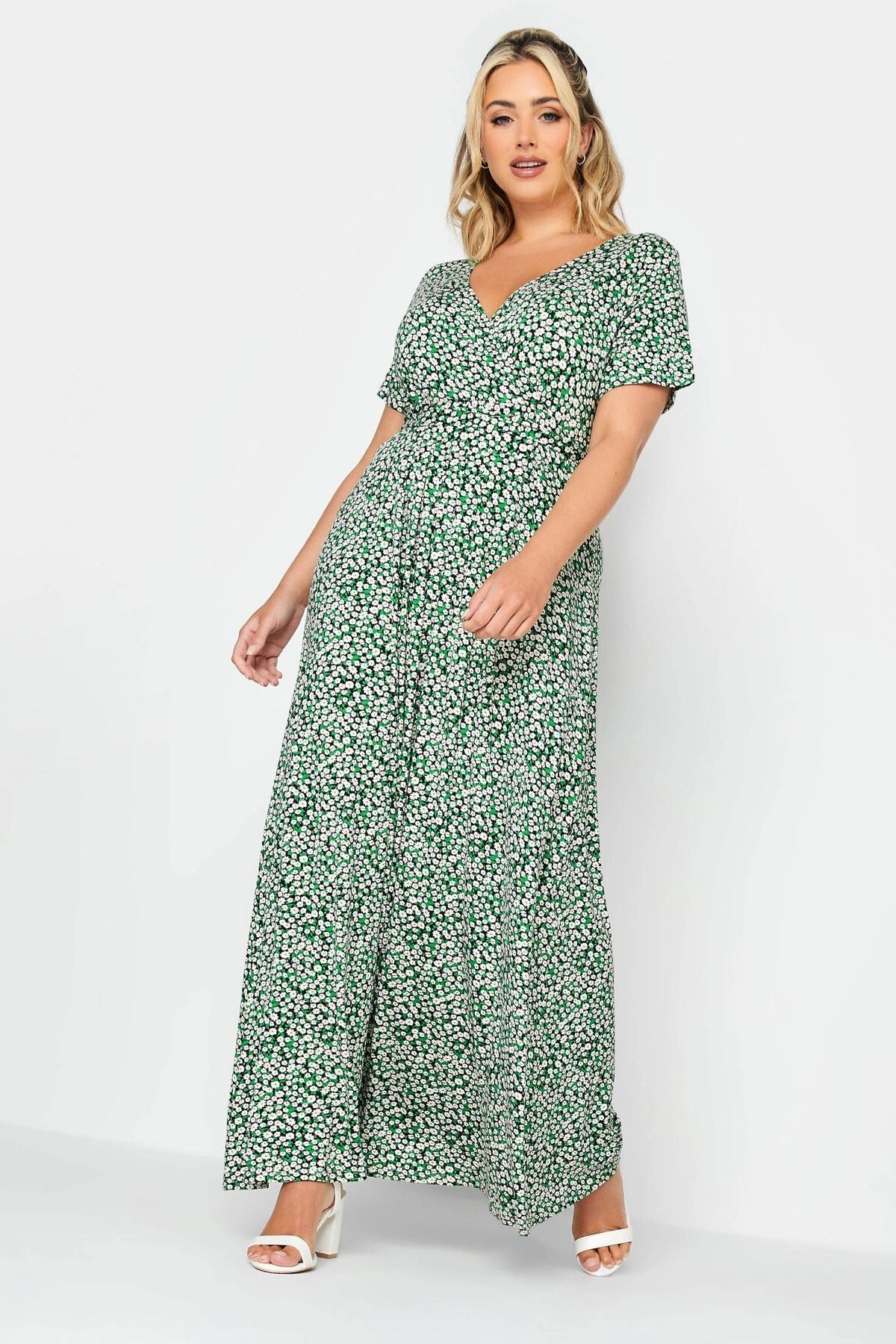 Büyük Beden Desenli V Yaka Uzun Esnek Kumaş Elbise 302372