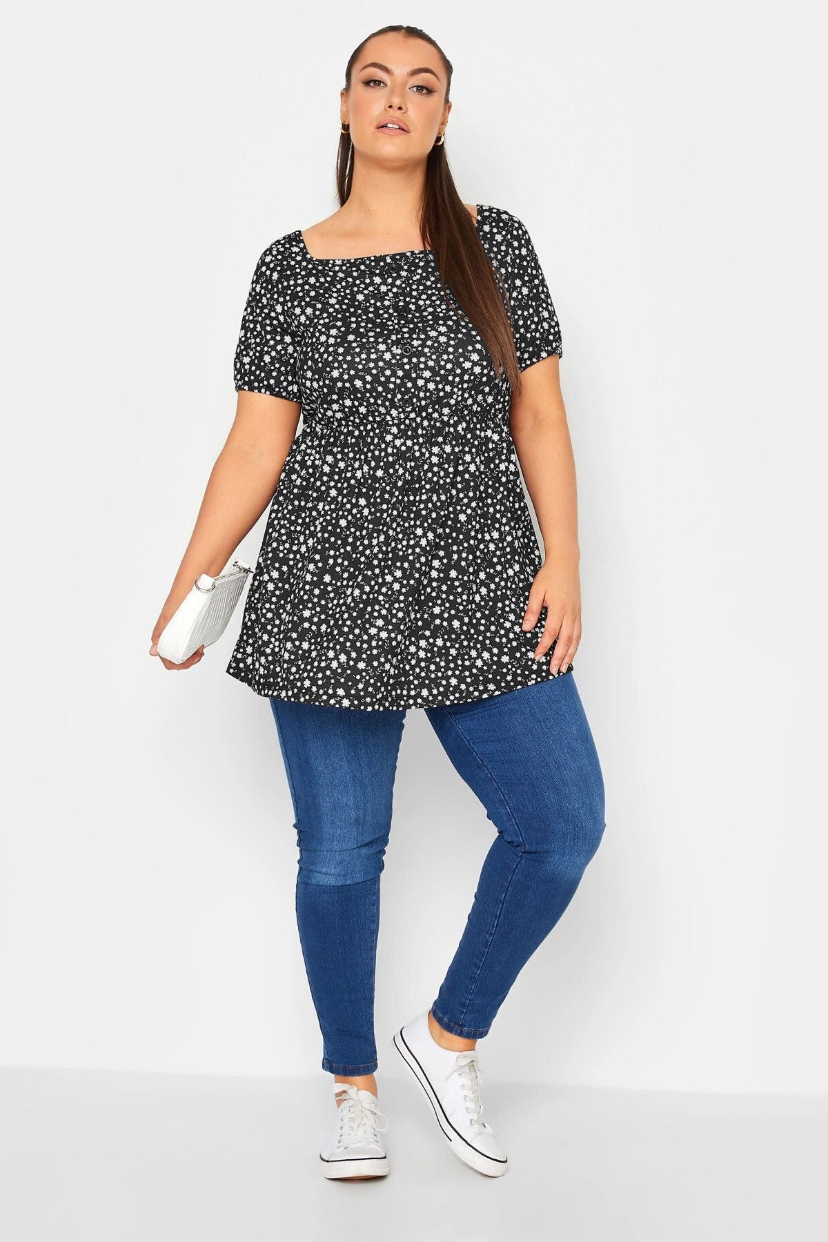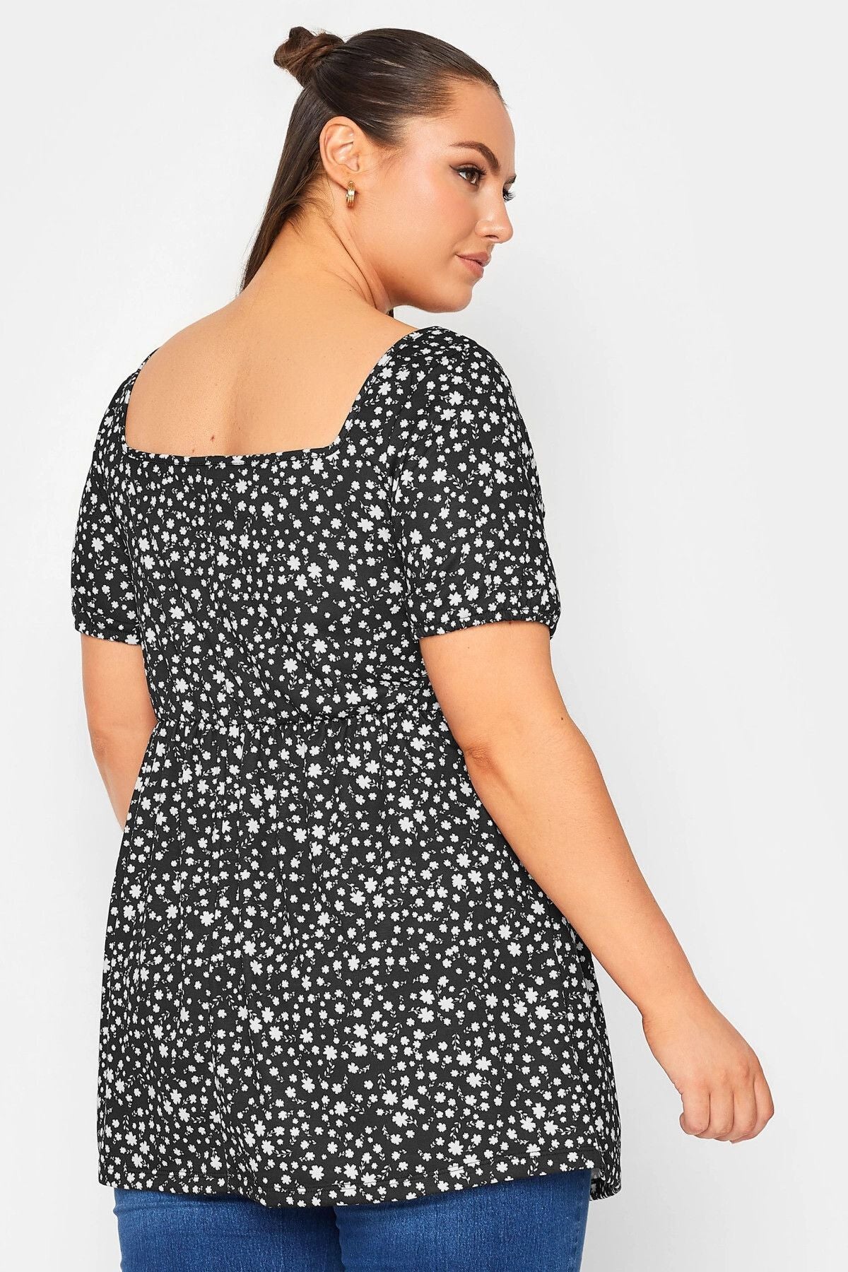 Büyük Beden Düğme Detaylı Kare Yaka Desenli Esnek Bluz 215849
