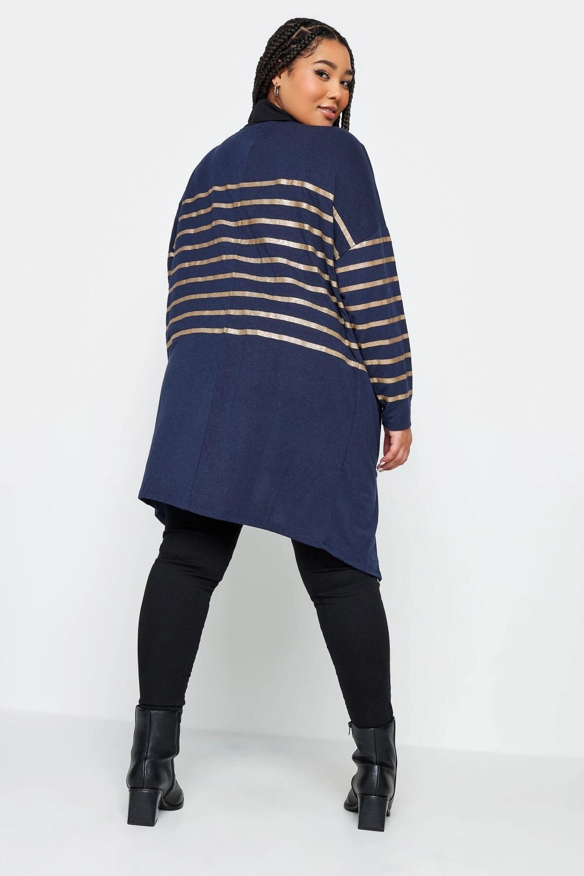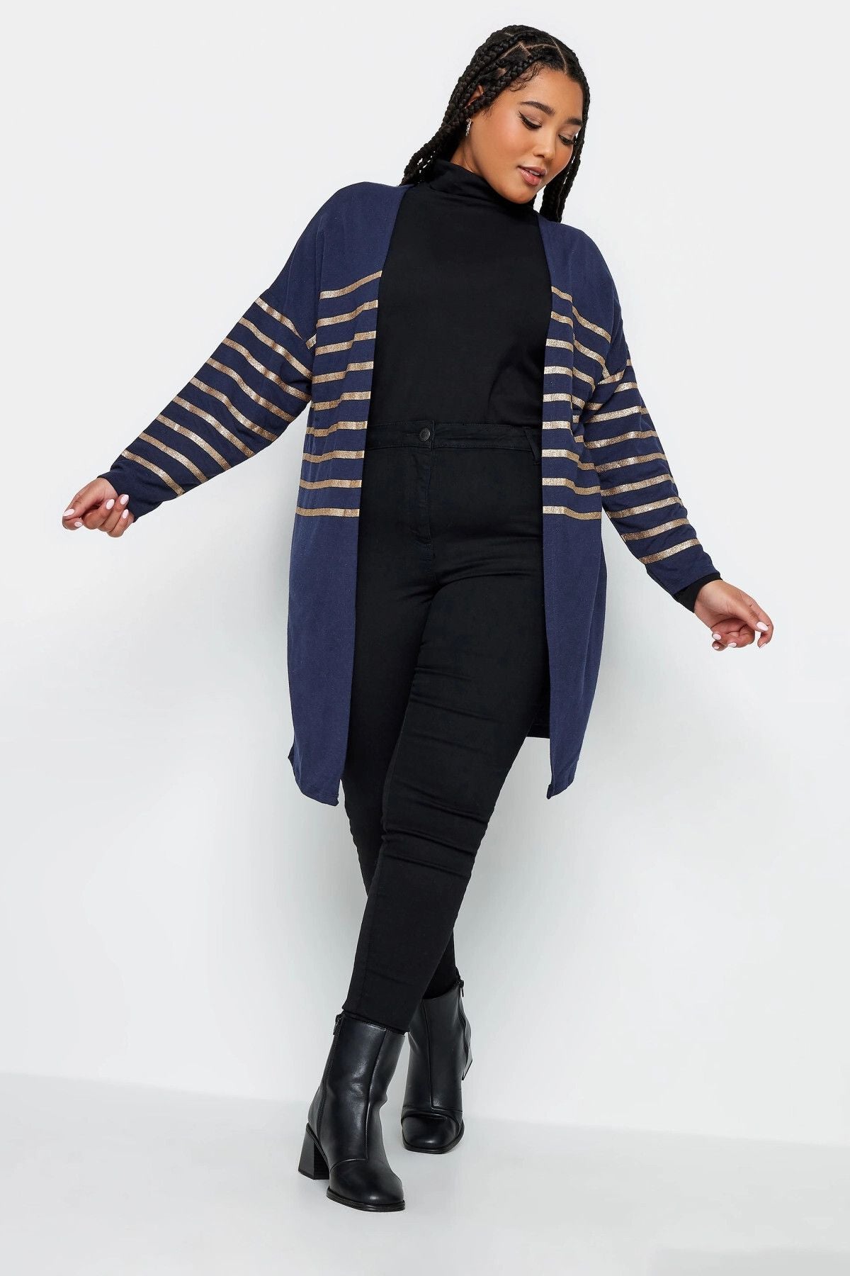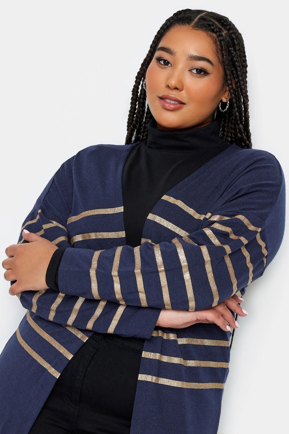 Büyük Beden Düğmesiz Uzun Kollu Metalik Çizgili Hırka 302792