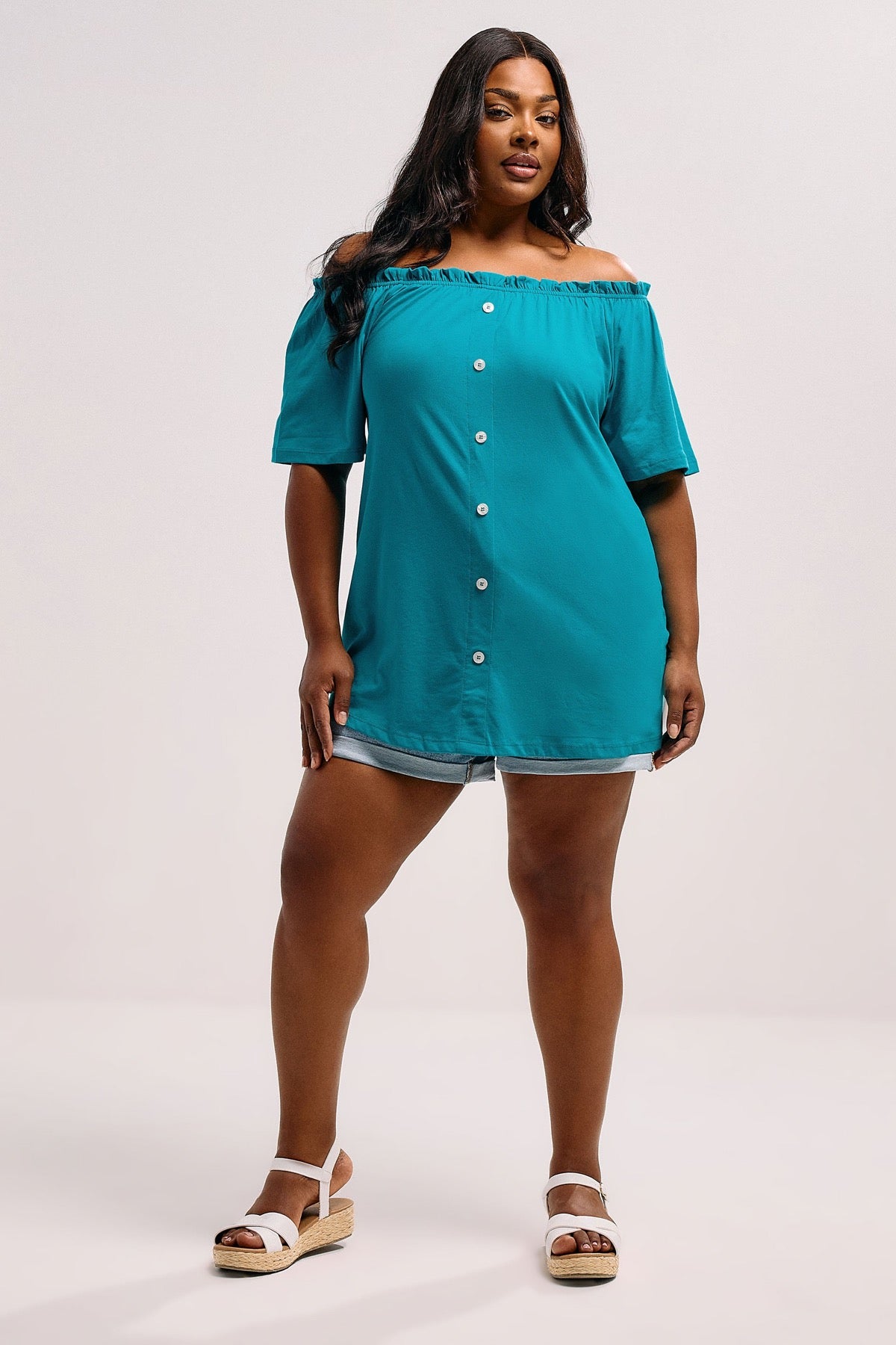 Büyük Beden Düşük Omuz Düğme Detaylı Straplez Bluz 322705