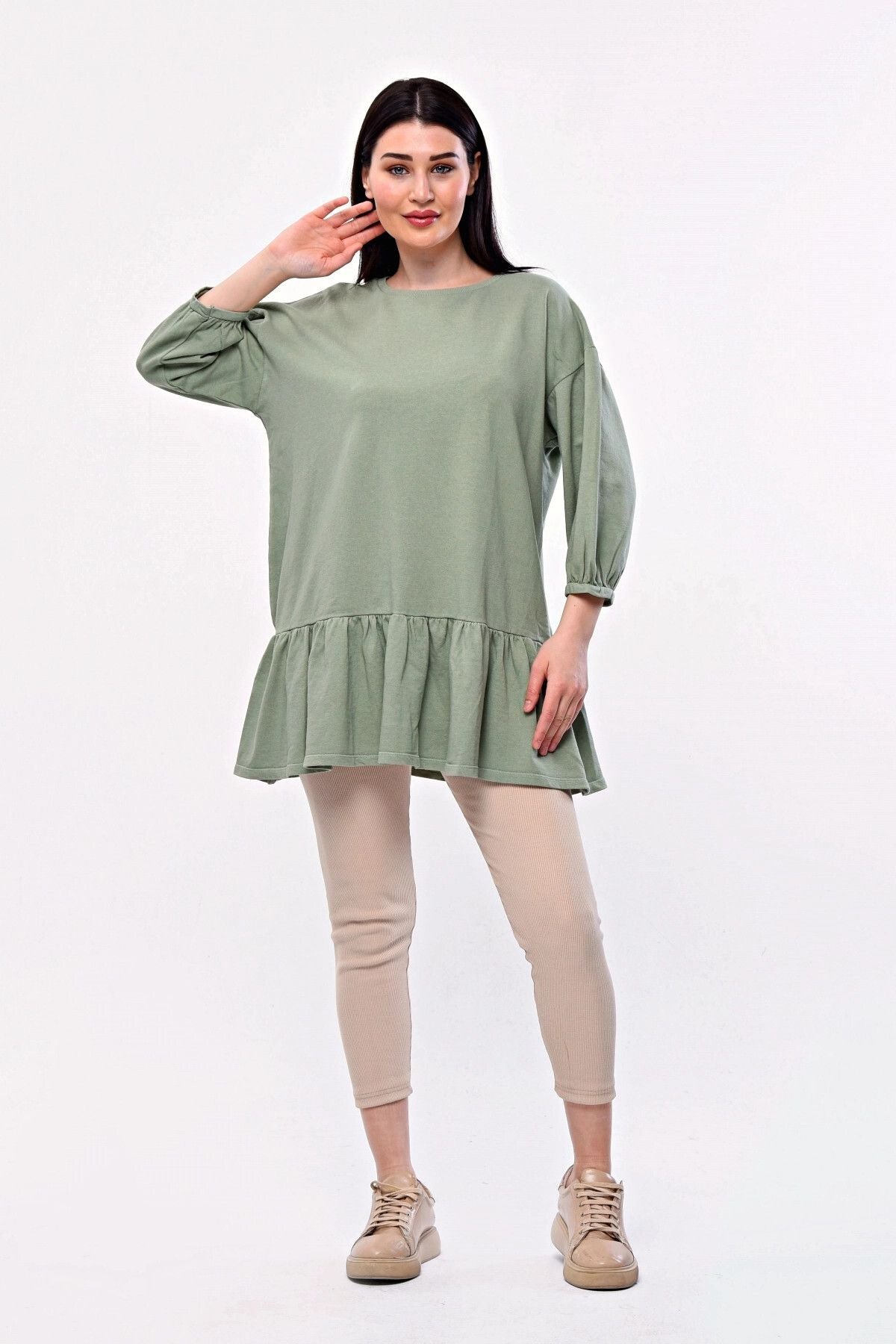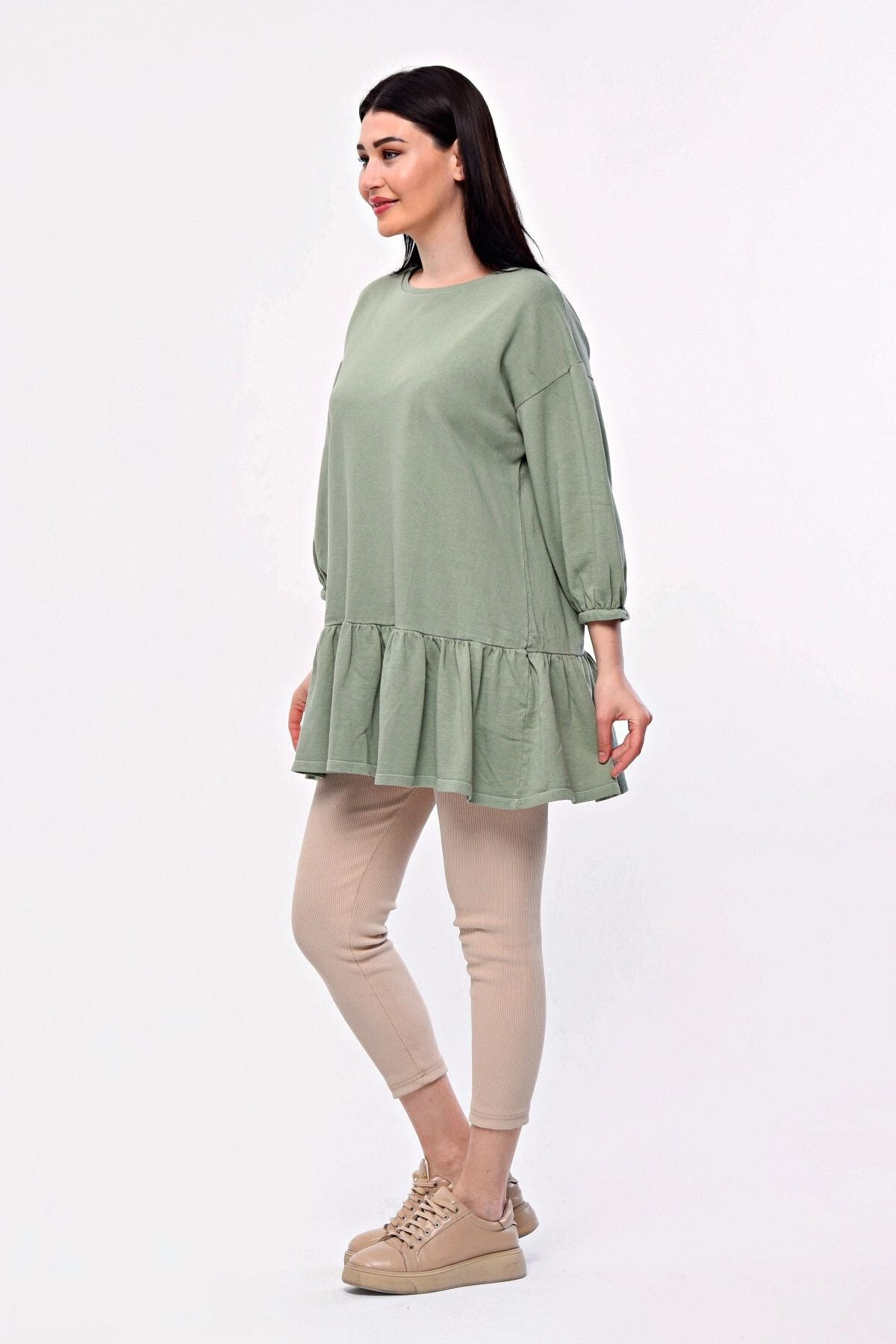 Büyük Beden Eteği Fırfır Detaylı Yarım Balon Kol Bluz 171915