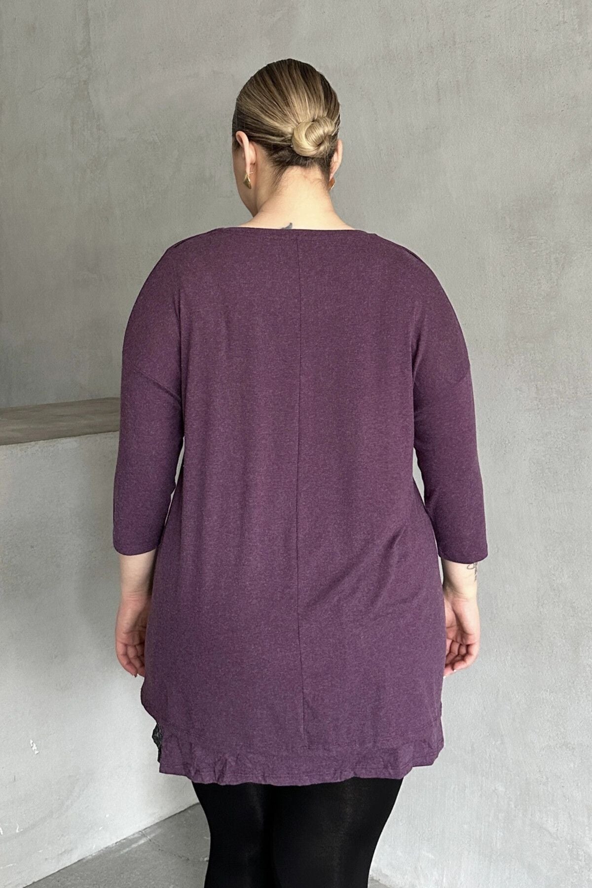 Büyük Beden Eteği Tül Detaylı Uzun Kollu İnce Bluz 84-106