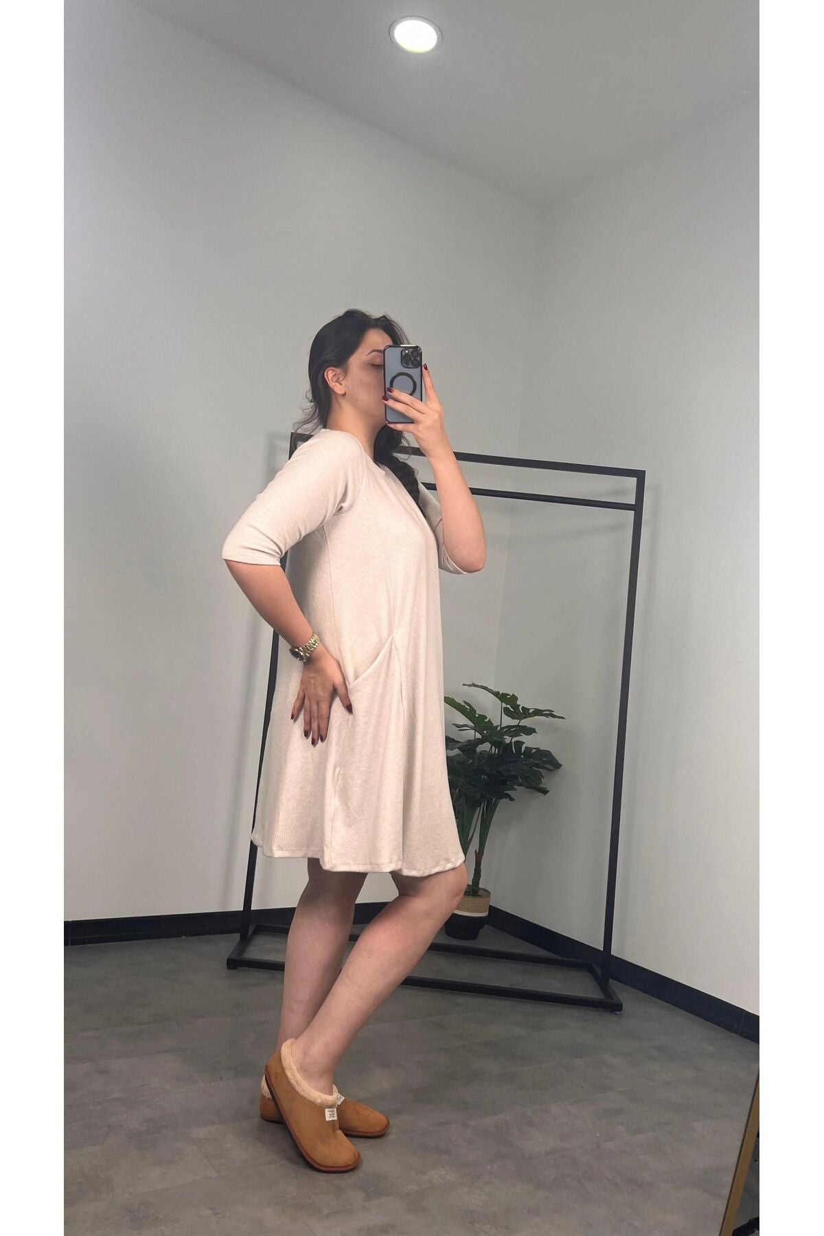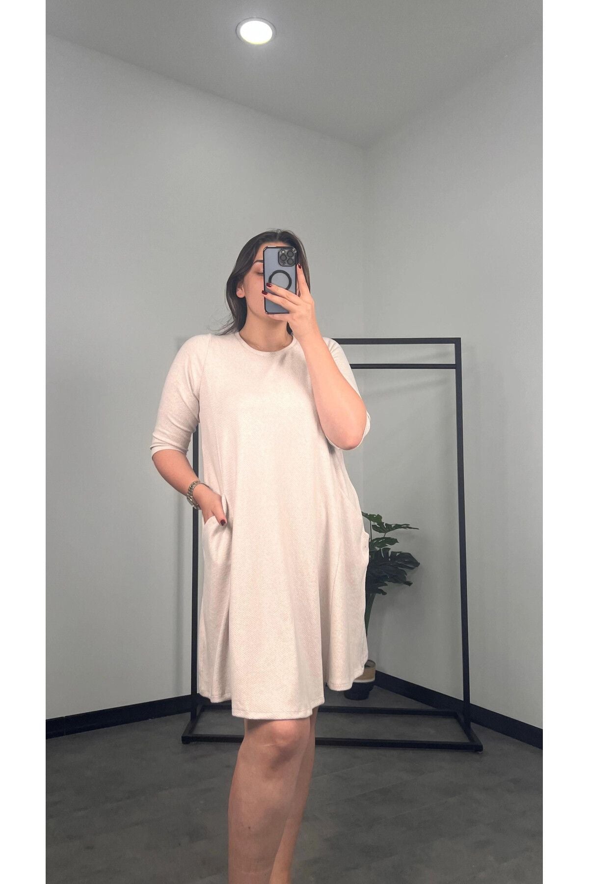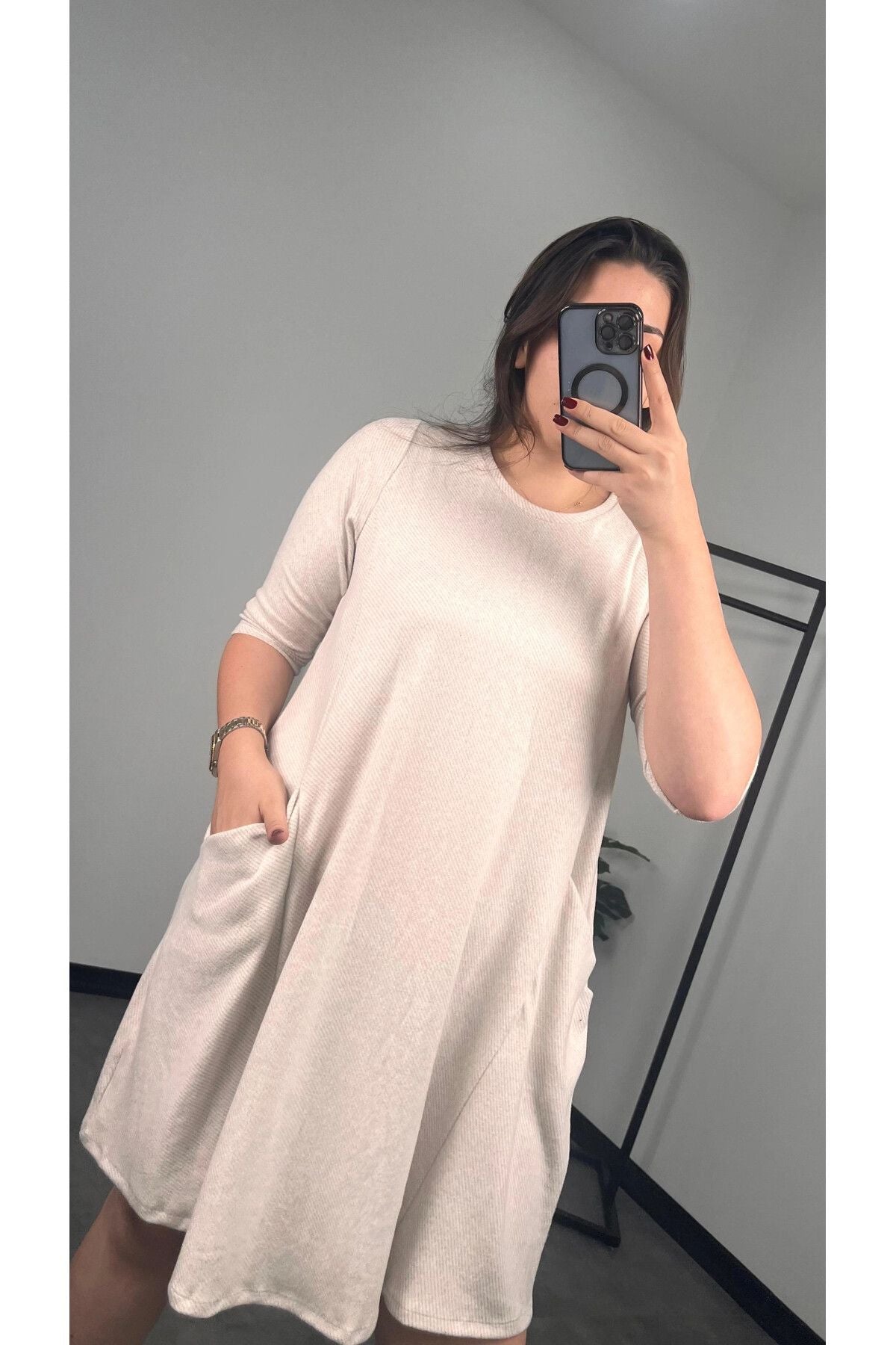 Büyük Beden Fakir Kol Bisiklet Yaka Cepli Elbise 301598