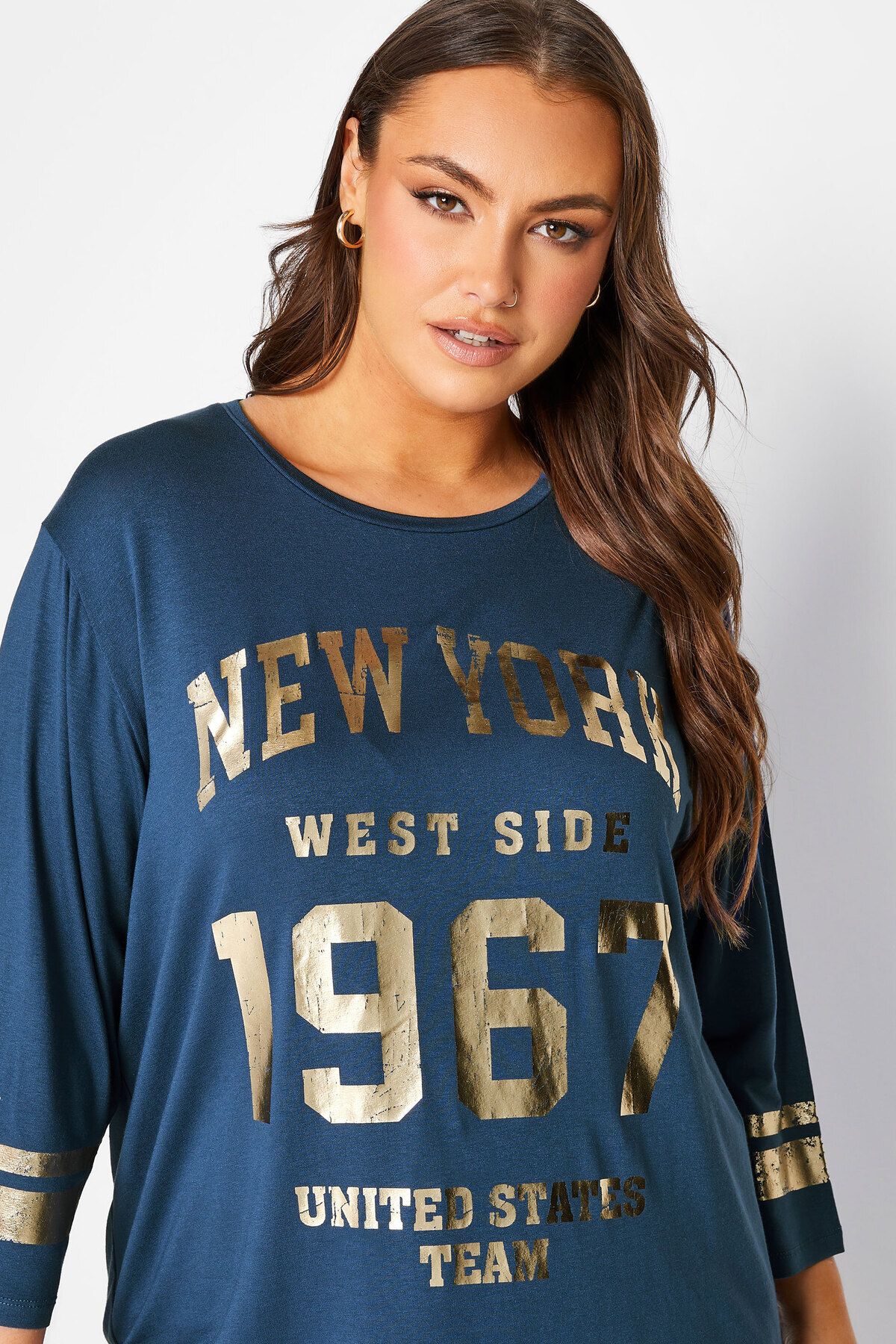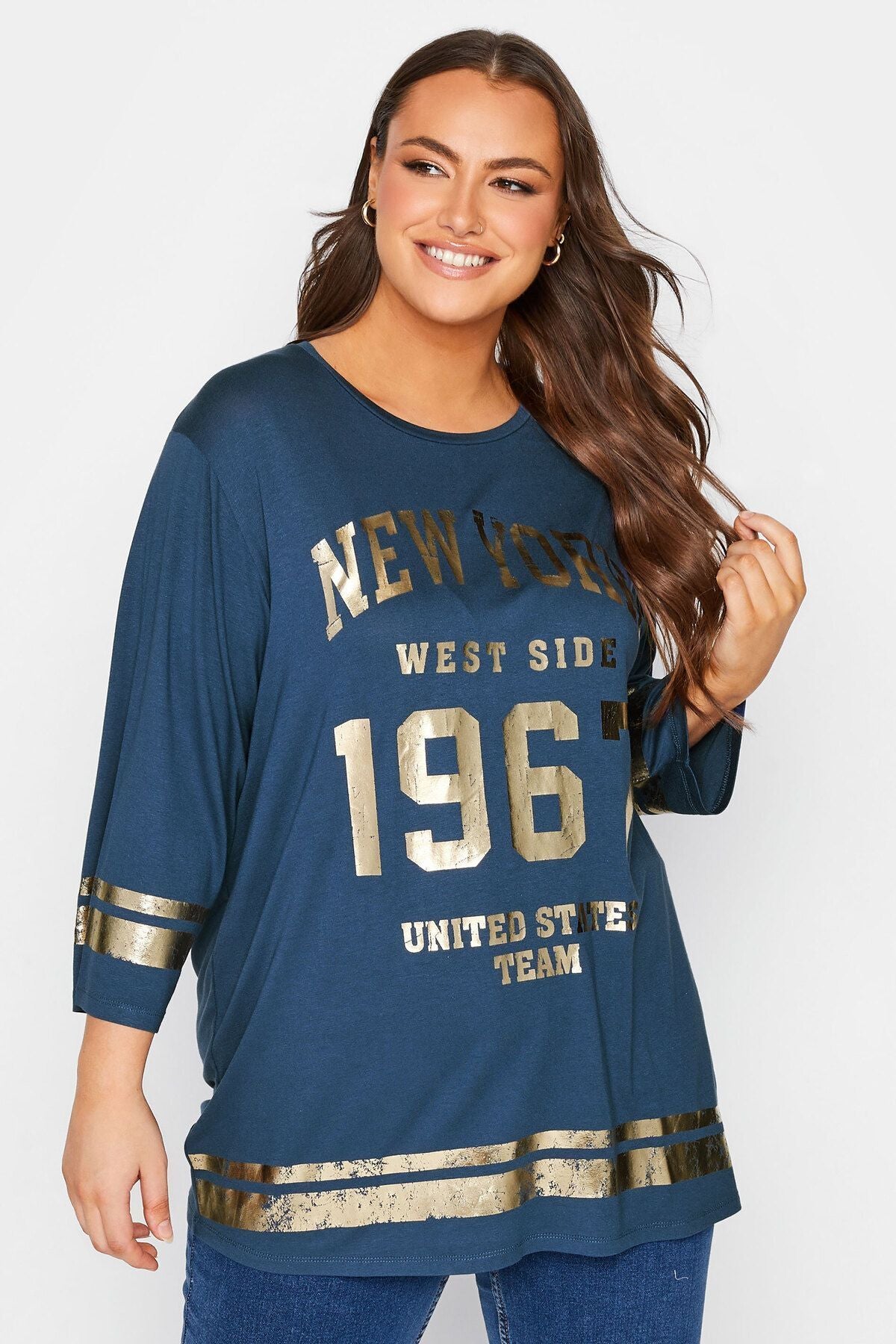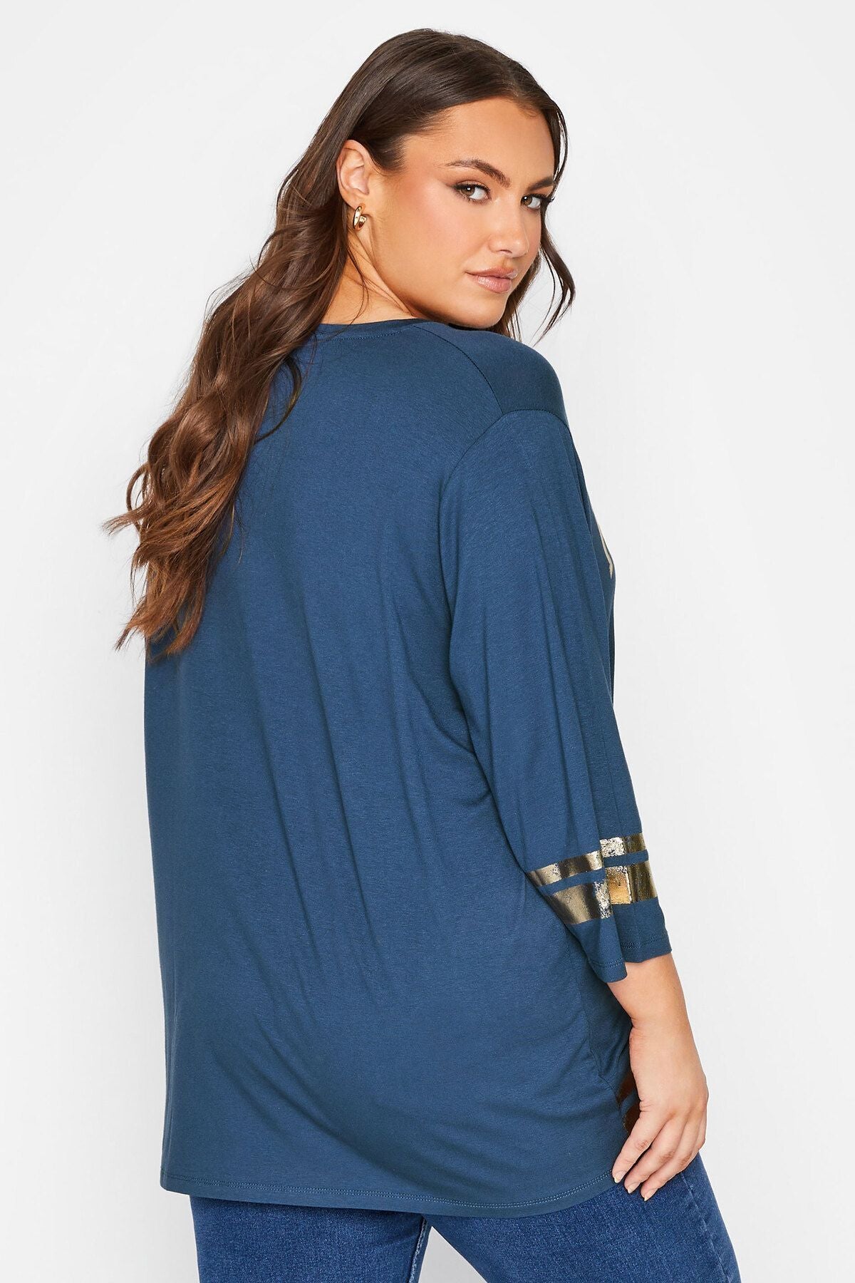 Büyük Beden Fakir Kol Metalik Yazı Baskılı Bisiklet Yaka Bluz 301399