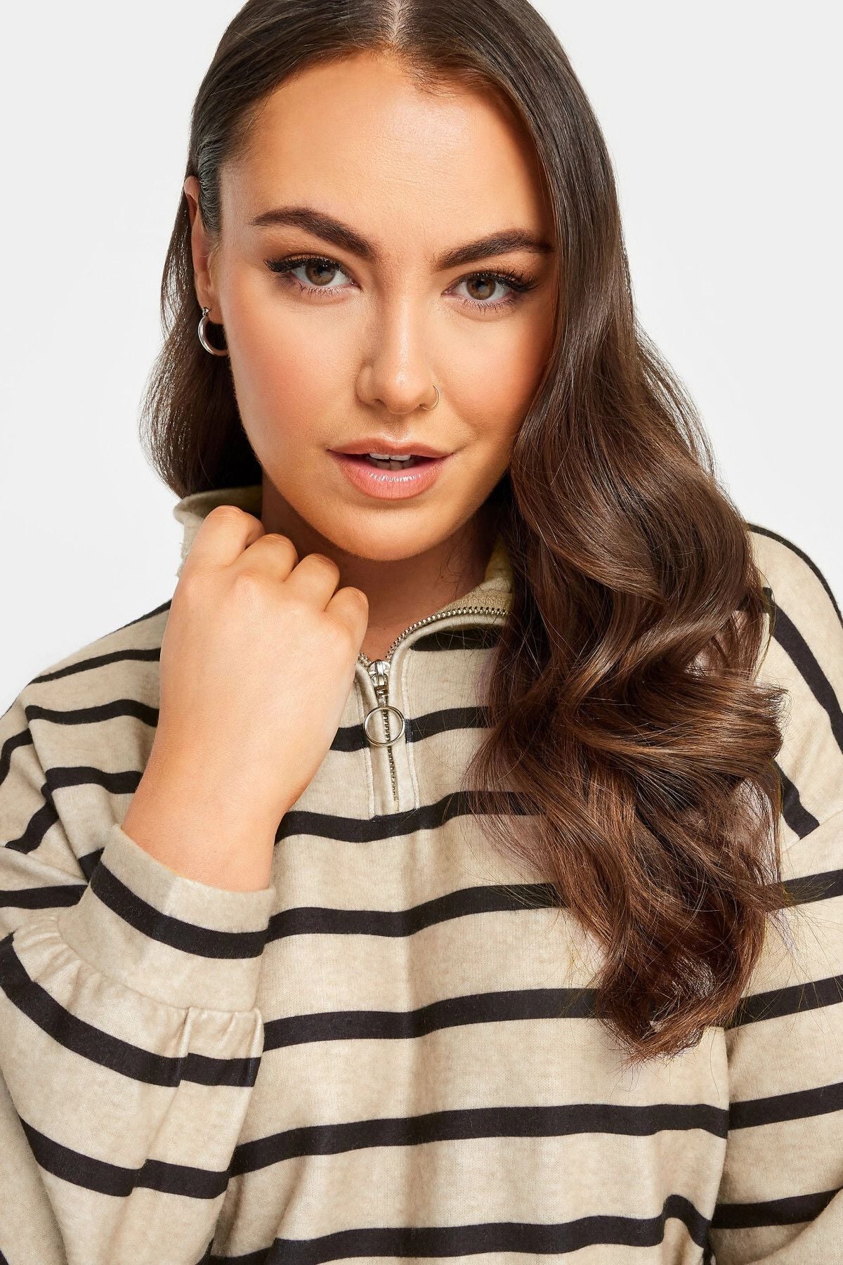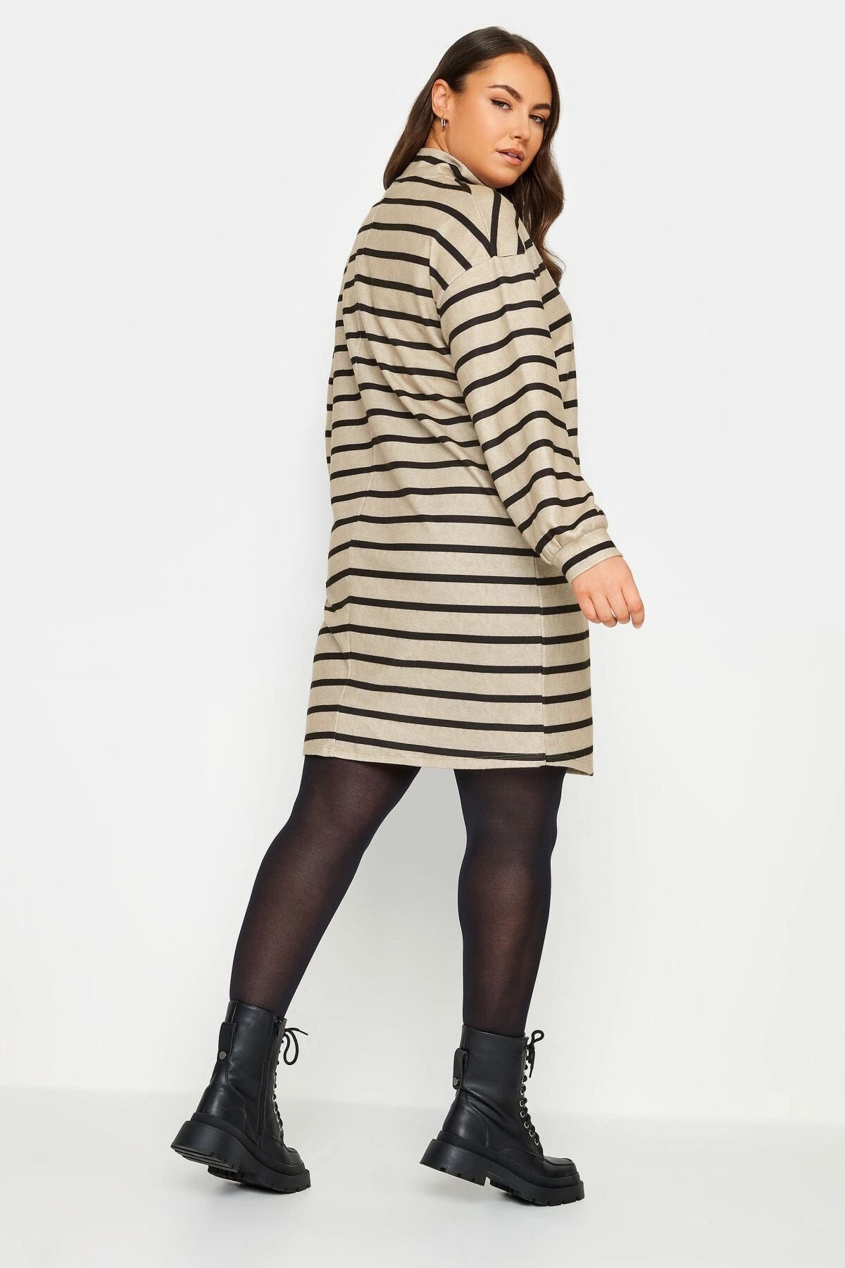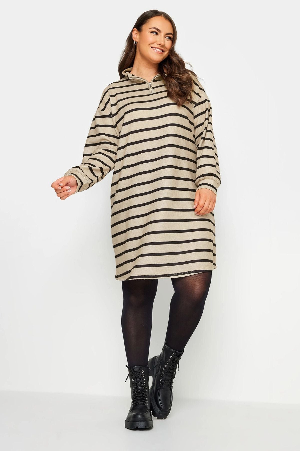 Büyük Beden Fermuarlı Polo Yaka Uzun Kollu Çizgili Elbise 302881