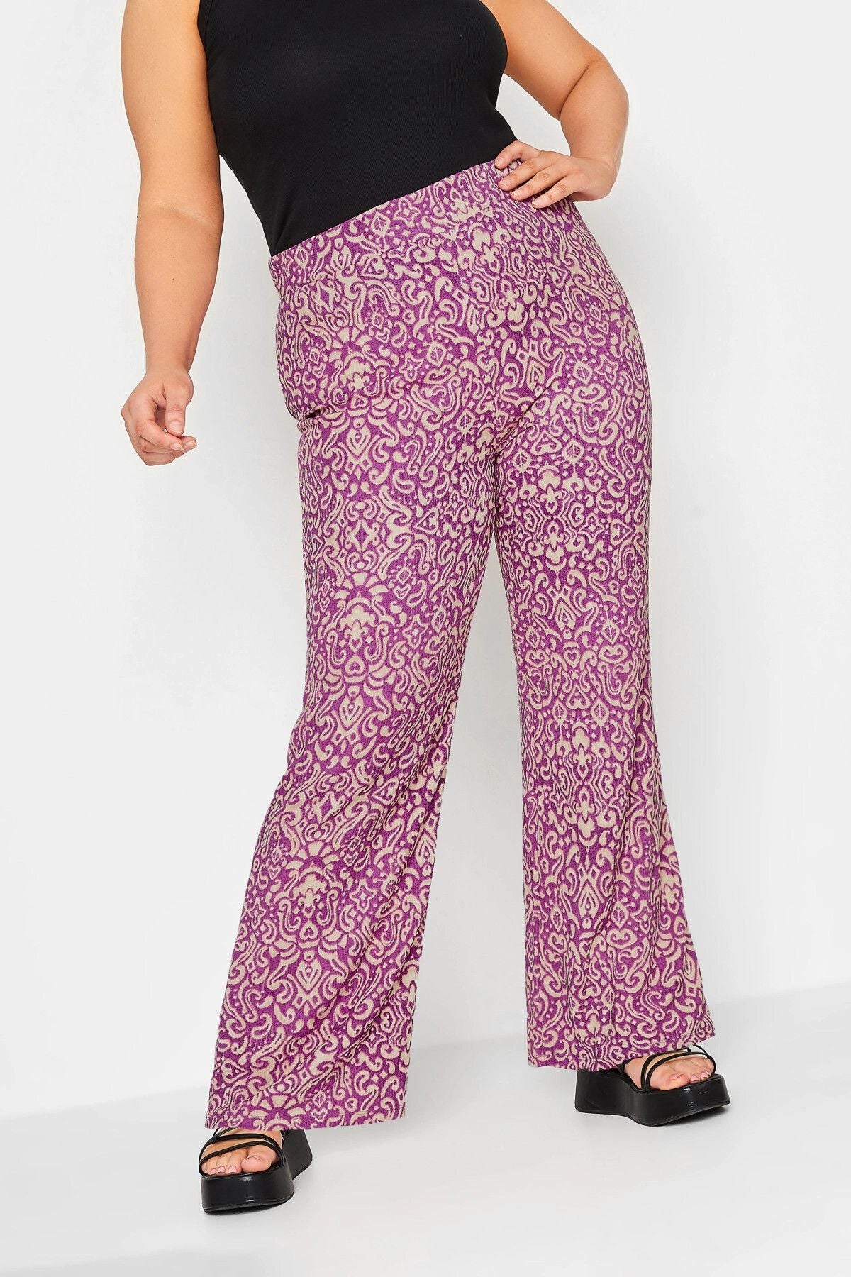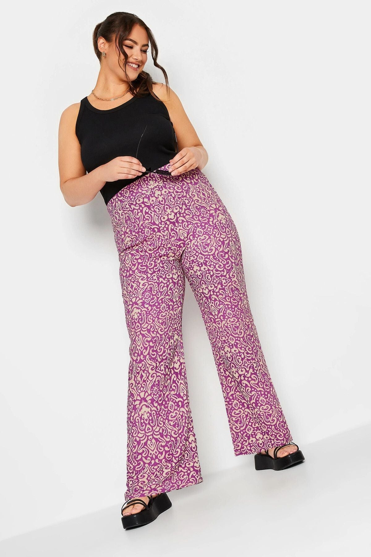 Büyük Beden Geniş Paça Desenli Beli Lastikli Likralı Pantolon 302401