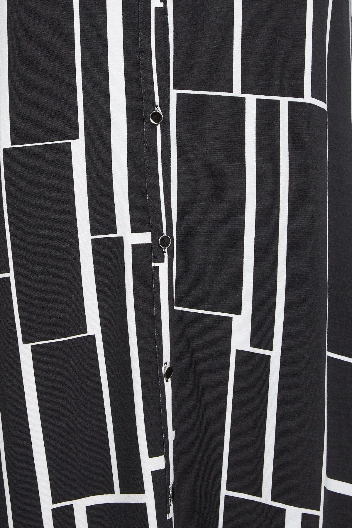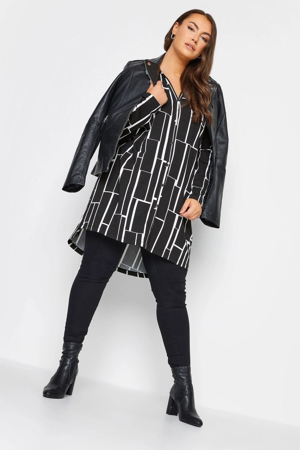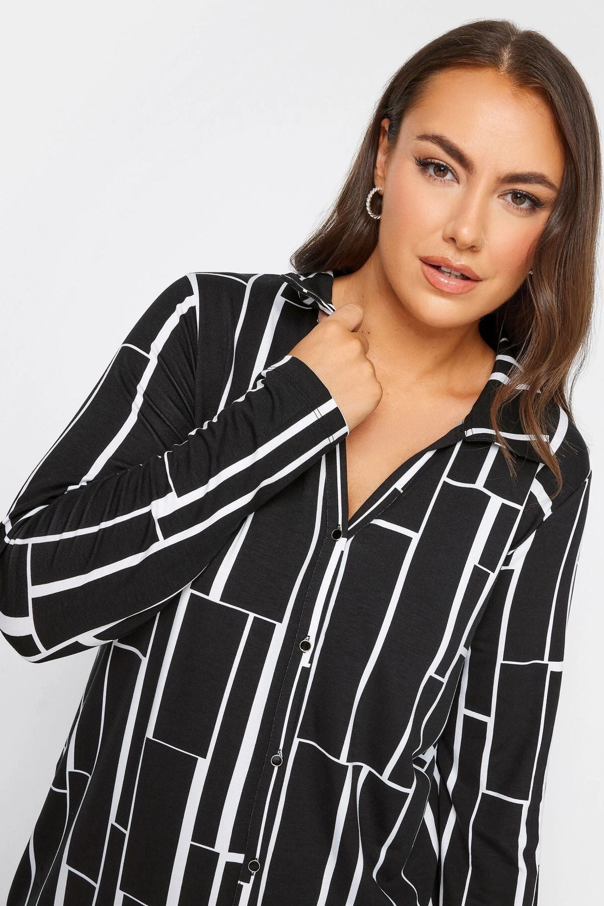 Büyük Beden Geometrik Desenli Uzun Kesim Uzun Kollu Gömlek 321234
