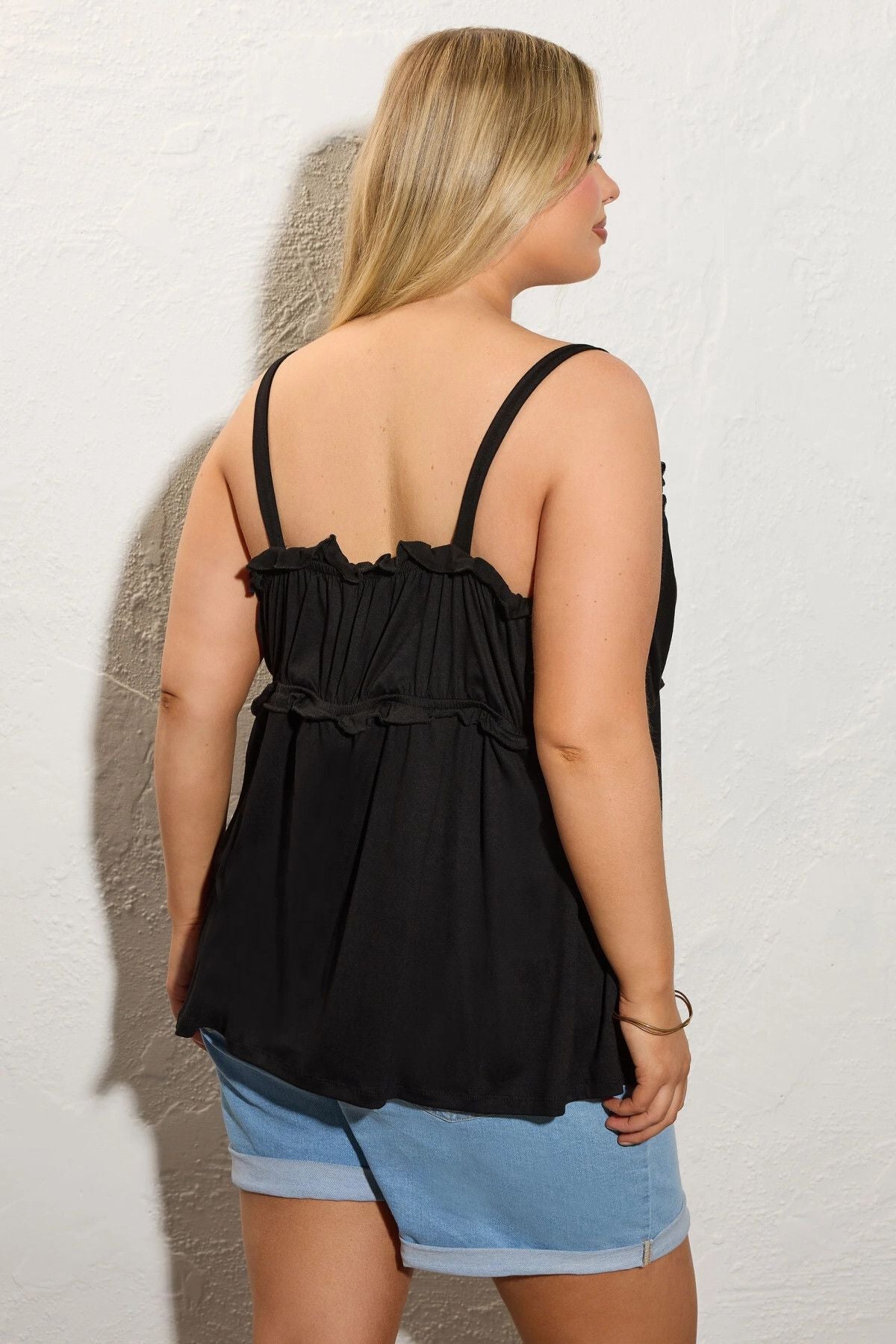 Büyük Beden İnce Askılı Geniş Yakalı Önü Büzgülü Bluz 322693