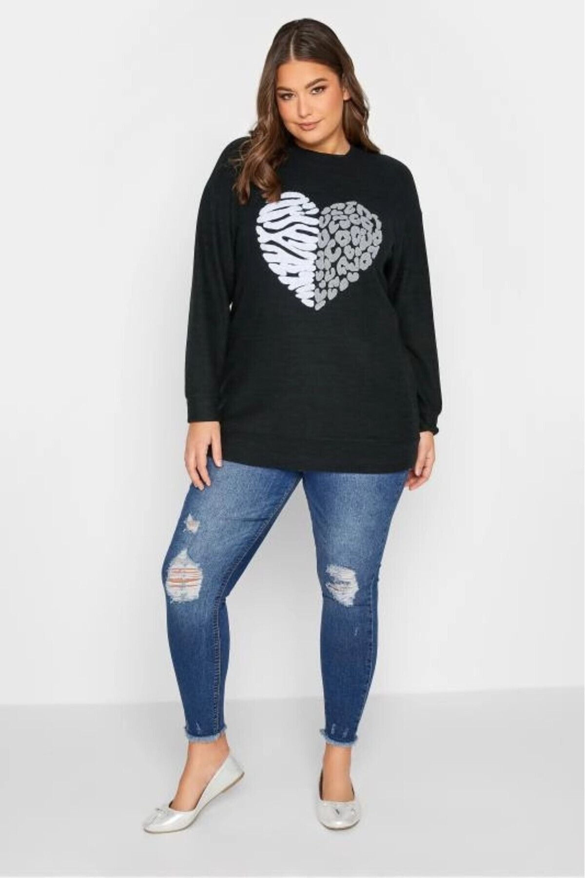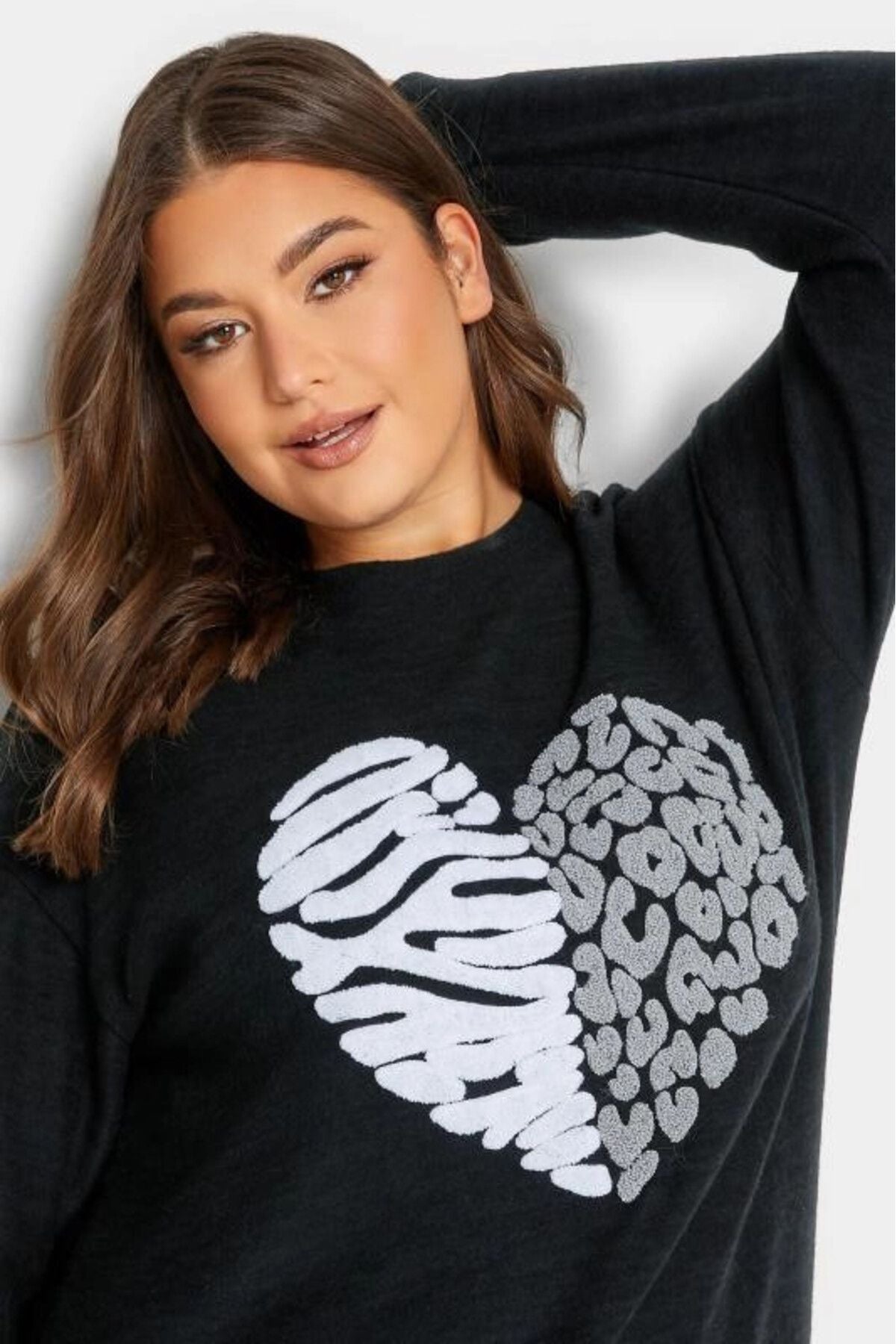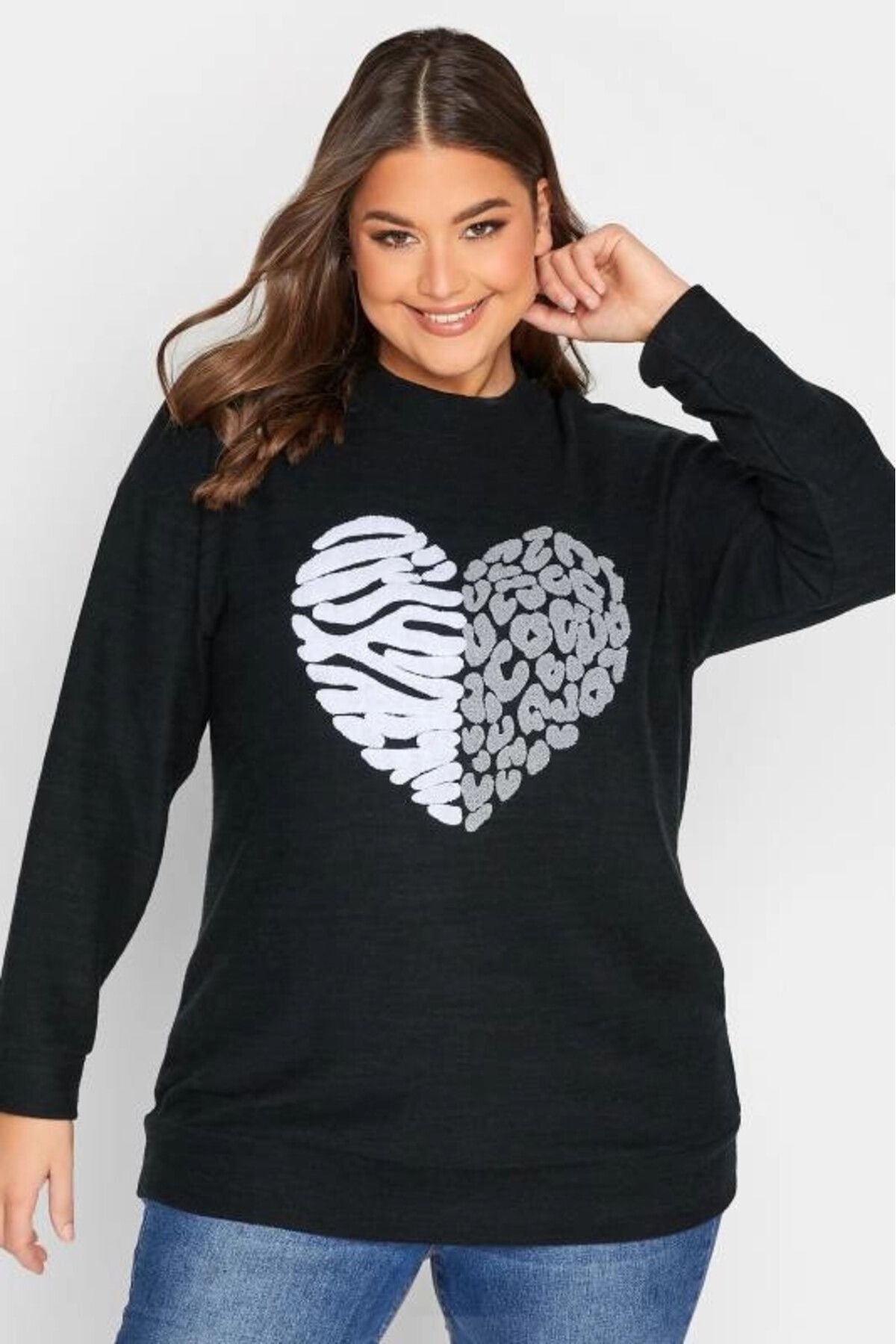 Büyük Beden Kalp Desenli Uzun Kollu Yuvarlak Yaka Polar Kazak 301787