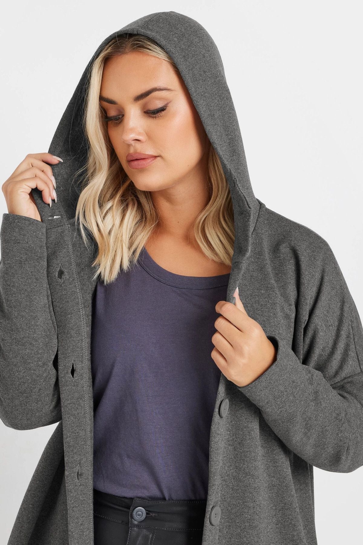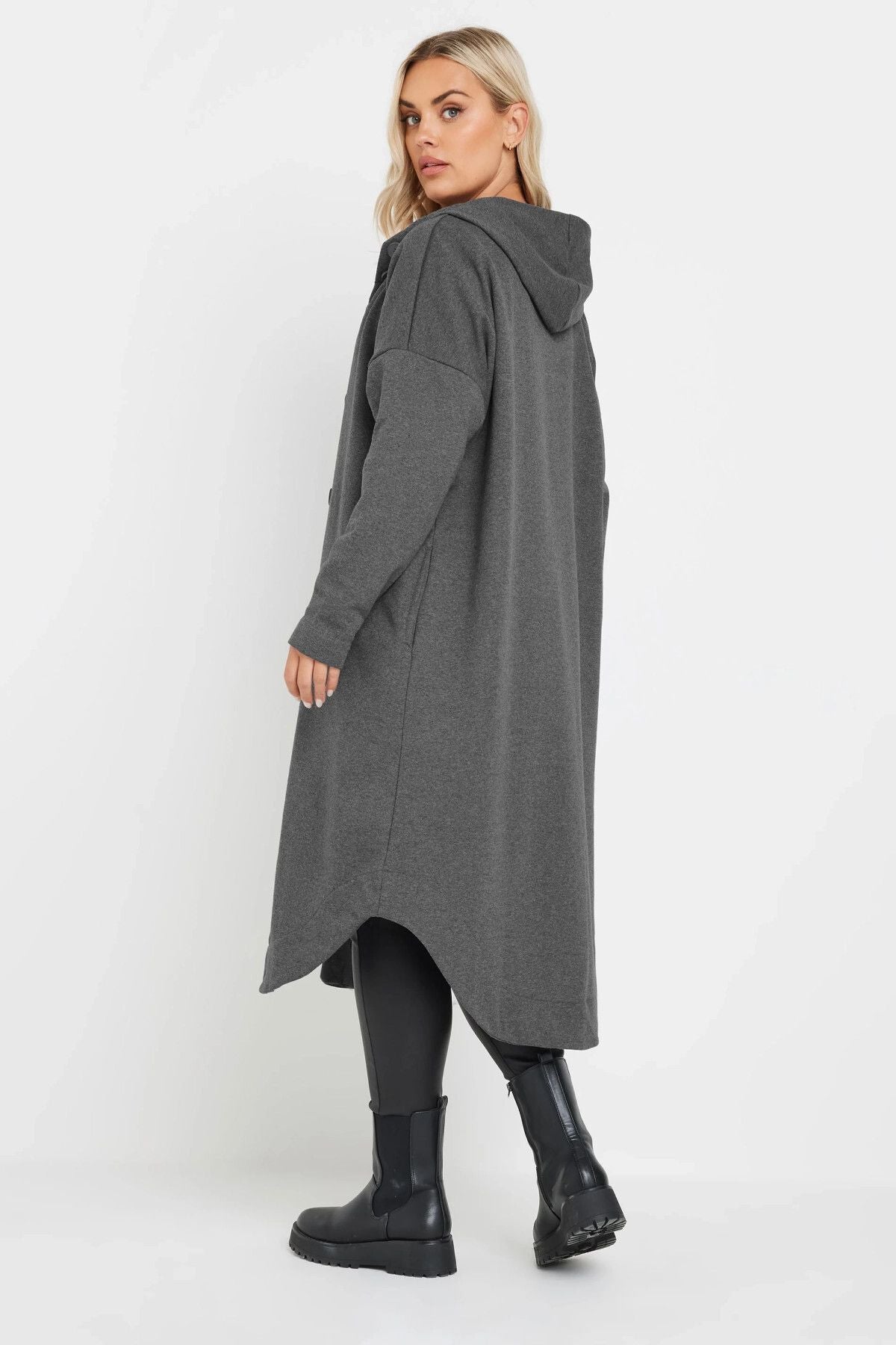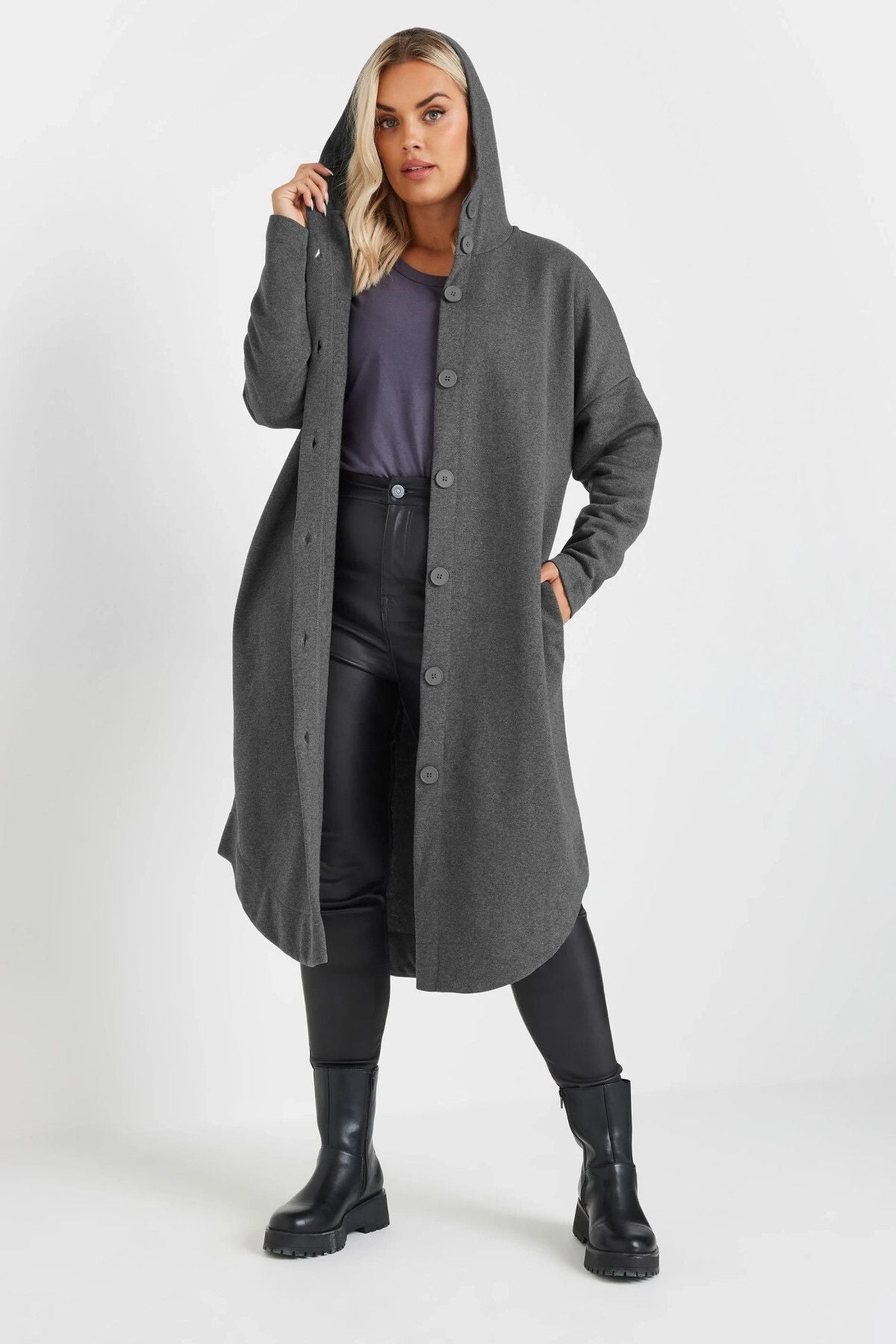 Büyük Beden Kapüşonlu Cepli Önü Düğme Kapamalı Uzun Ceket 303762