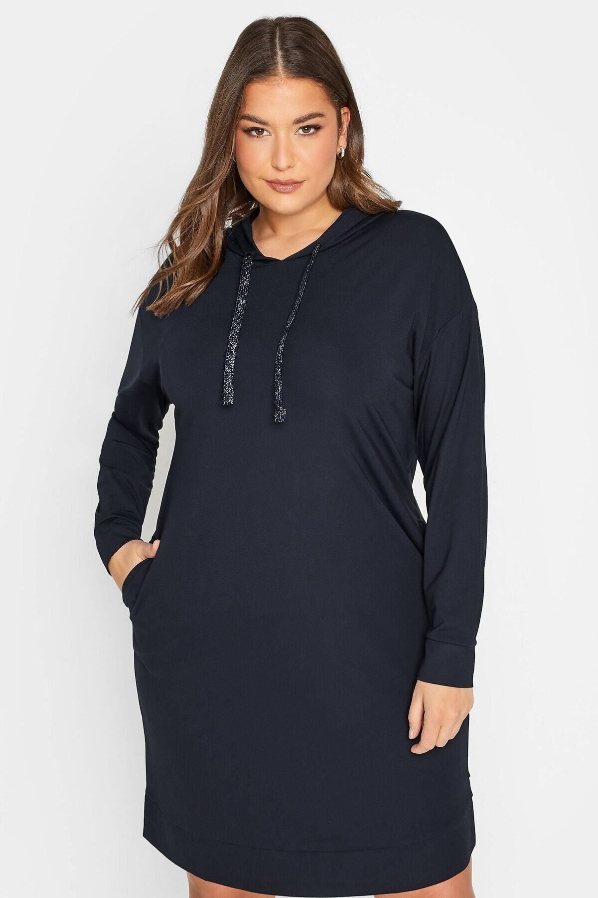 Büyük Beden Kapüşonlu Cepli Uzun Kollu Sweat Elbise 301732