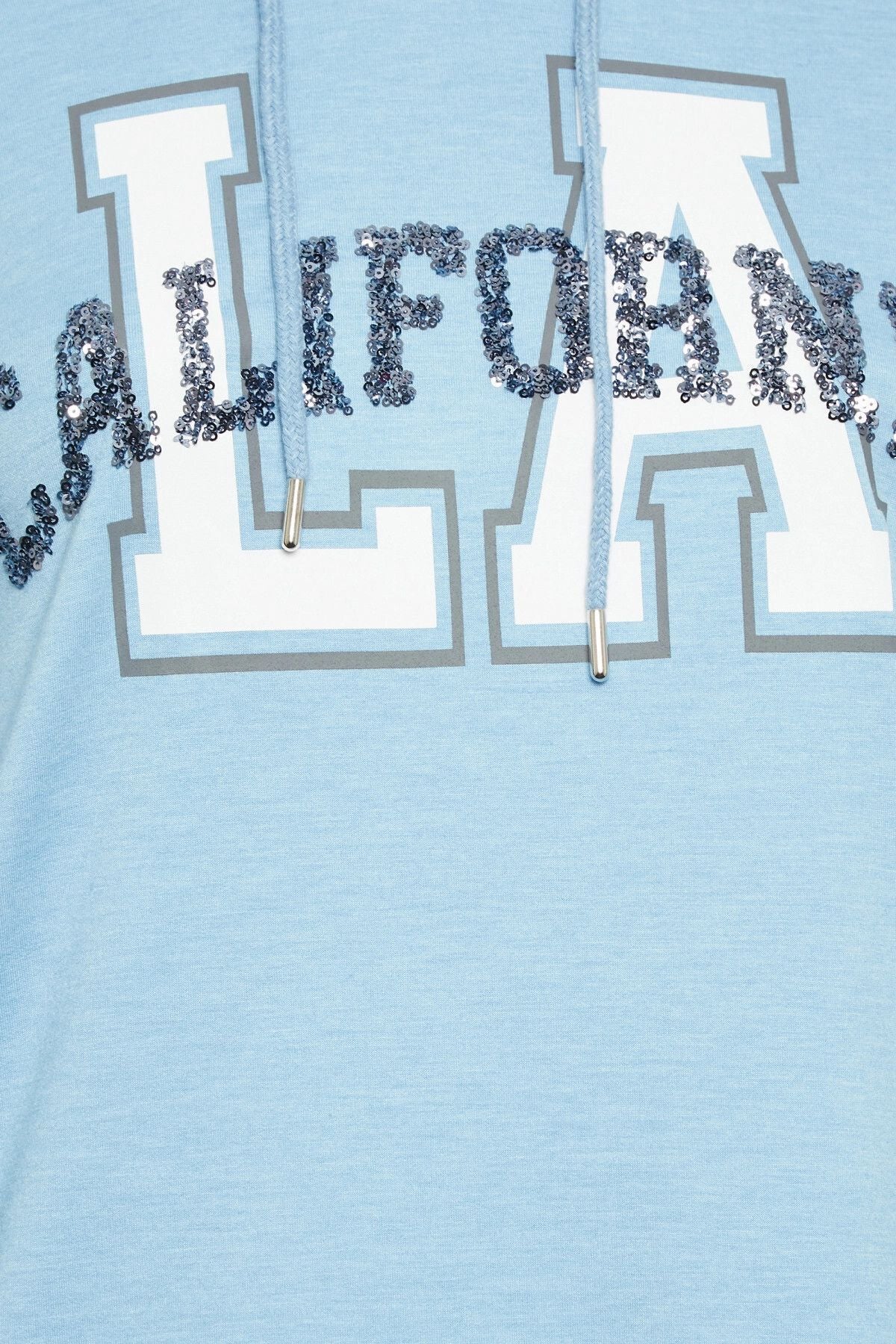 Büyük Beden Kapüşonlu Payet Ve Yazı Detaylı Uzun Kollu Cepli Sweatshirt 302566