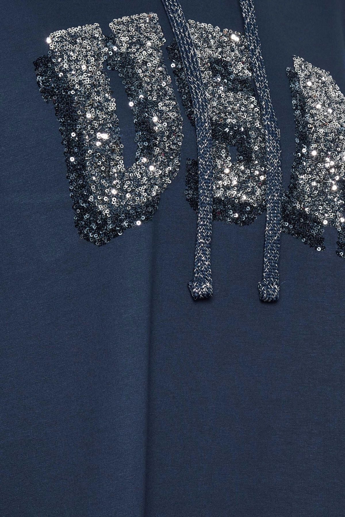Büyük Beden Kapüşonlu Payetli Asimetrik Uzun Kesim Sweatshirt 301768