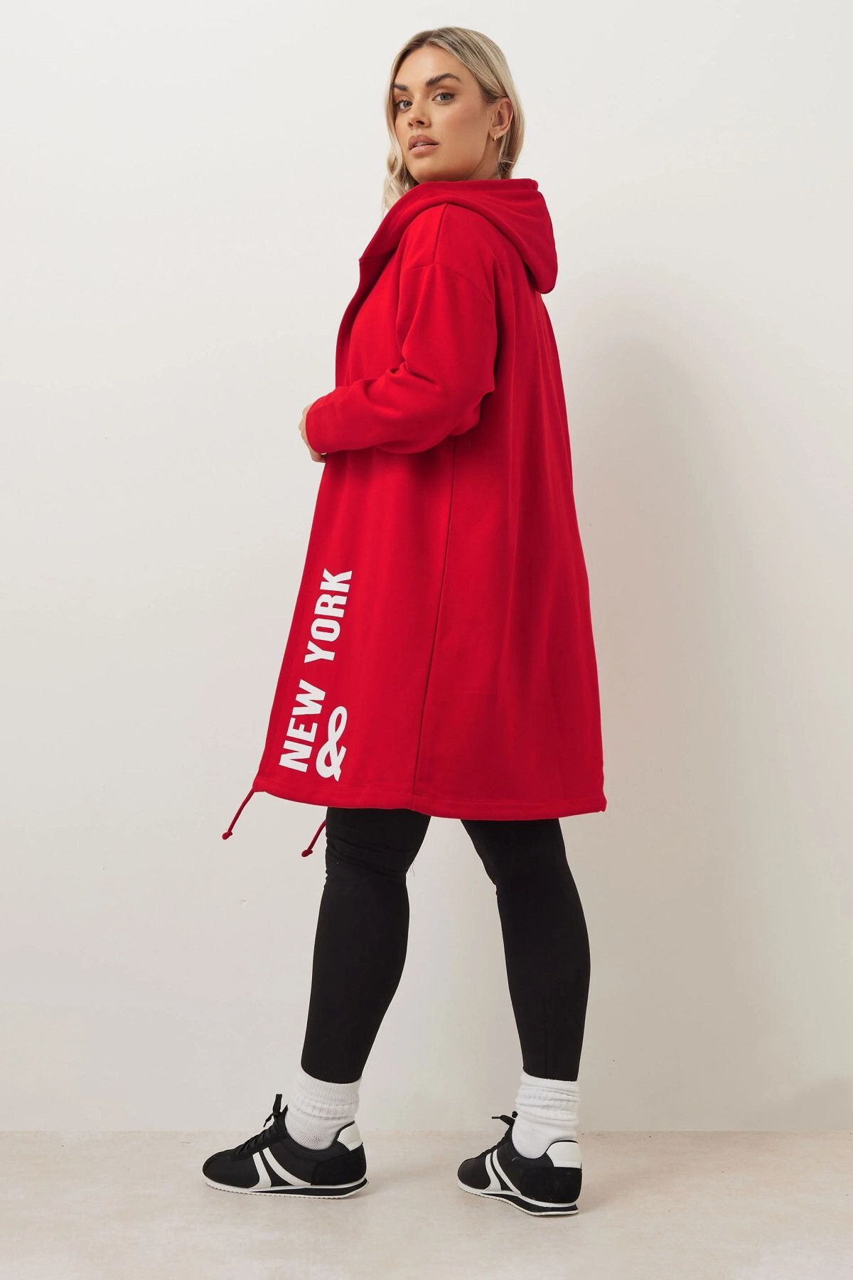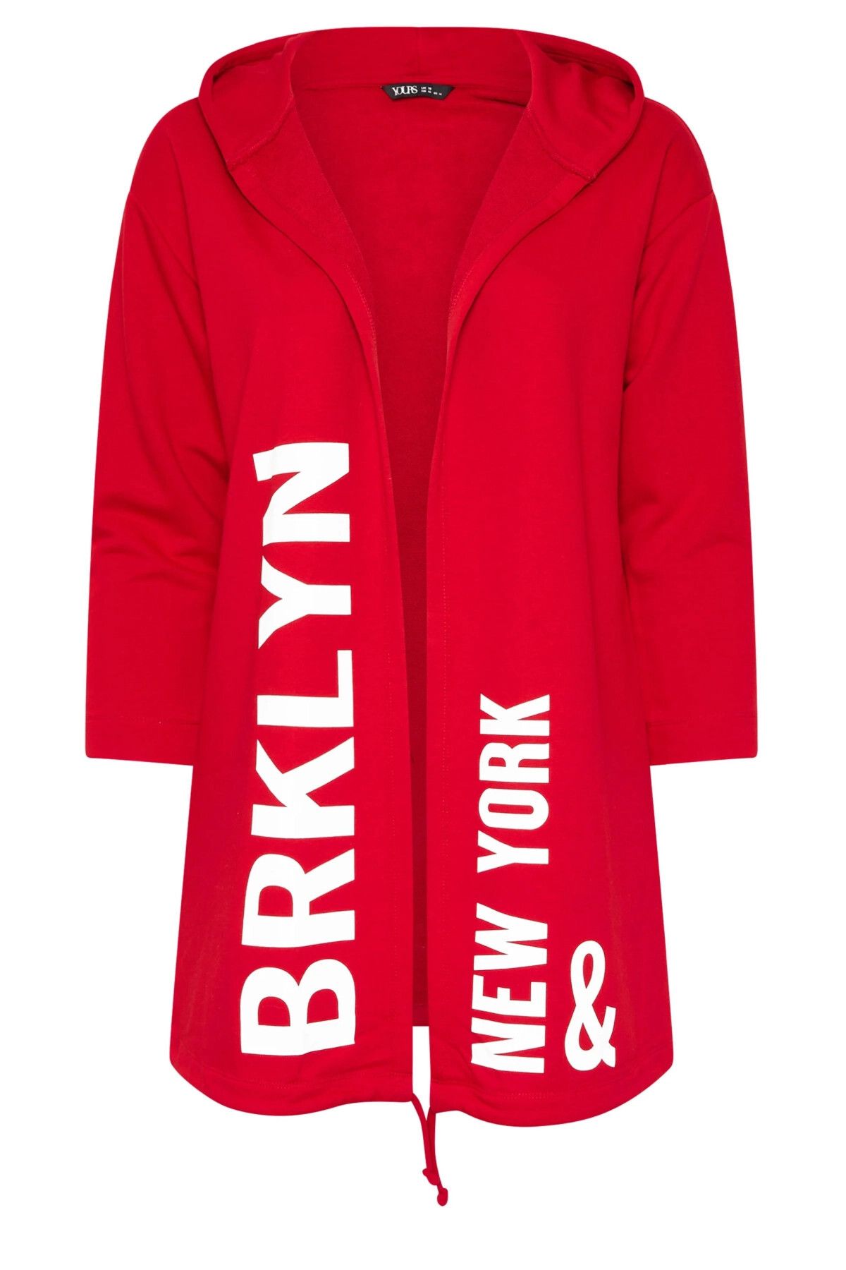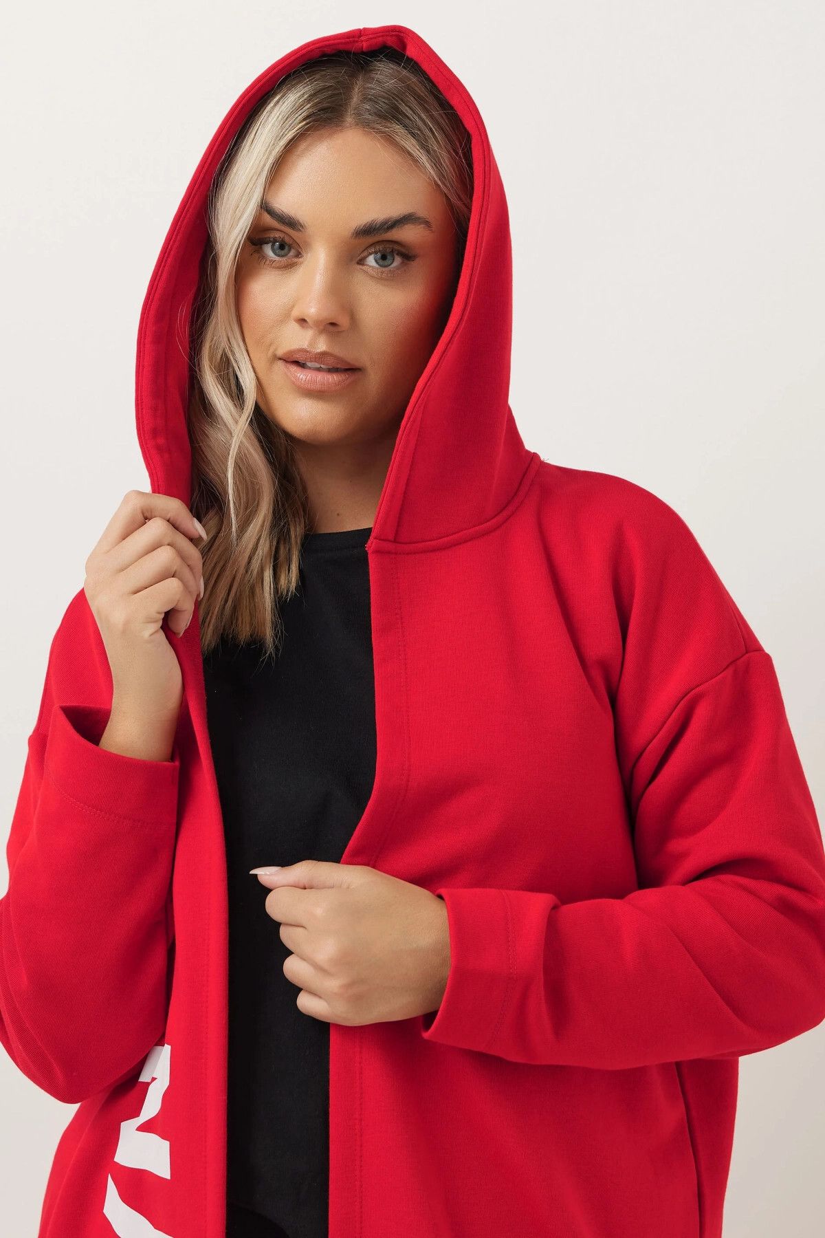 Büyük Beden Kapüşonlu Uzun Kollu Yazı Baskılı Cepsiz Hırka 303982