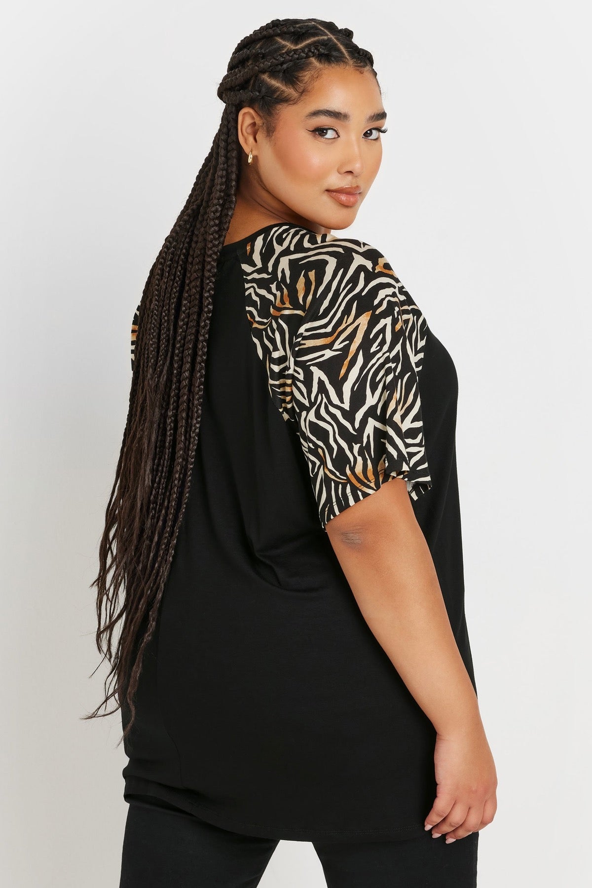 Büyük Beden Kısa Kollu Bisiklet Yaka Leopar Desenli T-shirt 303736