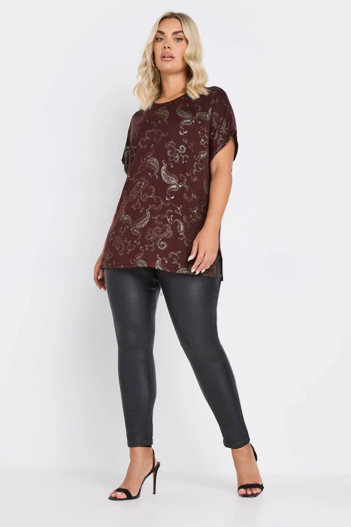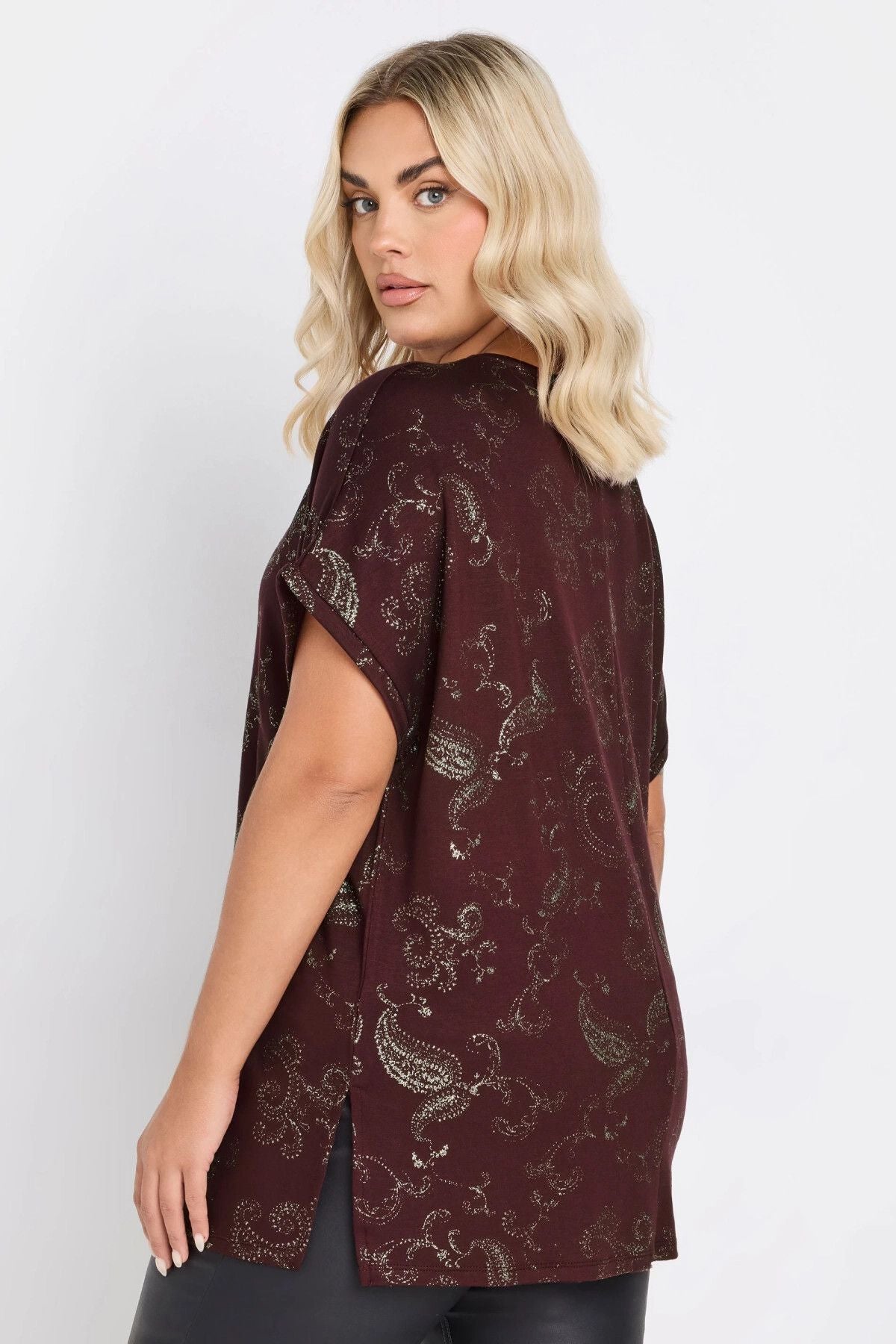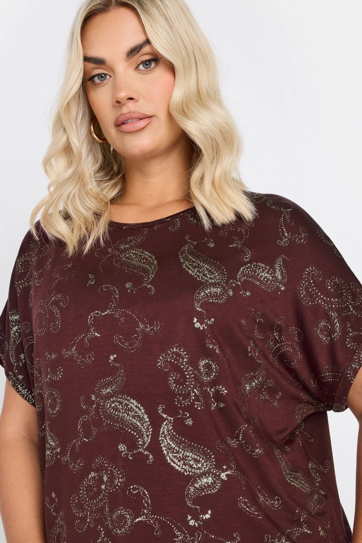 Büyük Beden Kısa Kollu Bisiklet Yaka Metalik Desenli Bluz 303666