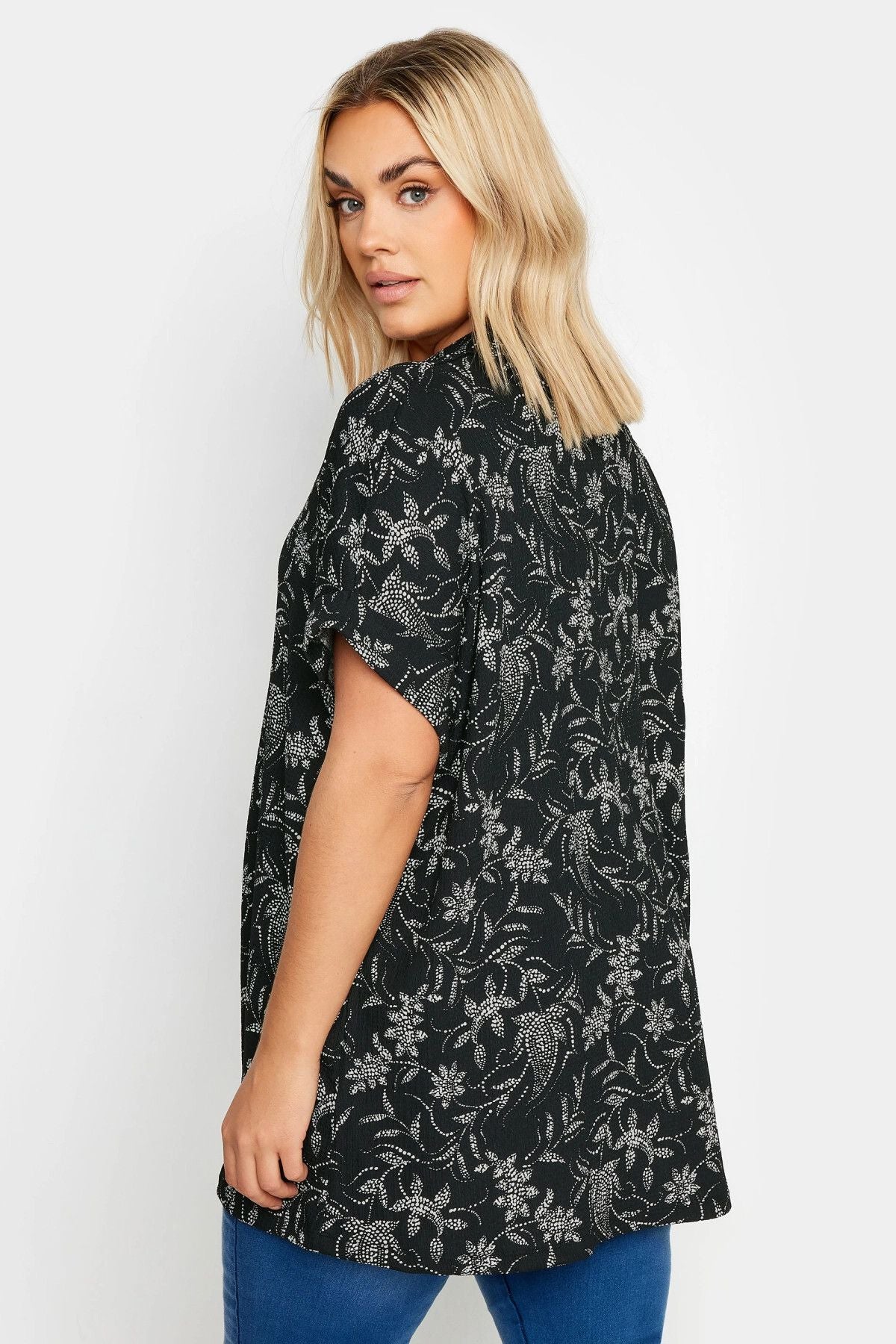 Büyük Beden Kısa Kollu Desenli Düğmeli Gömlek 303356