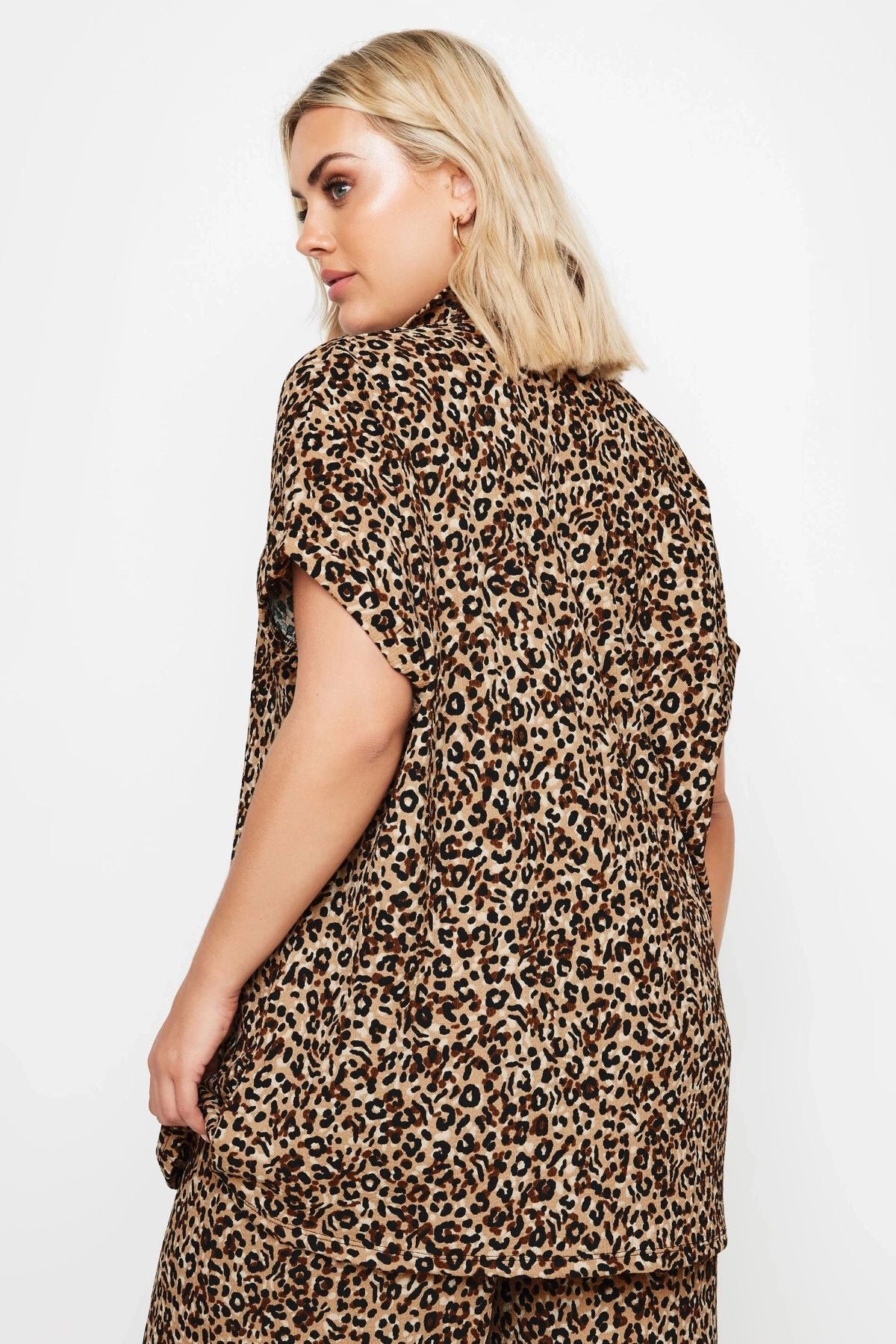 Büyük Beden Kısa Kollu Desenli Düğmeli Gömlek 321826