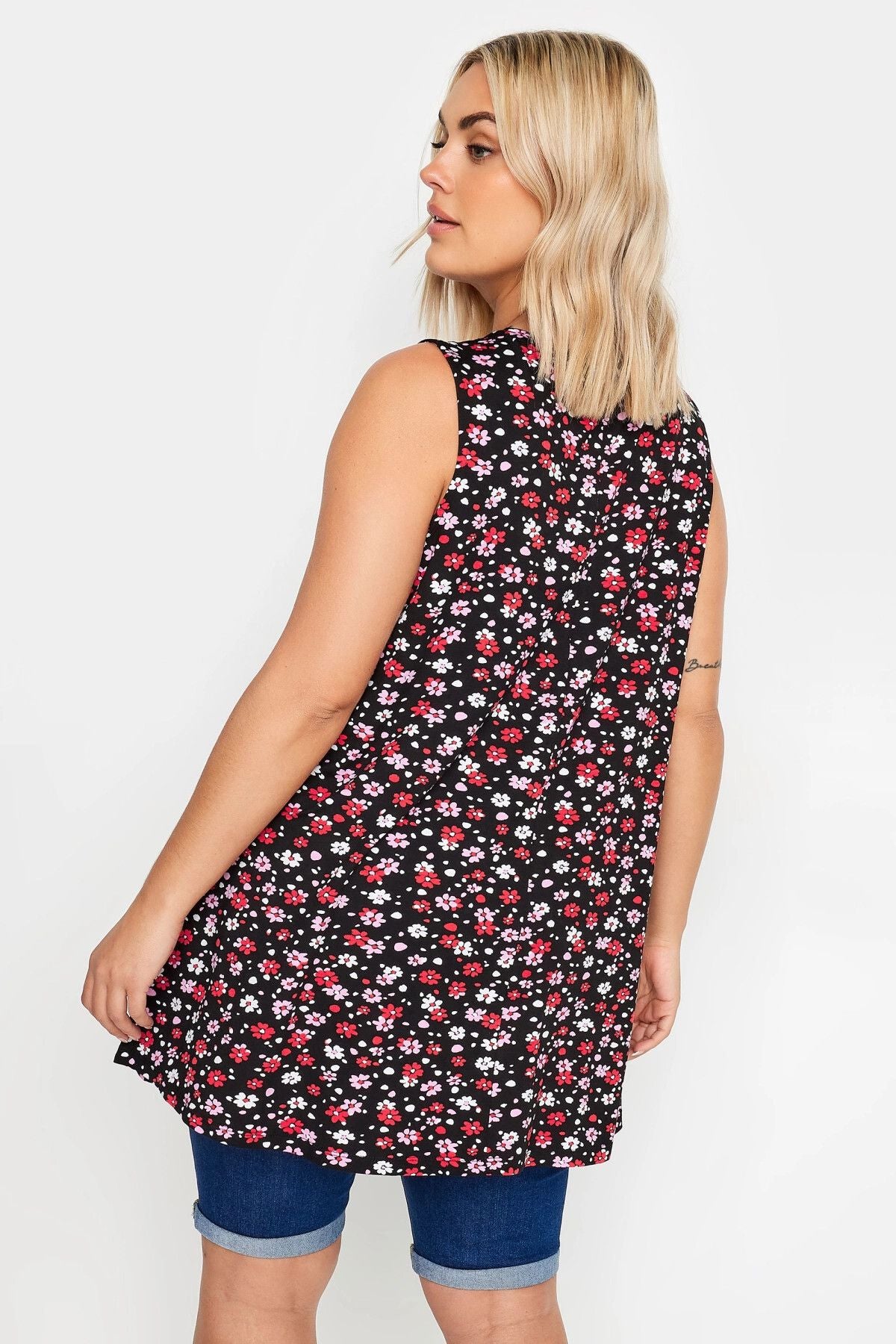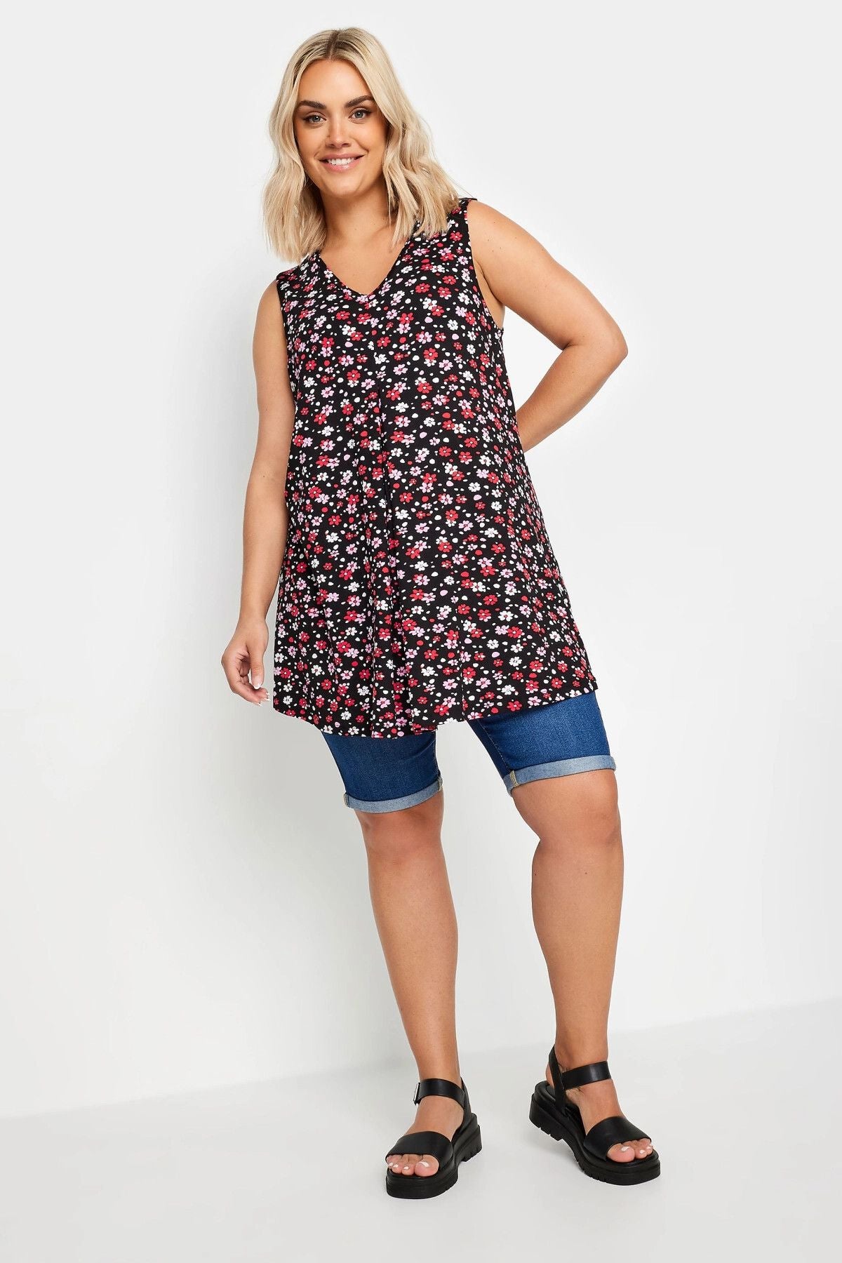 Büyük Beden Kolsuz V Yaka Desenli Likralı Bluz 303180