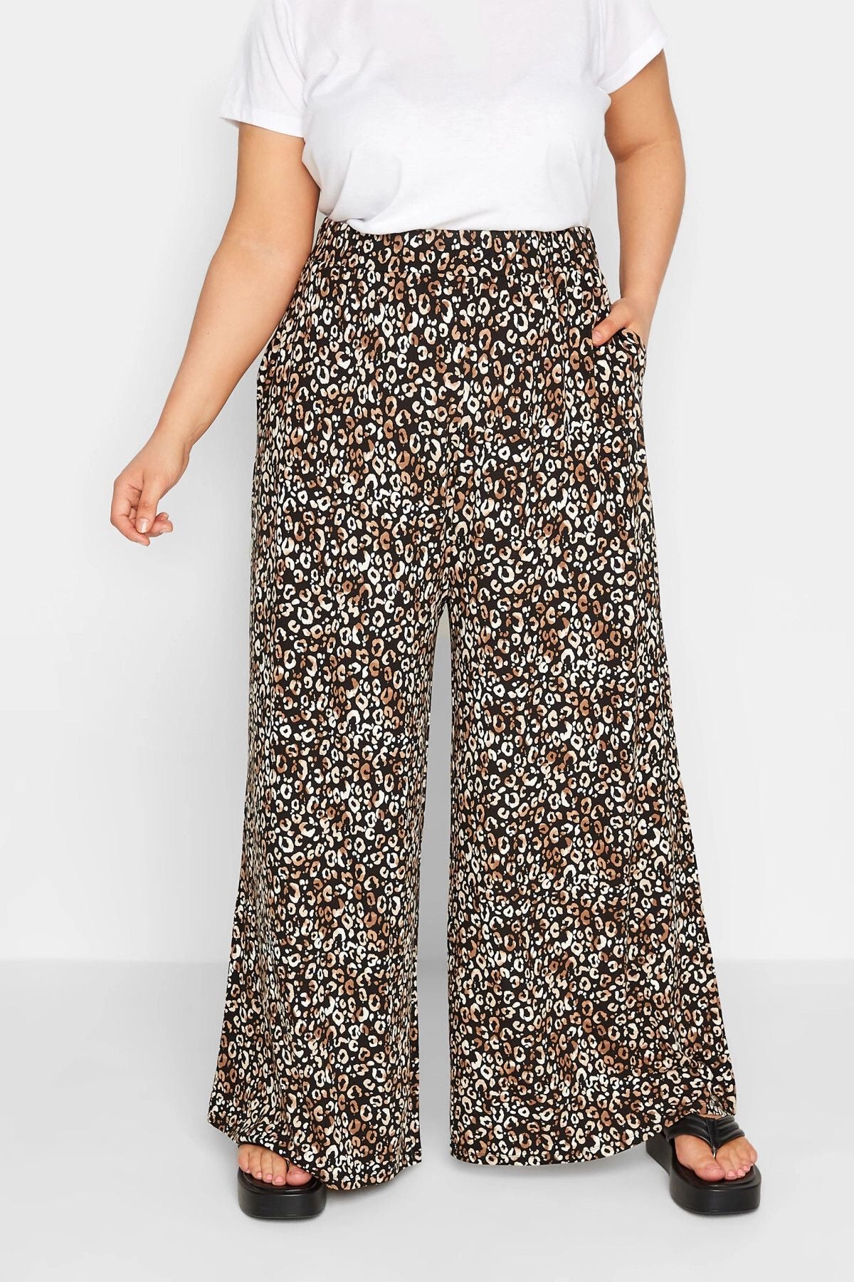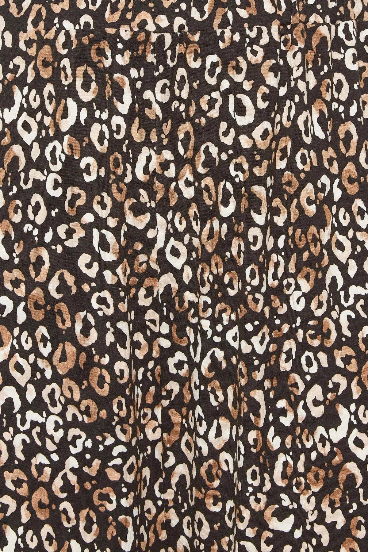 Büyük Beden Leopar Desenli İspanyol Paça Cepli Likralı Pantolon 143298