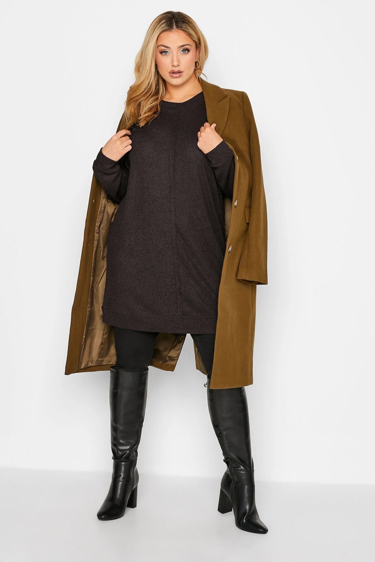 Büyük Beden Nervürlü Uzun Kesim Uzun Kollu Triko Kazak 301300