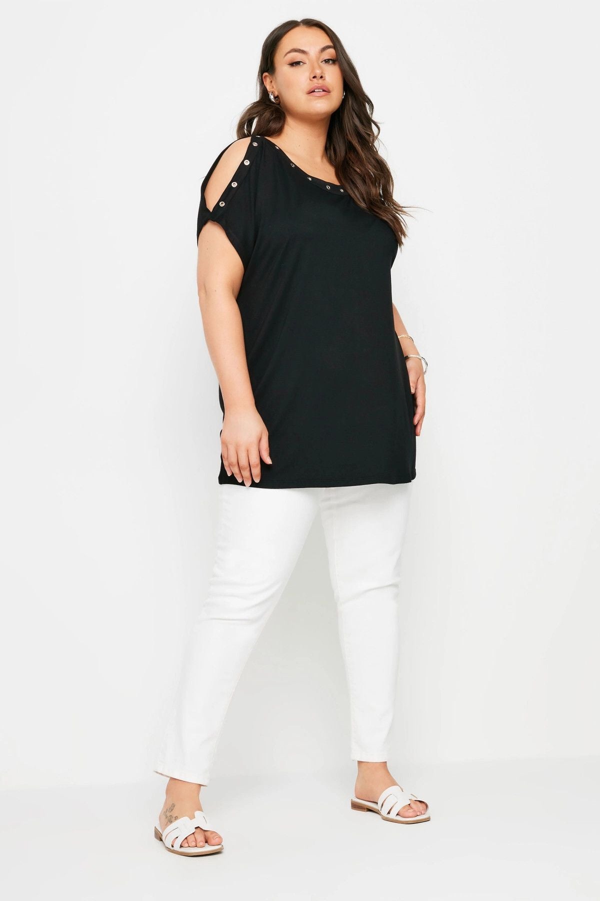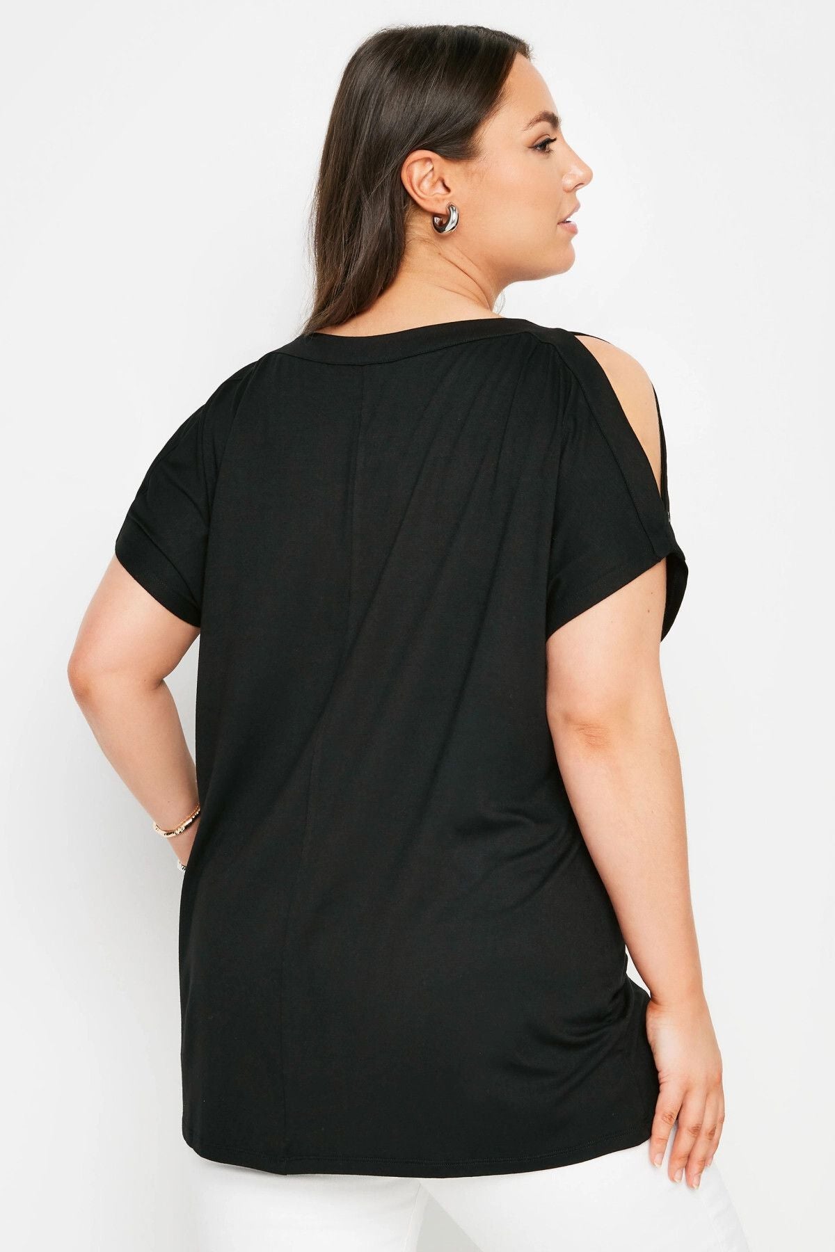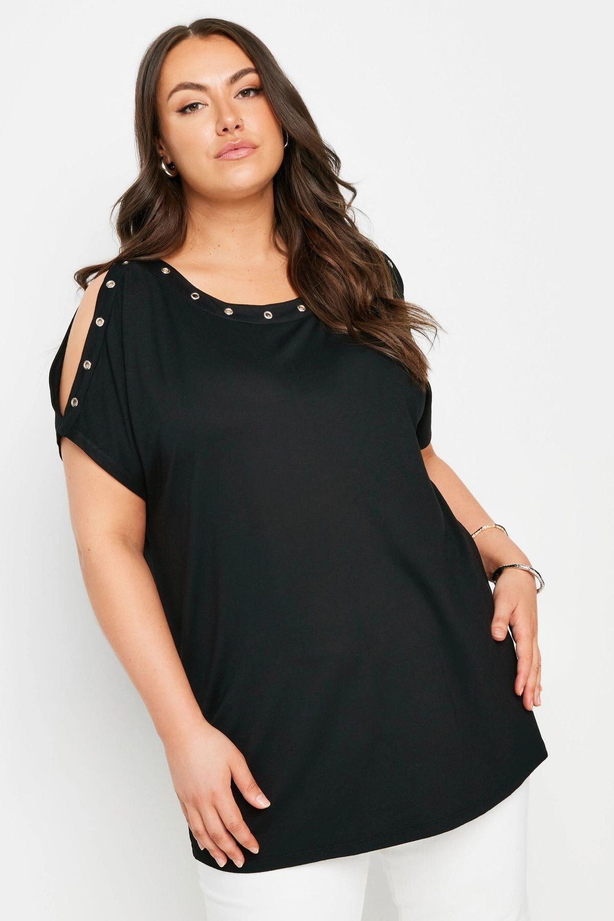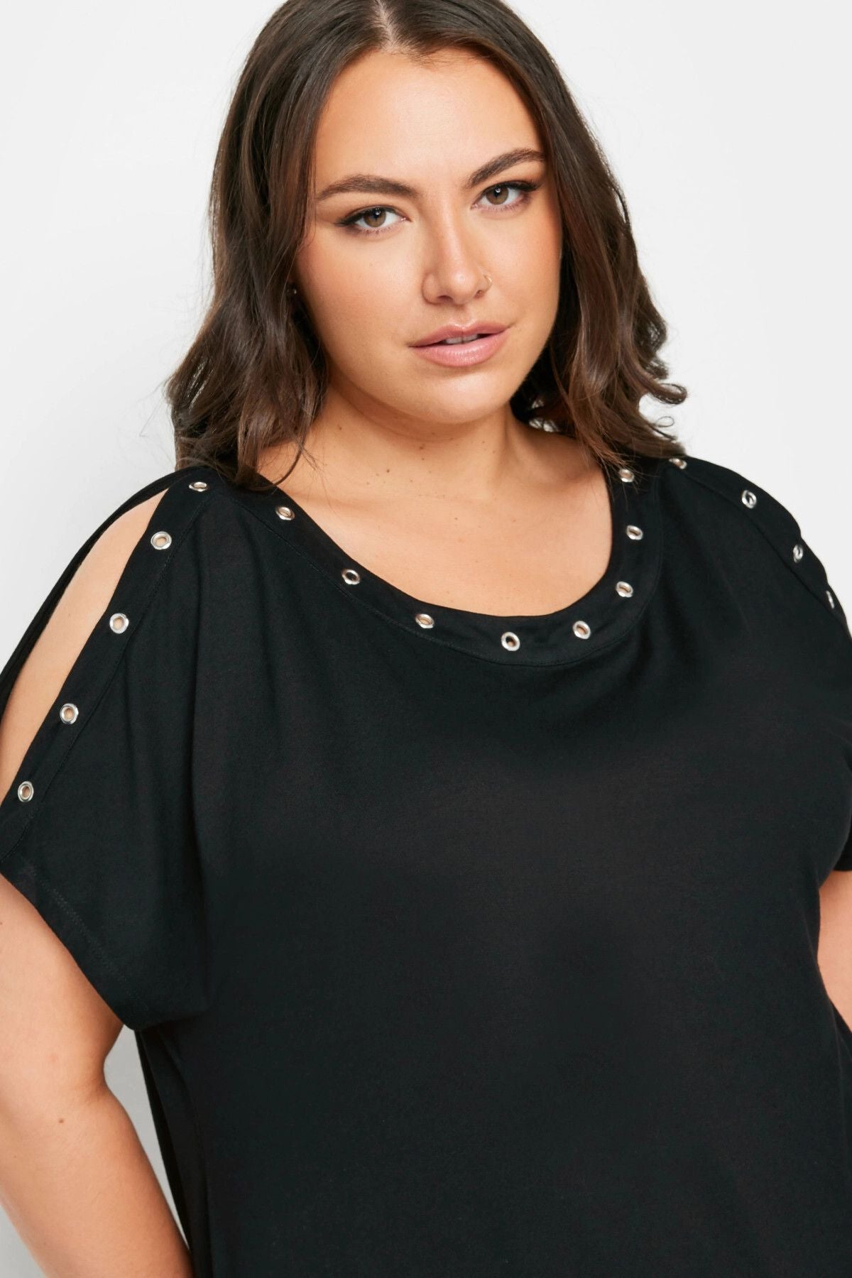 Büyük Beden Omuz Dekolteli Kuşgözü Detaylı Kısa Kollu Bluz 321771