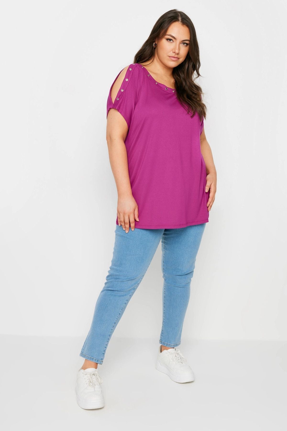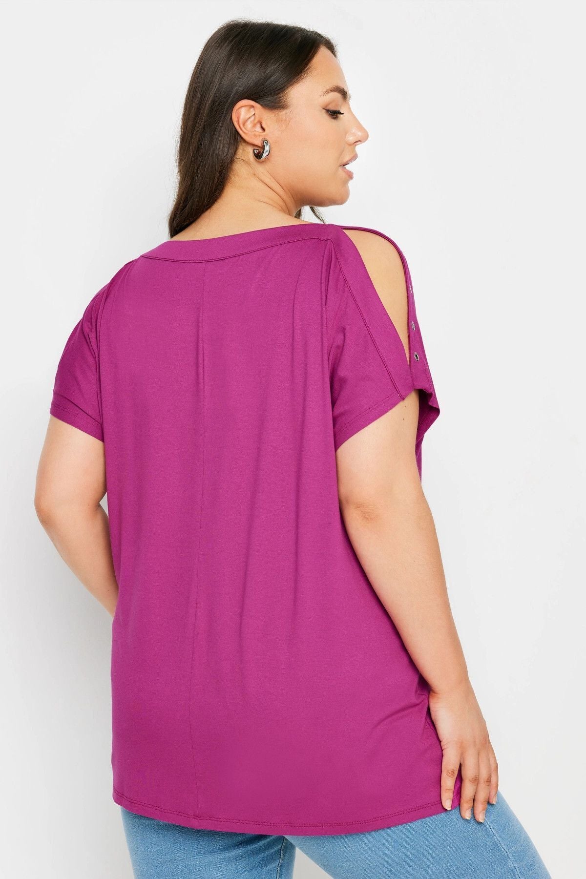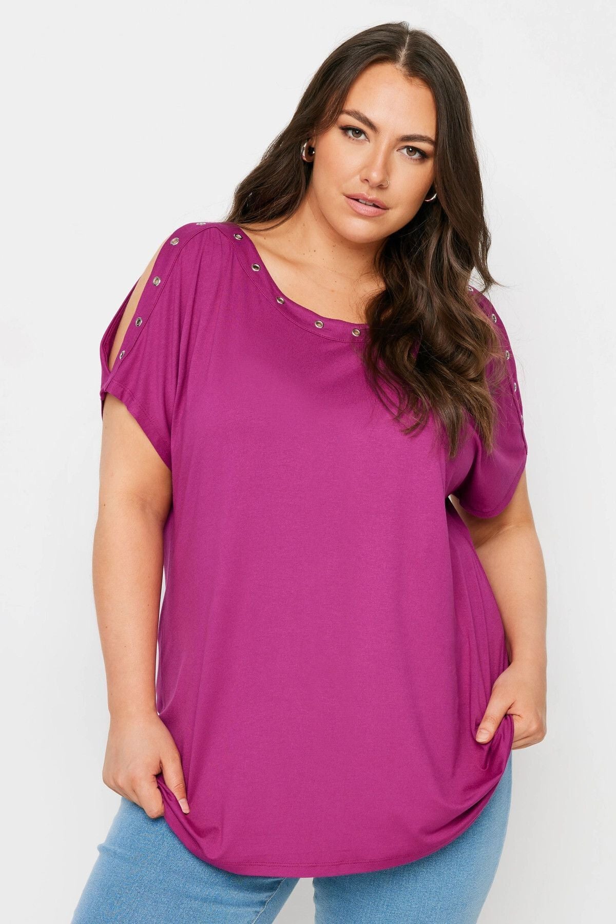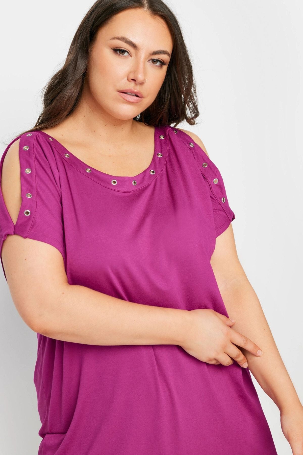 Büyük Beden Omuz Dekolteli Kuşgözü Detaylı Kısa Kollu Bluz 321772