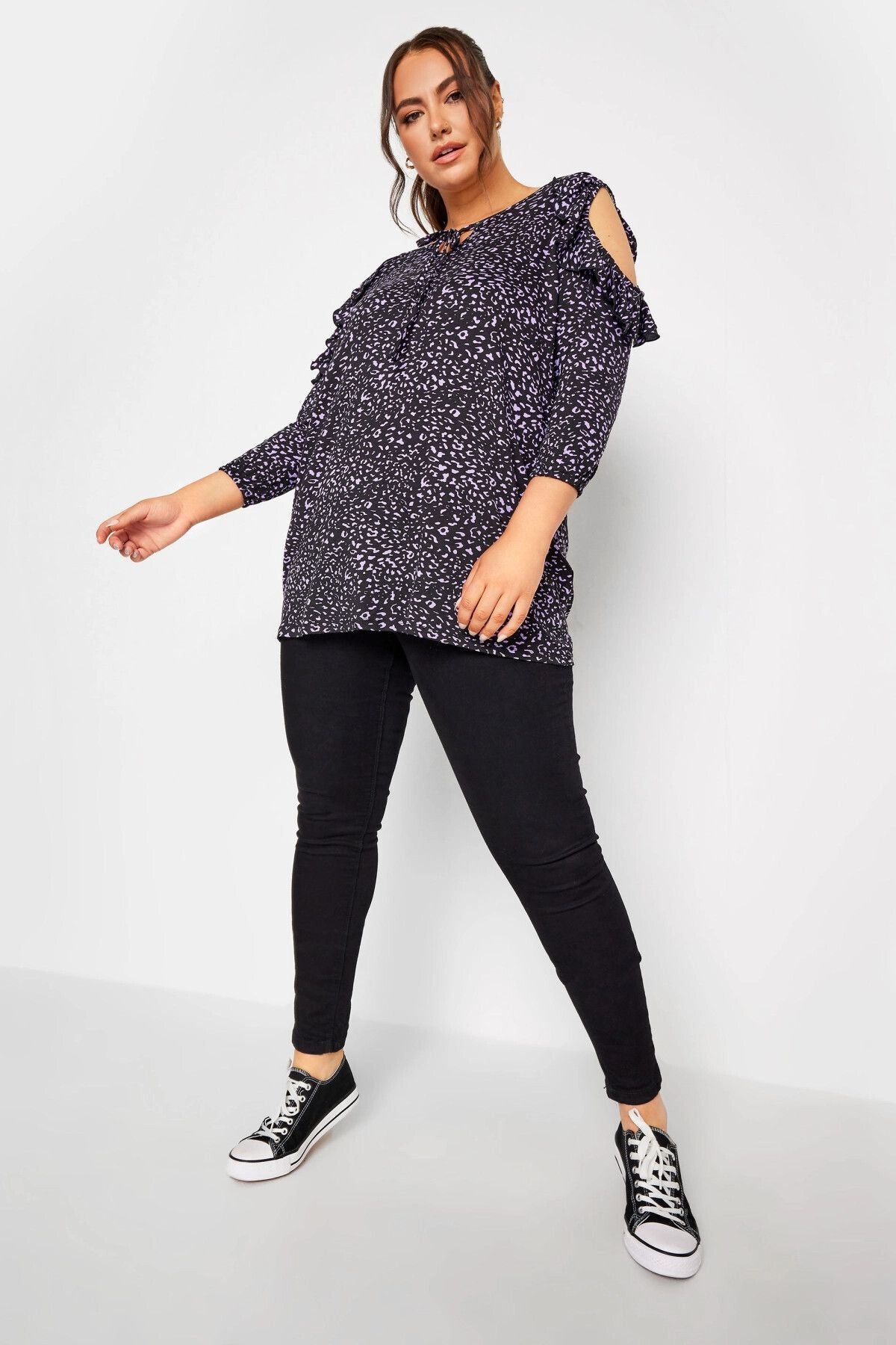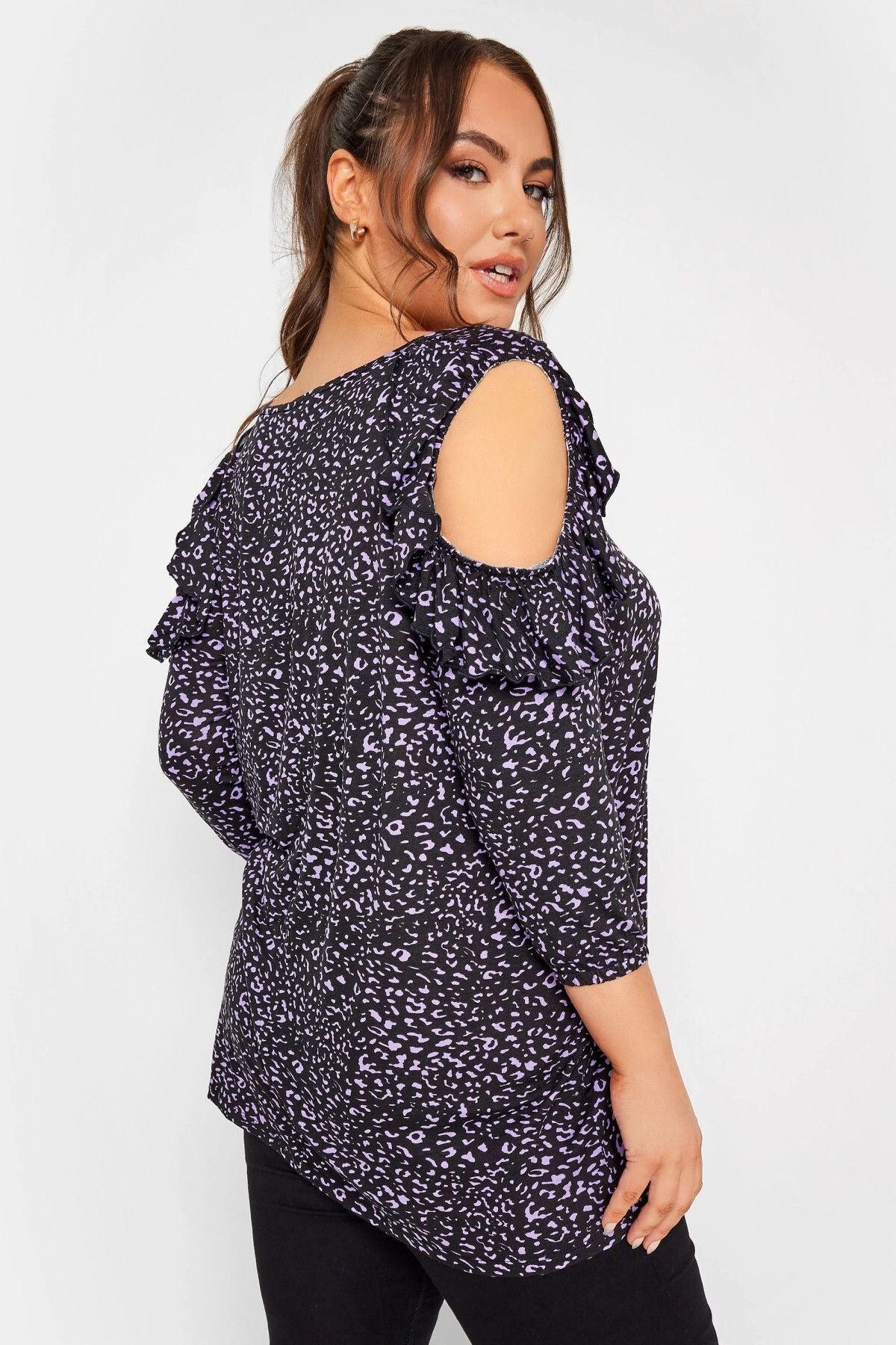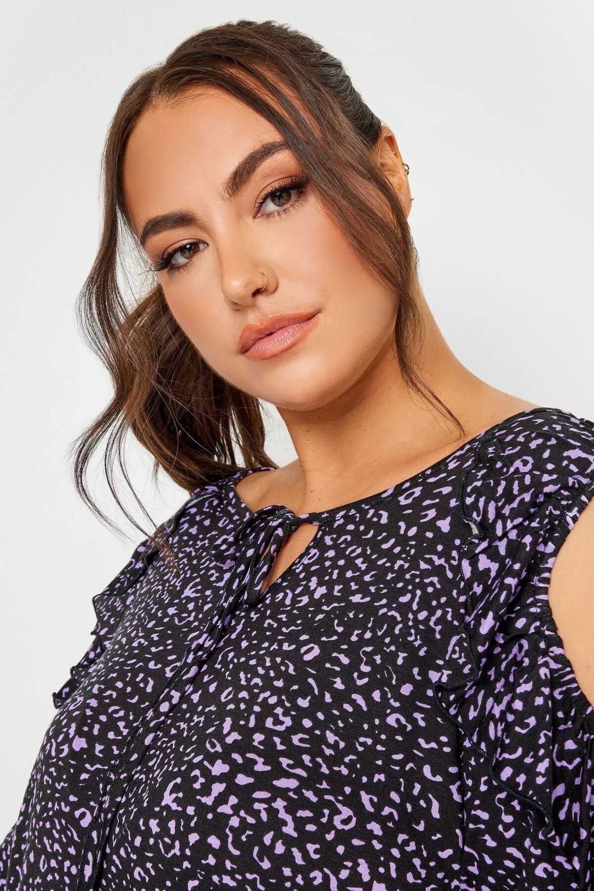 Büyük Beden Omuz Fırfır Detaylı Yakası Bağcıklı Fakir Kol Bluz 302486