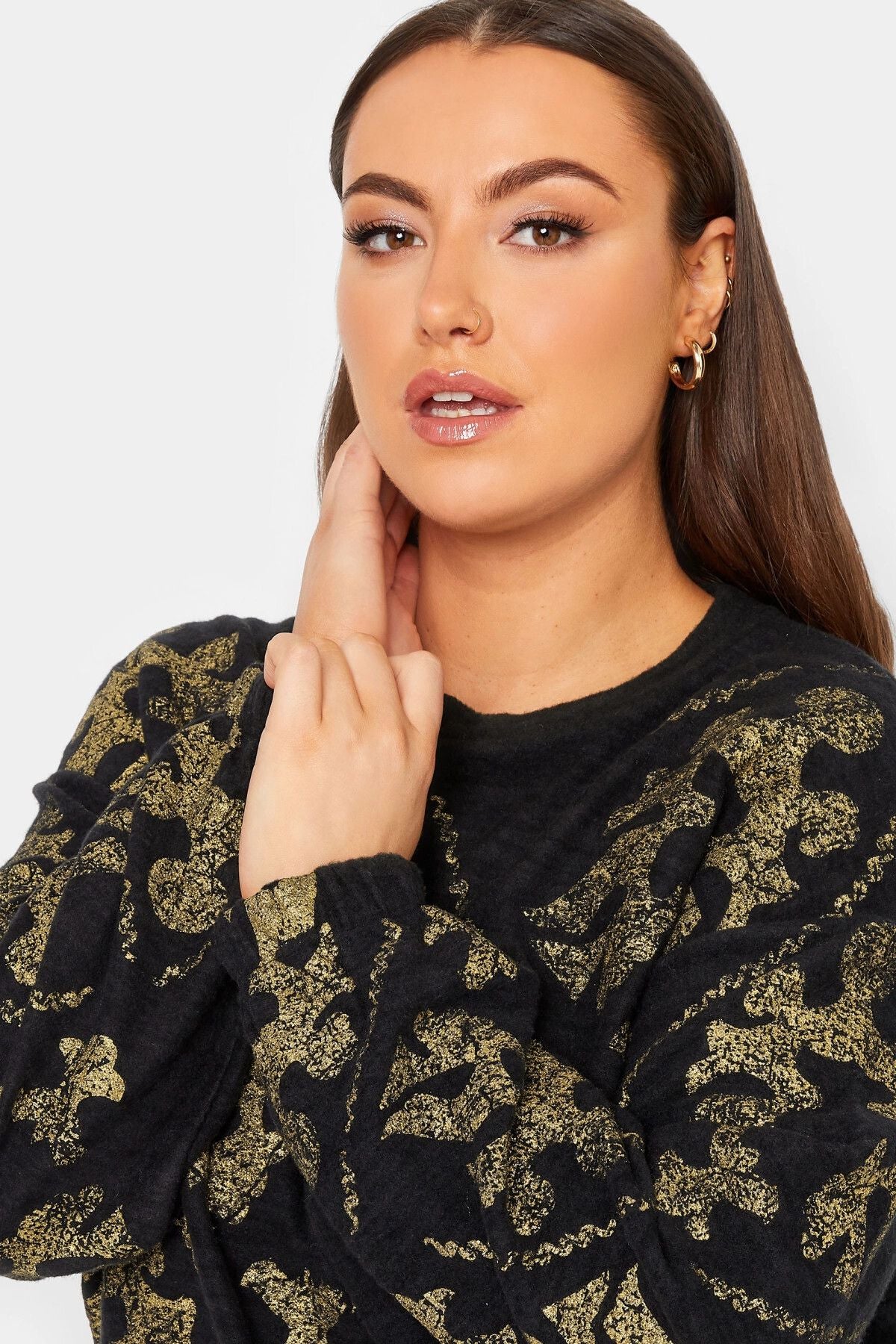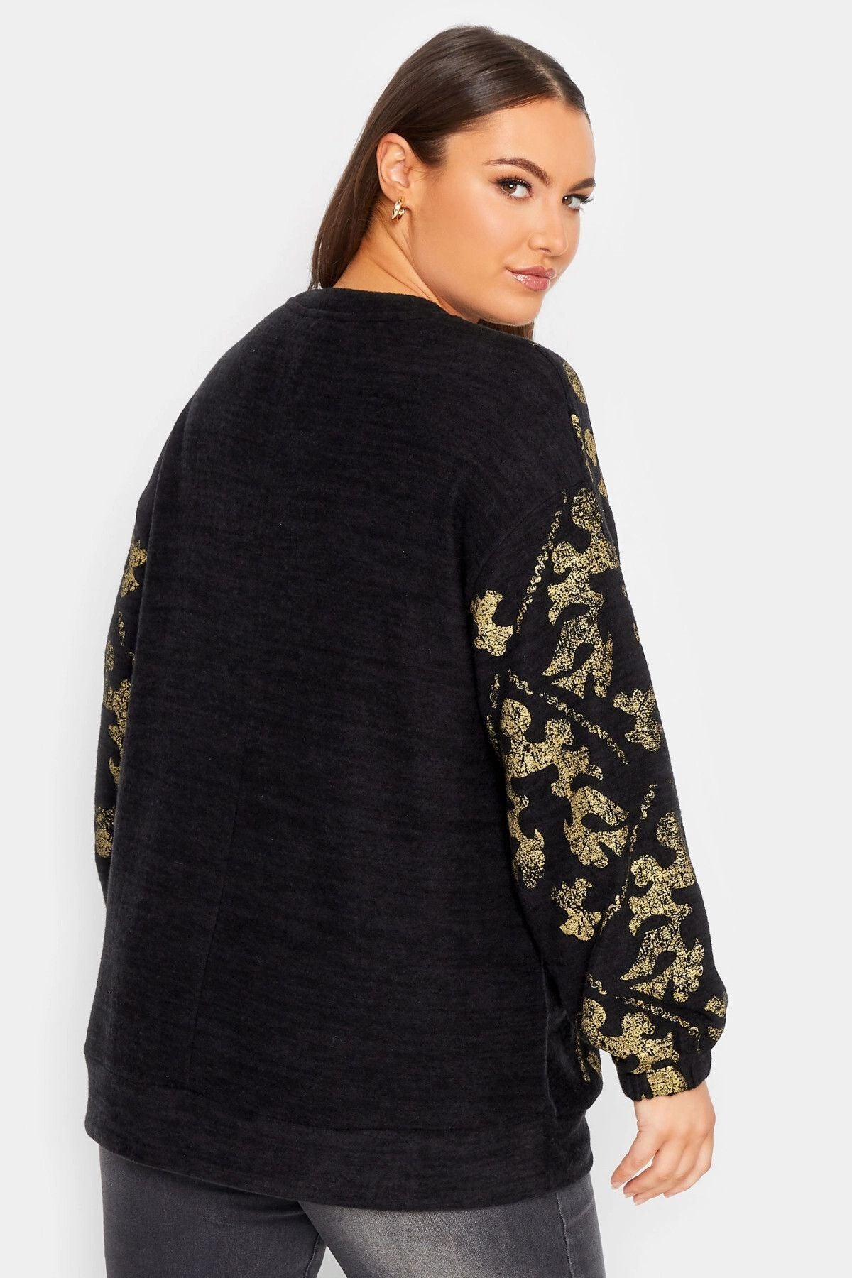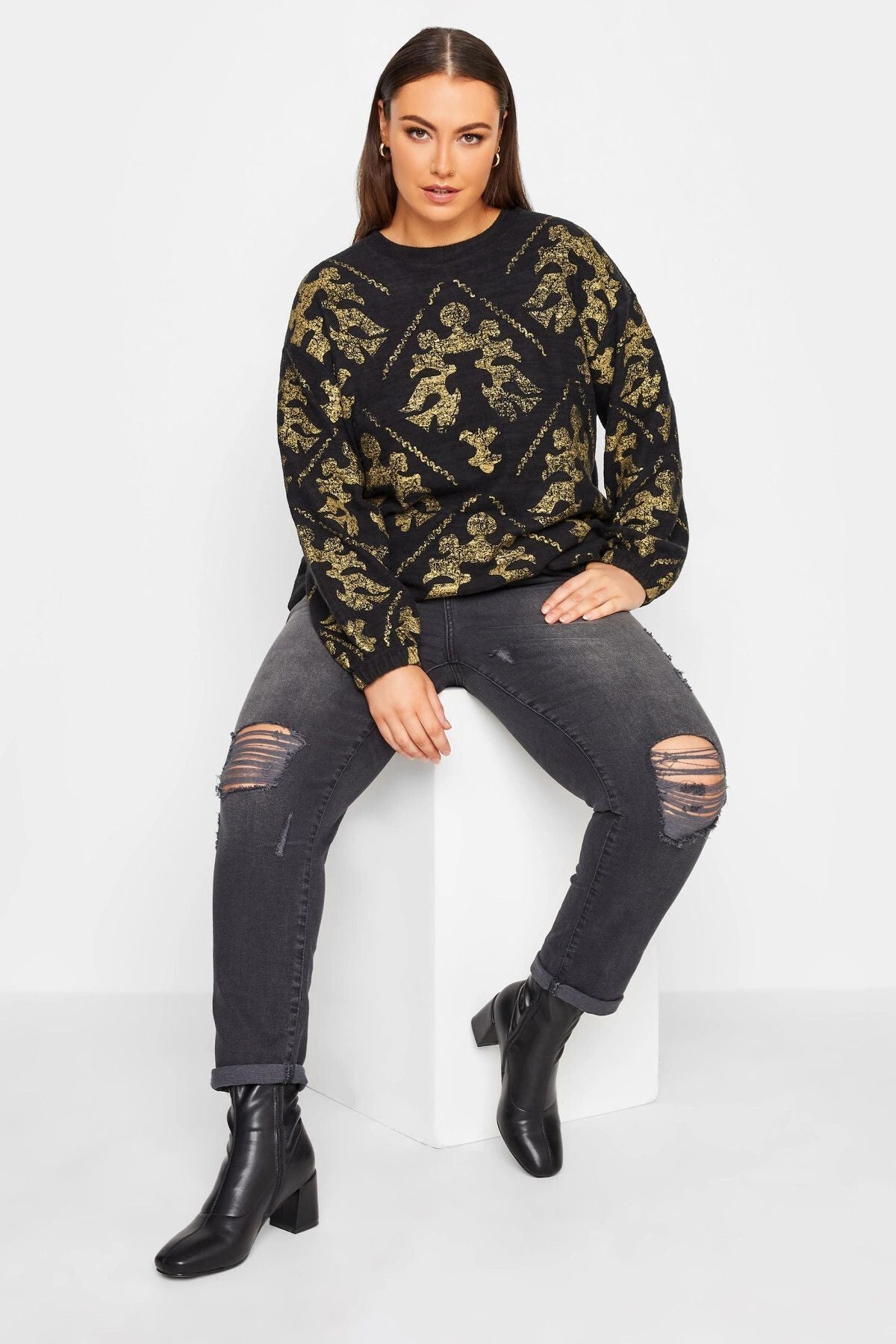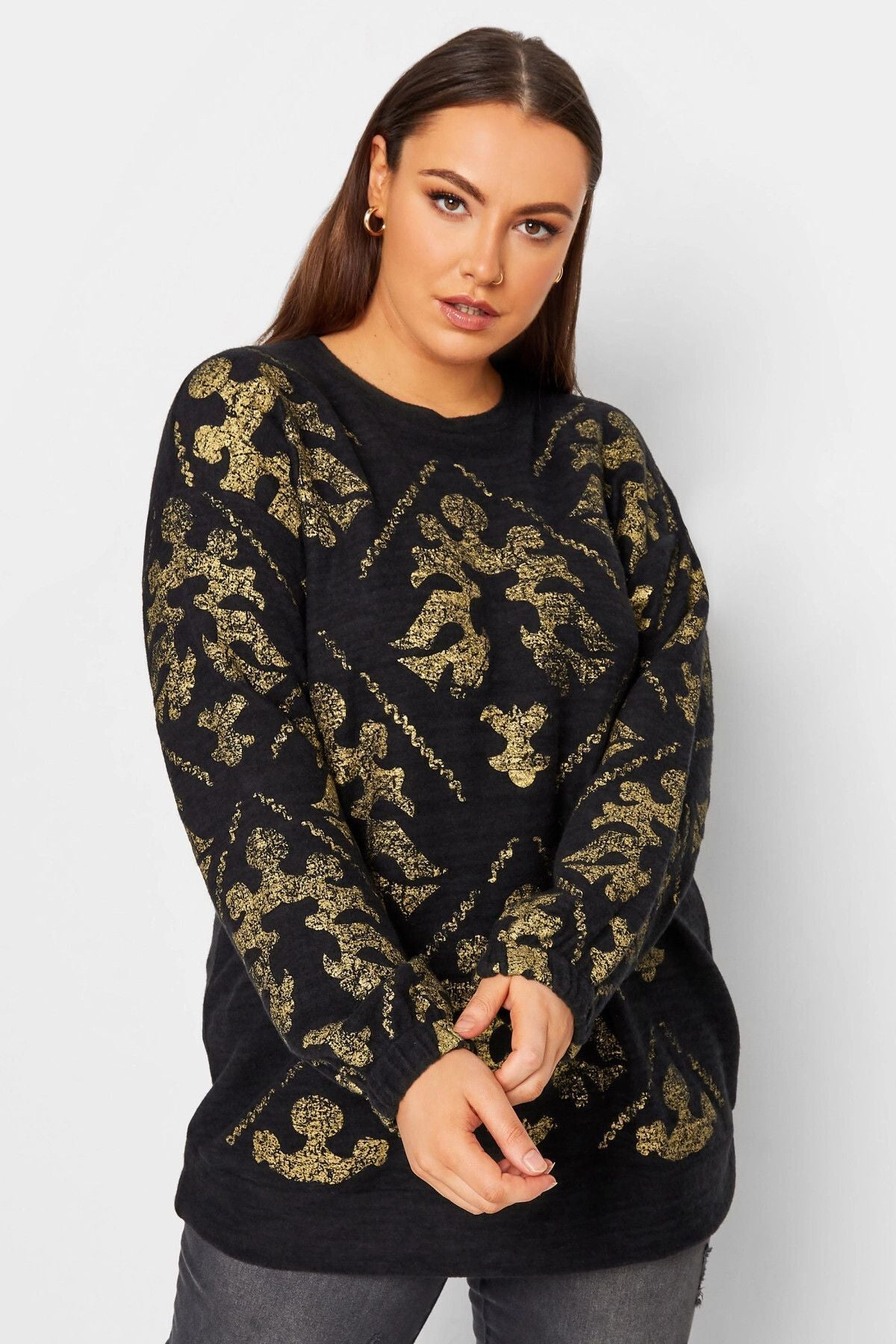 Büyük Beden Önü Baskılı Uzun Kollu Bisiklet Yaka Kazak 301559