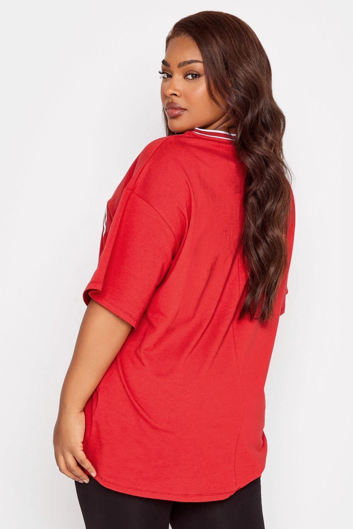 Büyük Beden Önü Baskılı V Yaka Yarım Kollu Uzun Kesim T-Shirt 302505