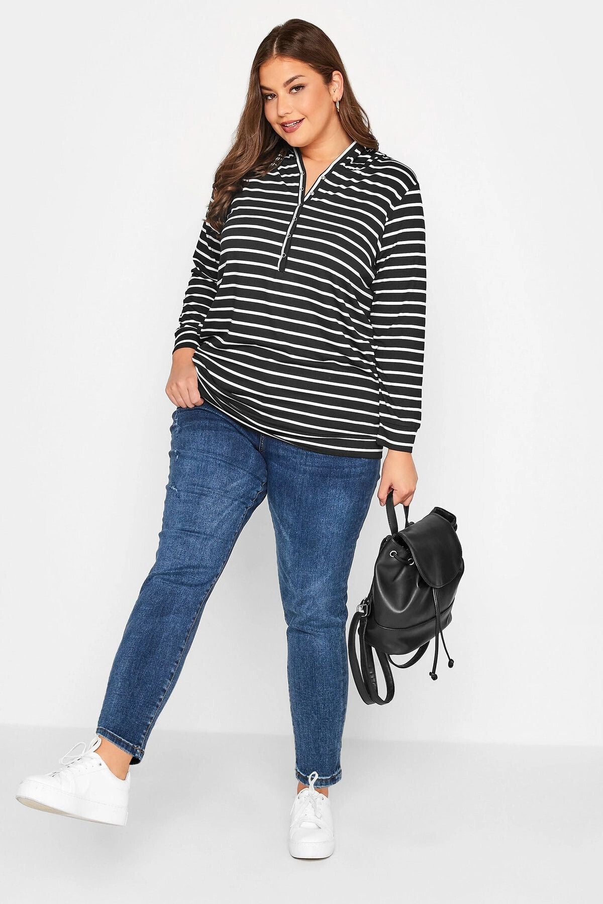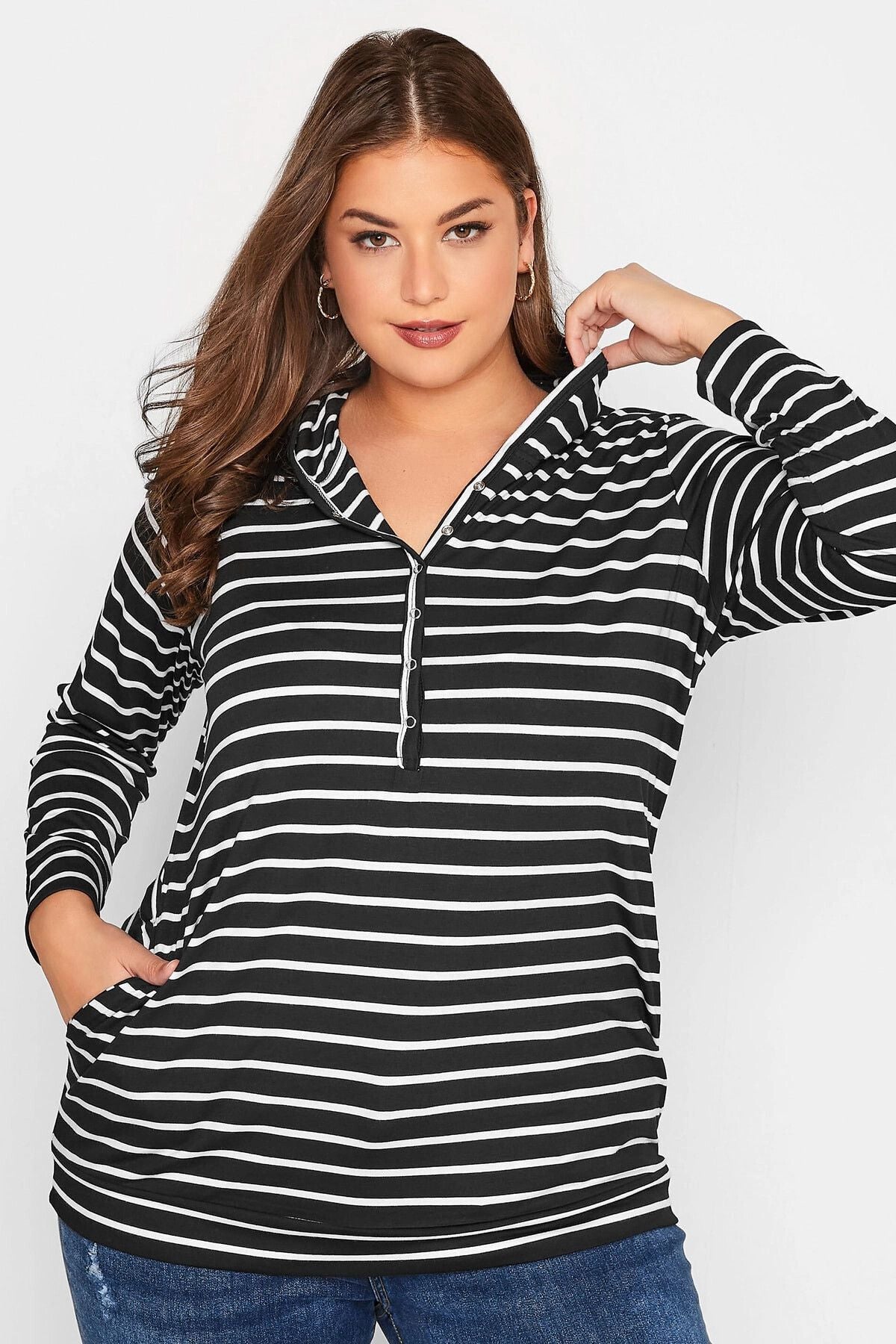 Büyük Beden Önü Çıtçıtlı Kapüşonlu Uzun Kollu T-shirt 301067
