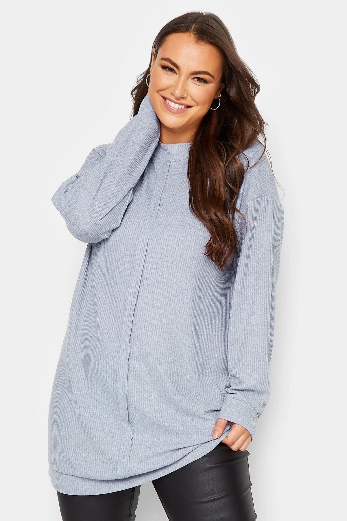 Büyük Beden Önü Dikiş Detaylı Uzun Kesim Triko Kazak 301715