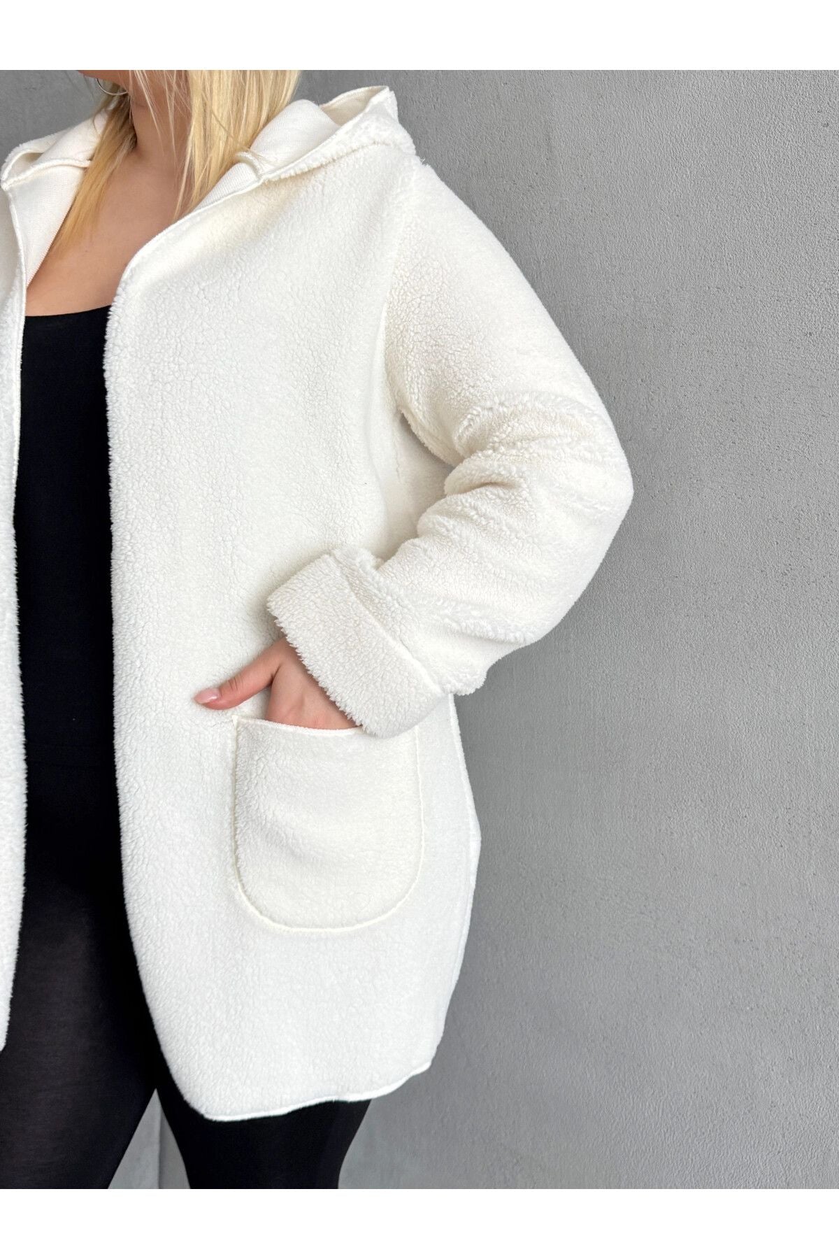 Büyük Beden Önü Kapamasız Cepli Kapüşonlu İnce Peluş Ceket 301256 Büyük Beden Önü Kapamasız Cepli Kapüşonlu İnce Peluş Ceket 301256