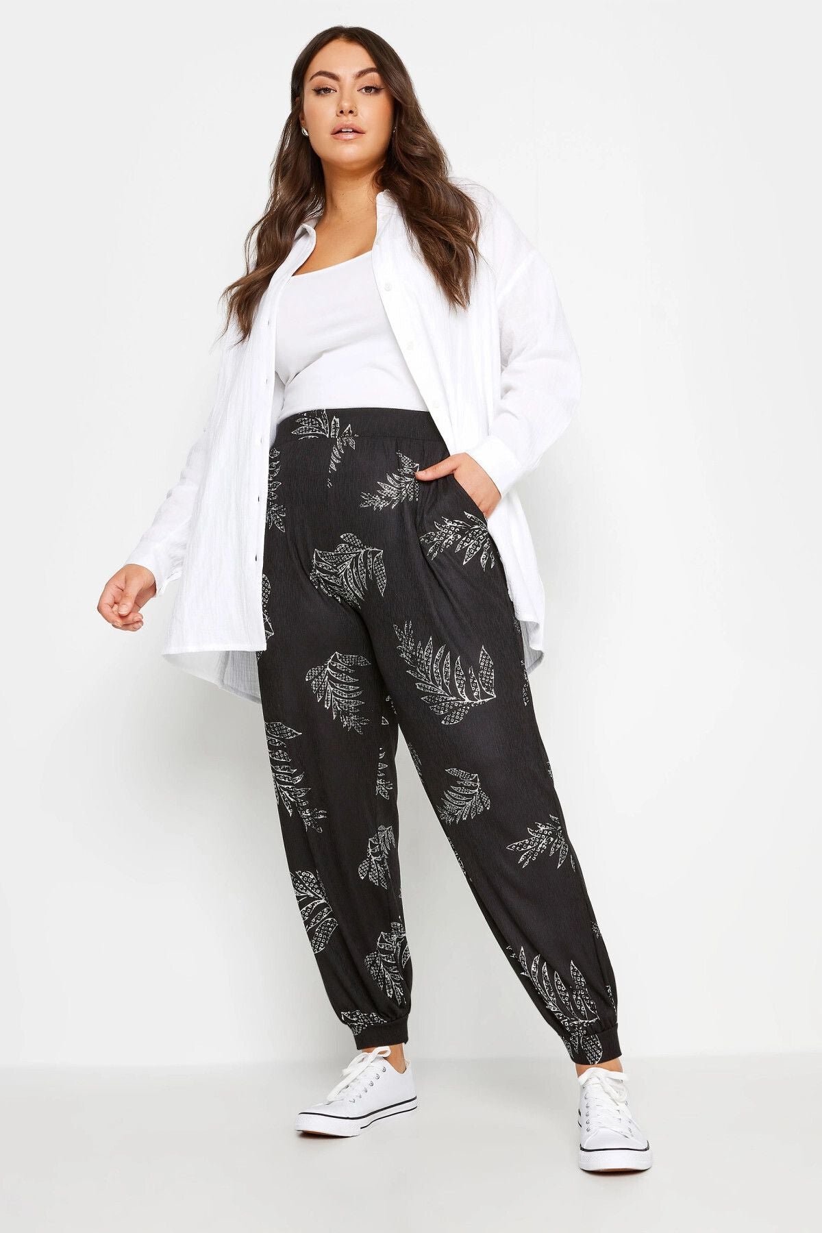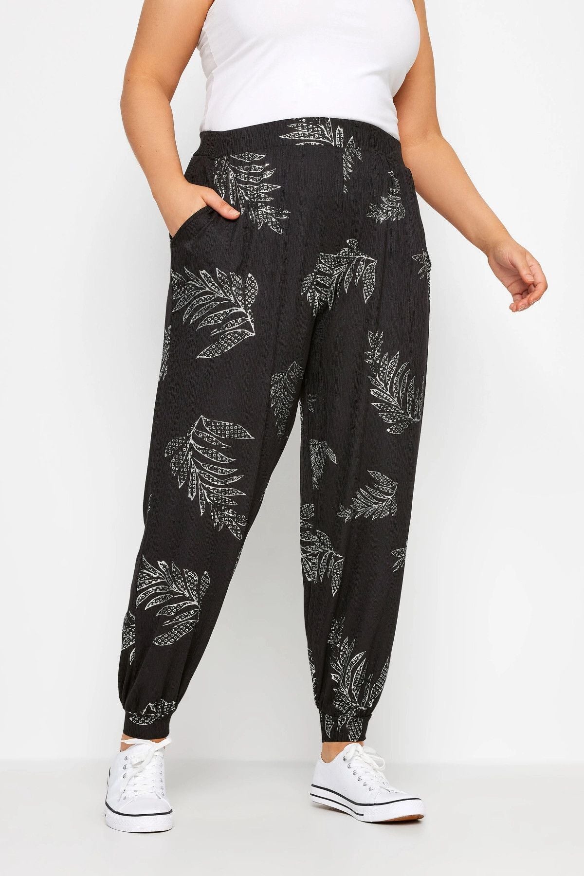 Büyük Beden Paçası ve Beli Lastikli Cepli İnce Pantolon 302580