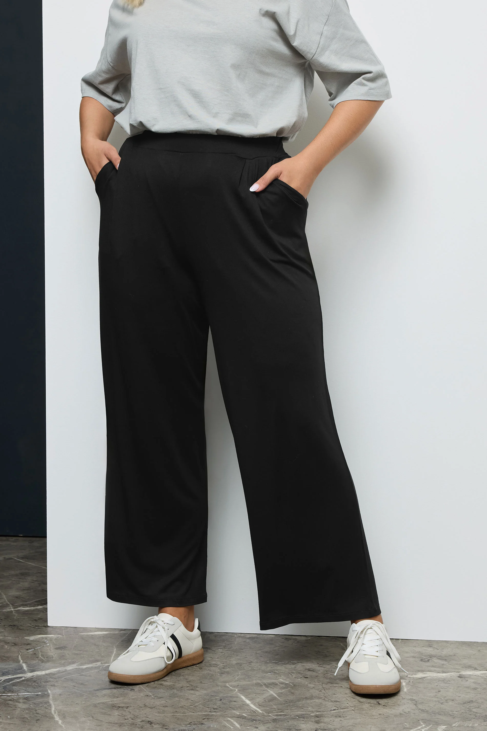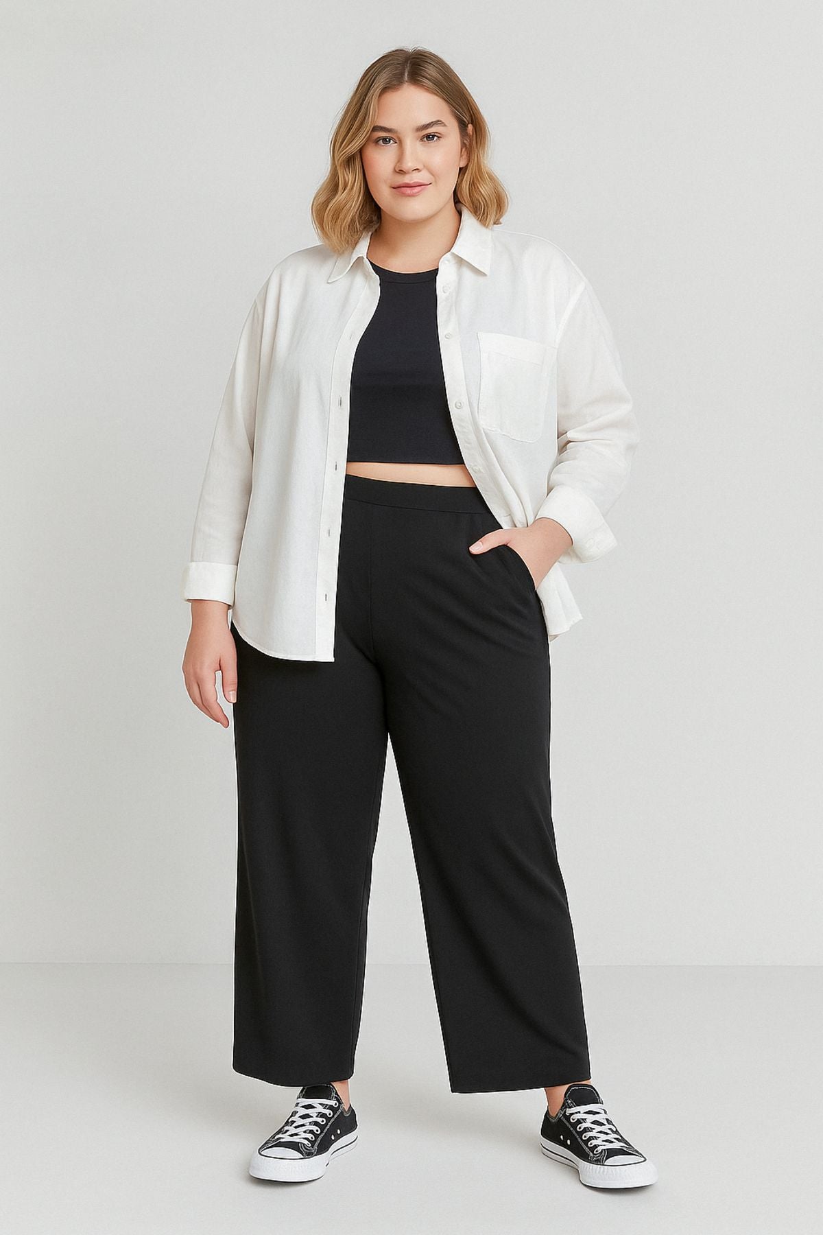 Büyük Beden Pile Detaylı Beli Lastikli Cepli Geniş Paça Pantolon 213839
