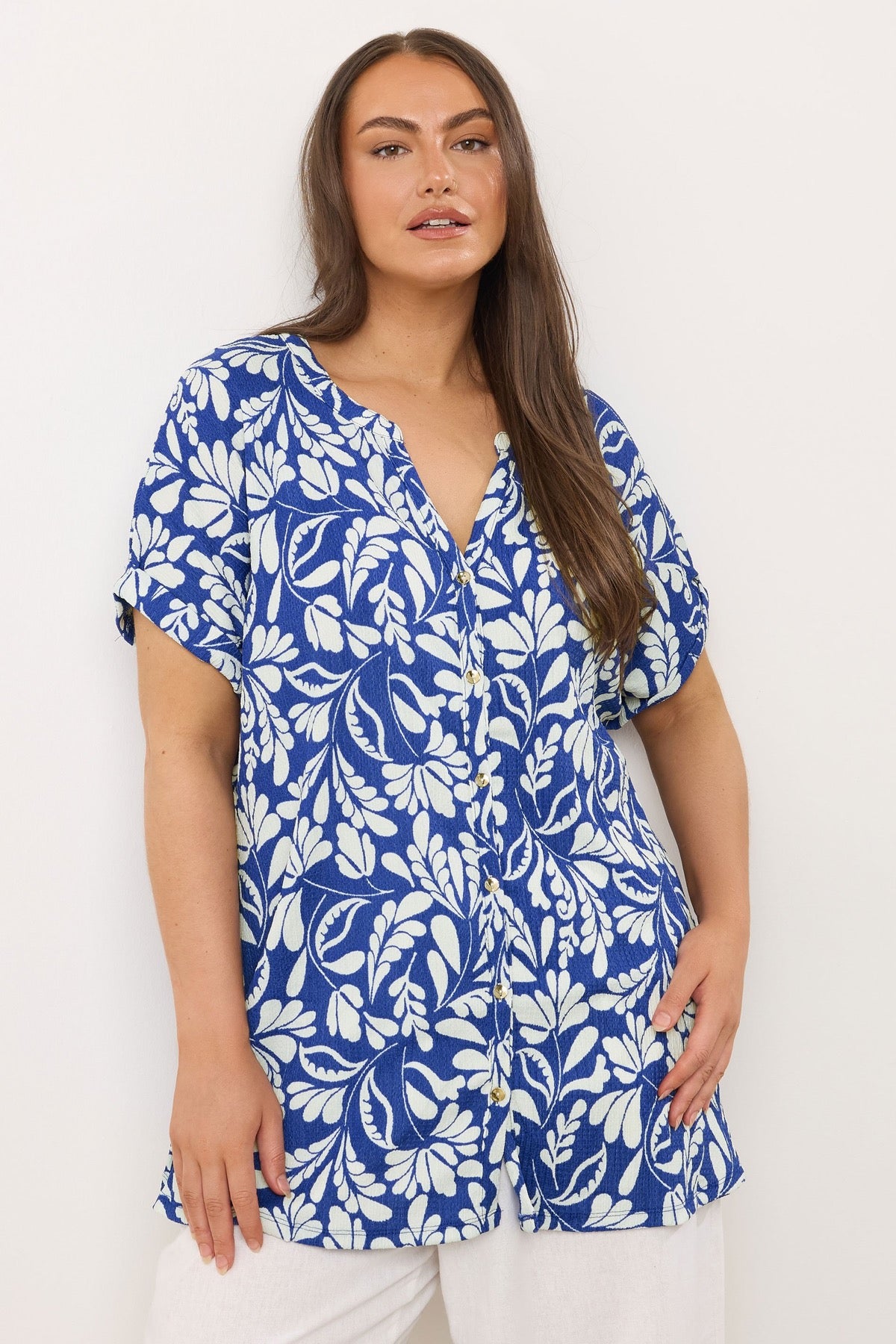 Büyük Beden Polo Yaka Kısa Kollu Düğmeli Çiçek Desenli Bluz 616290