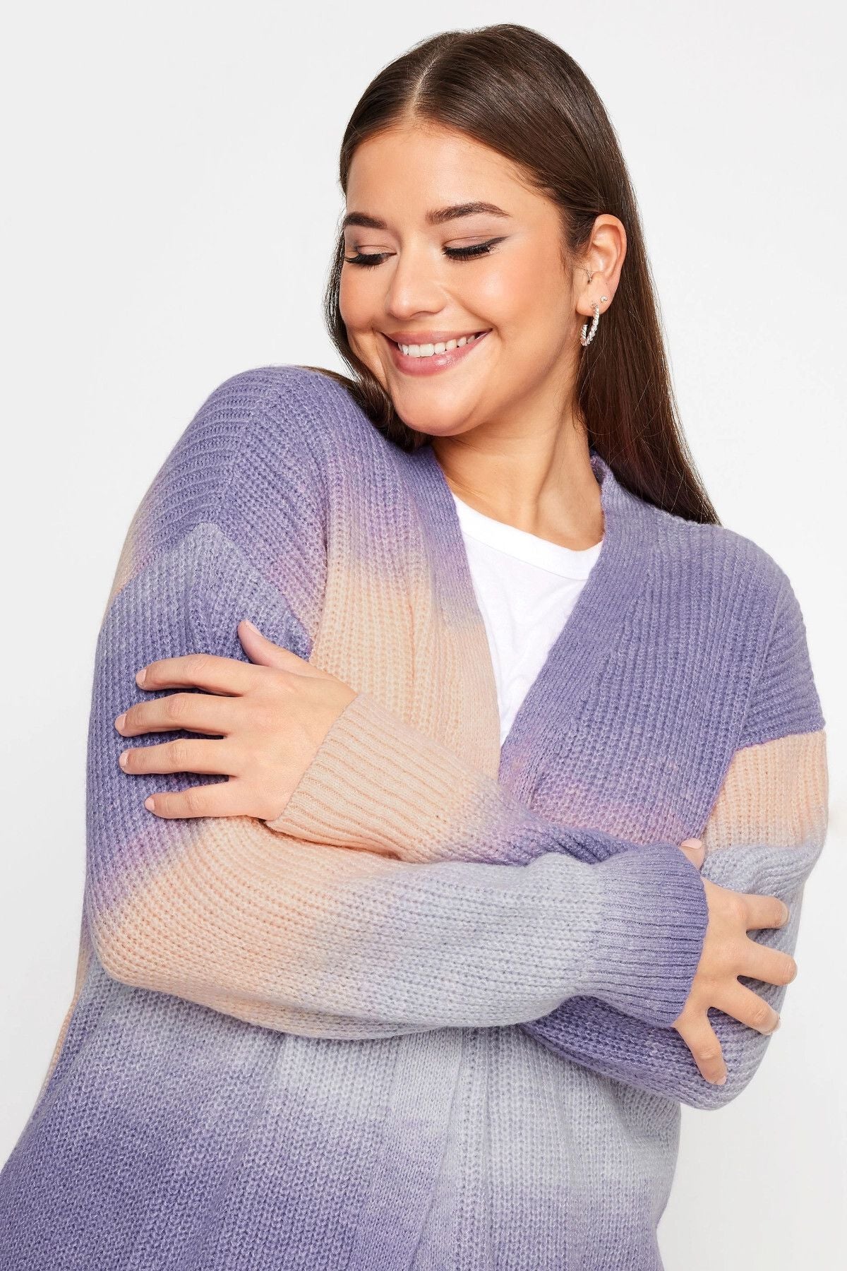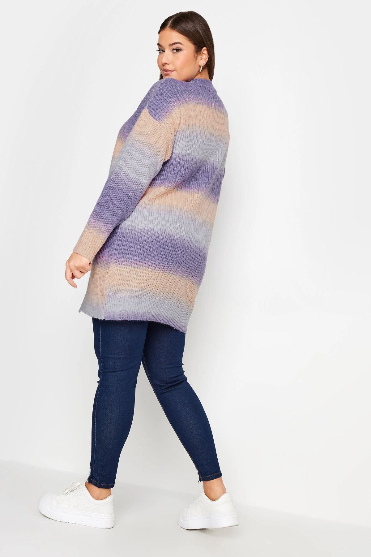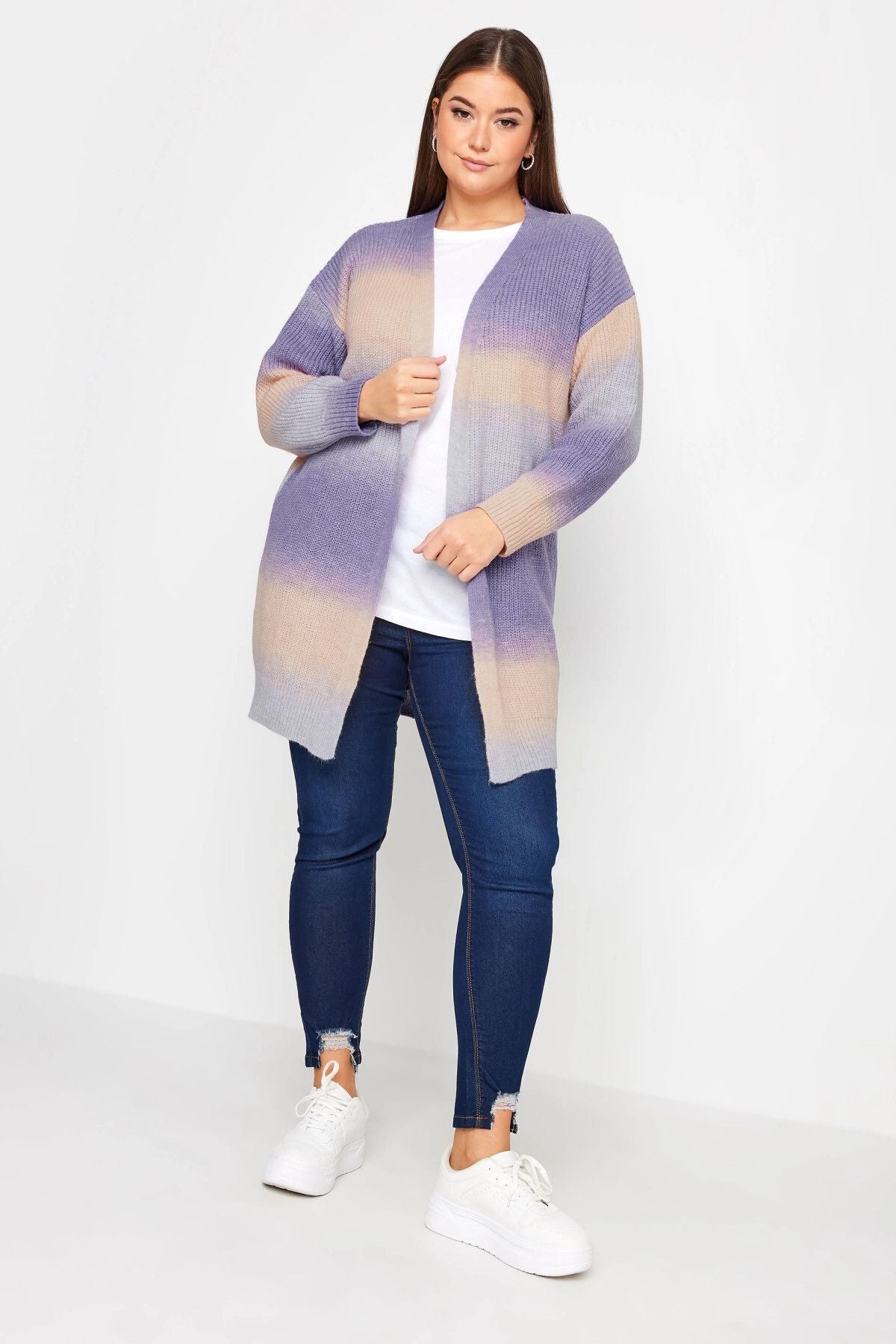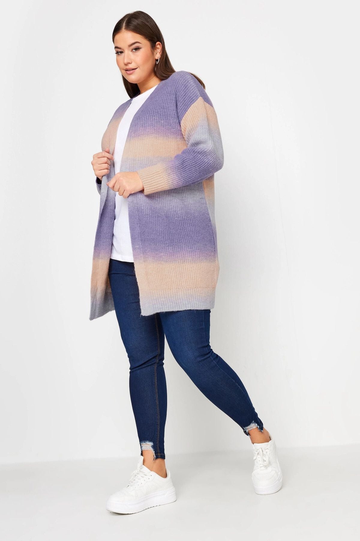 Büyük Beden Renk Geçişli Uzun Kollu Midi Boy Triko Hırka 302312