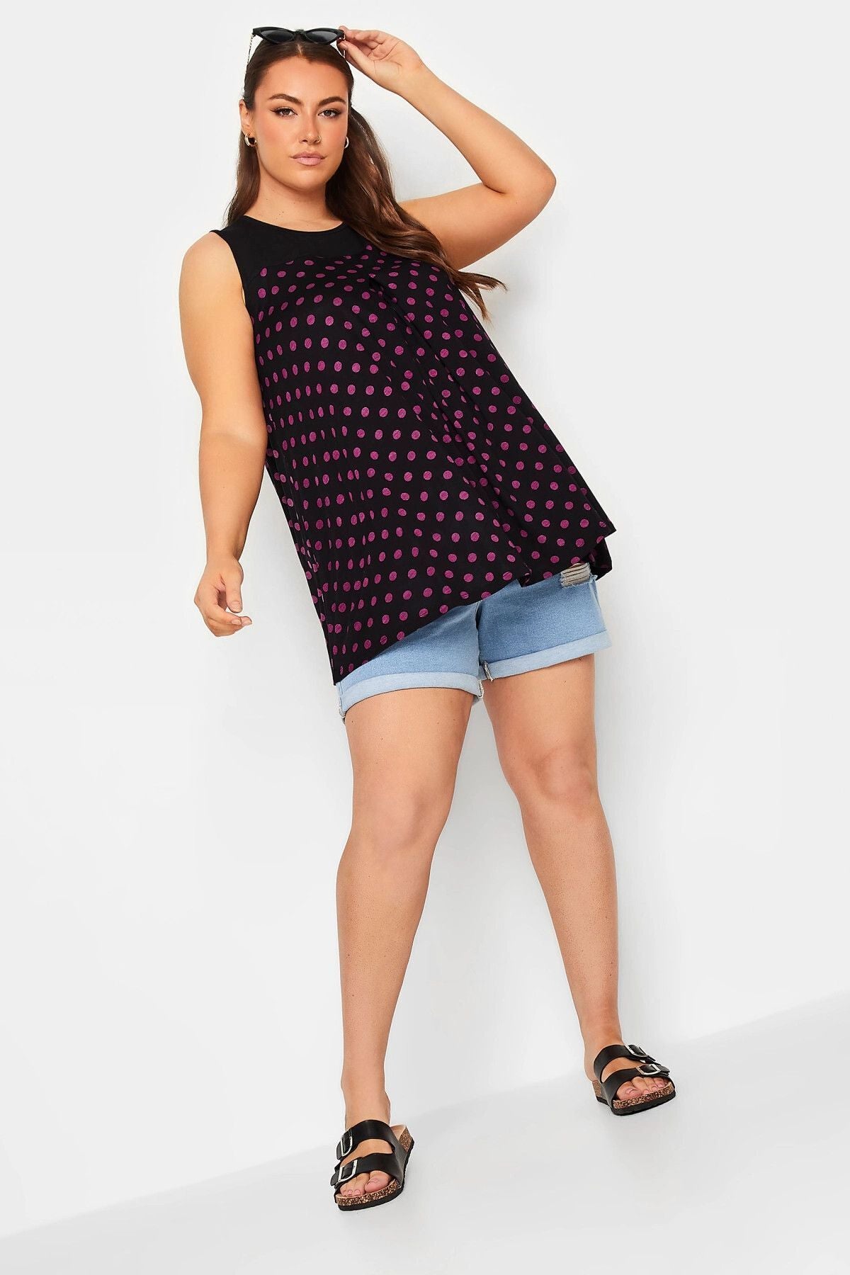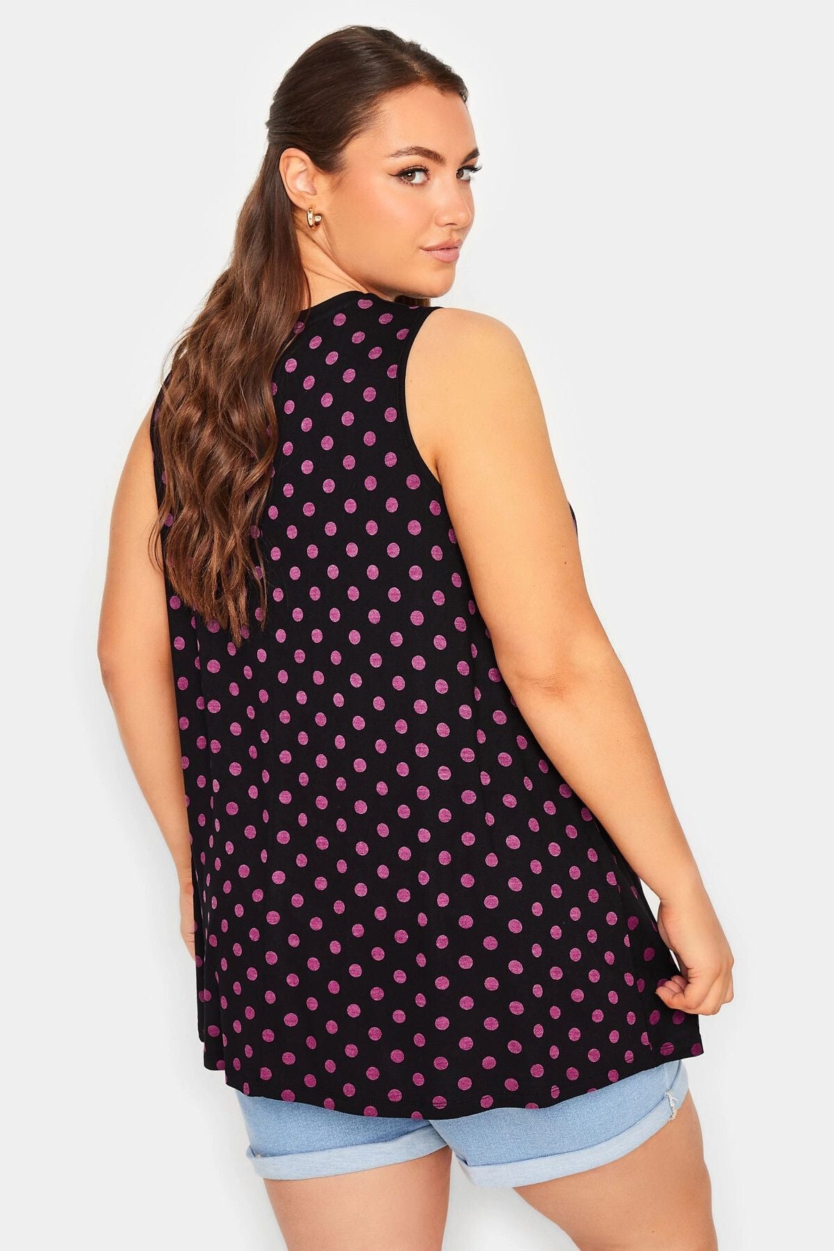 Büyük Beden Sıfır Kol Bisiklet Yaka Puantiye Desenli Bluz 302249