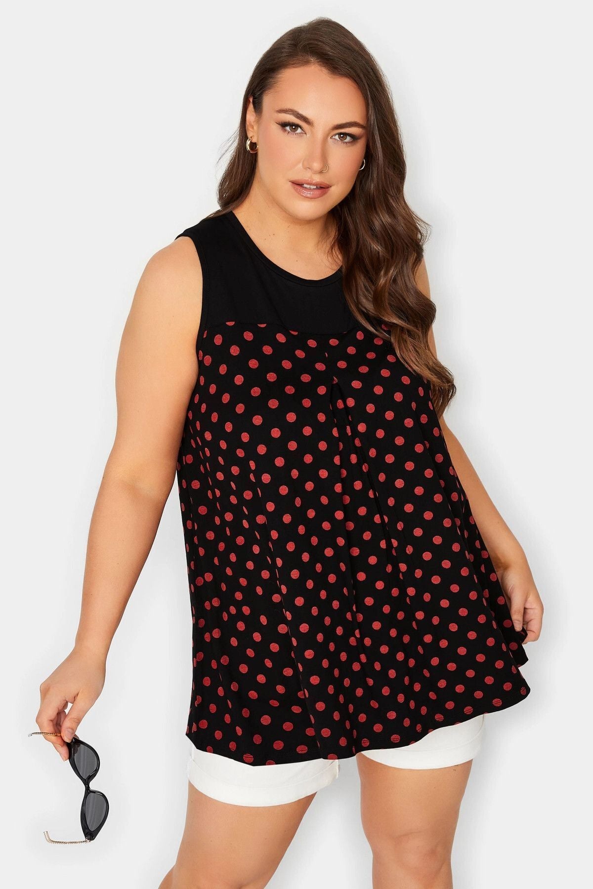 Büyük Beden Sıfır Kol Bisiklet Yaka Puantiye Desenli Bluz 302252