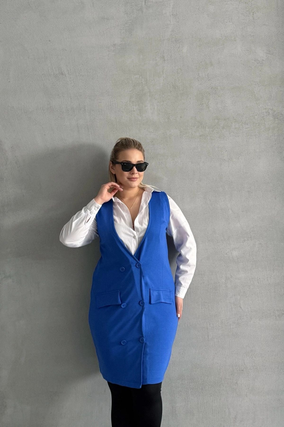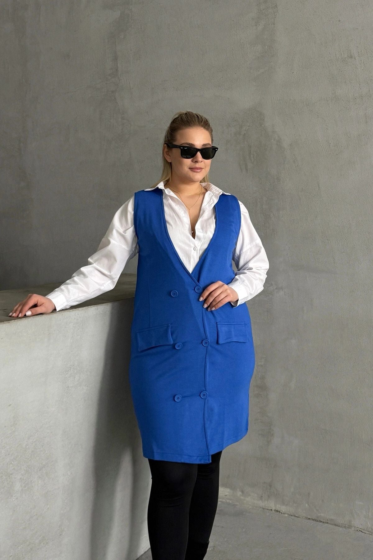 Büyük Beden Sıfır Kol Önü Düğmeli Cep Görünümlü Hırka 300862