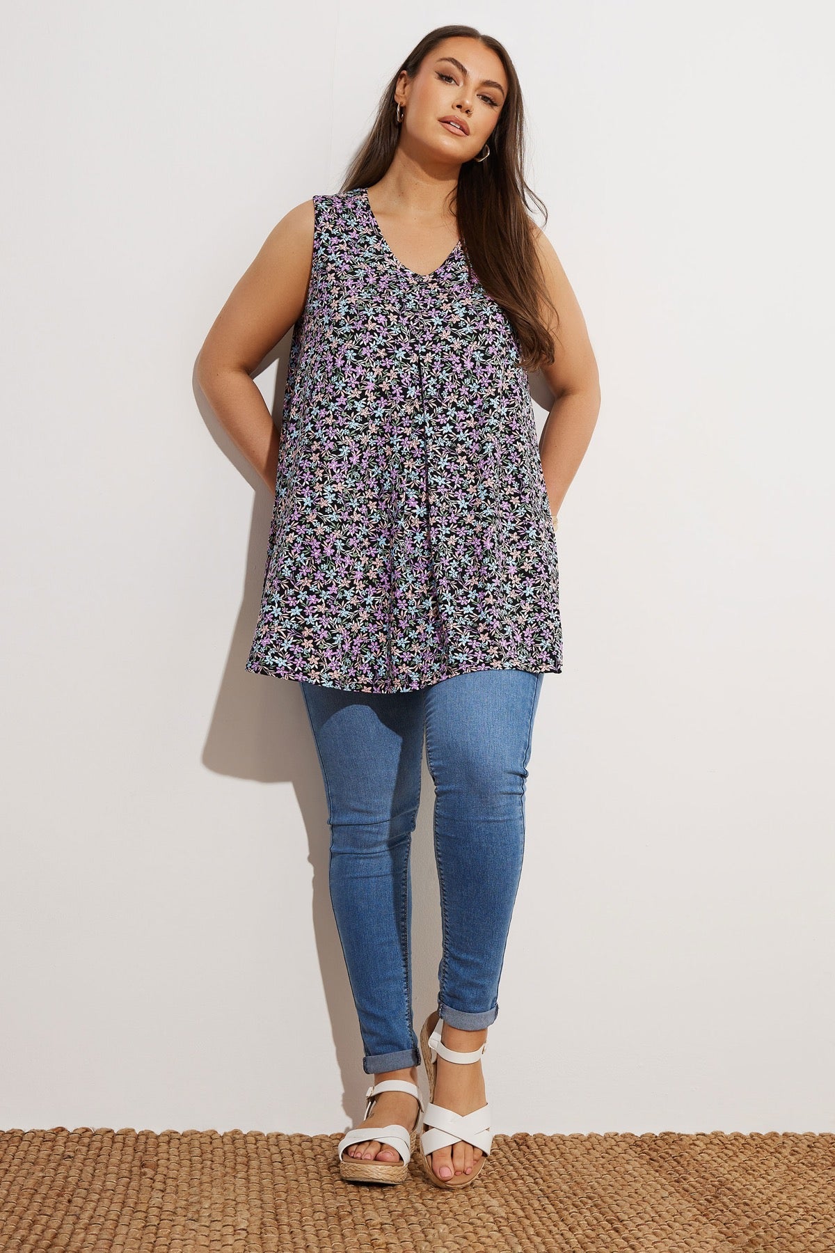 Büyük Beden Sıfır Kol V Yaka Çiçek Desenli Eteği Bollaşan Bluz 303420