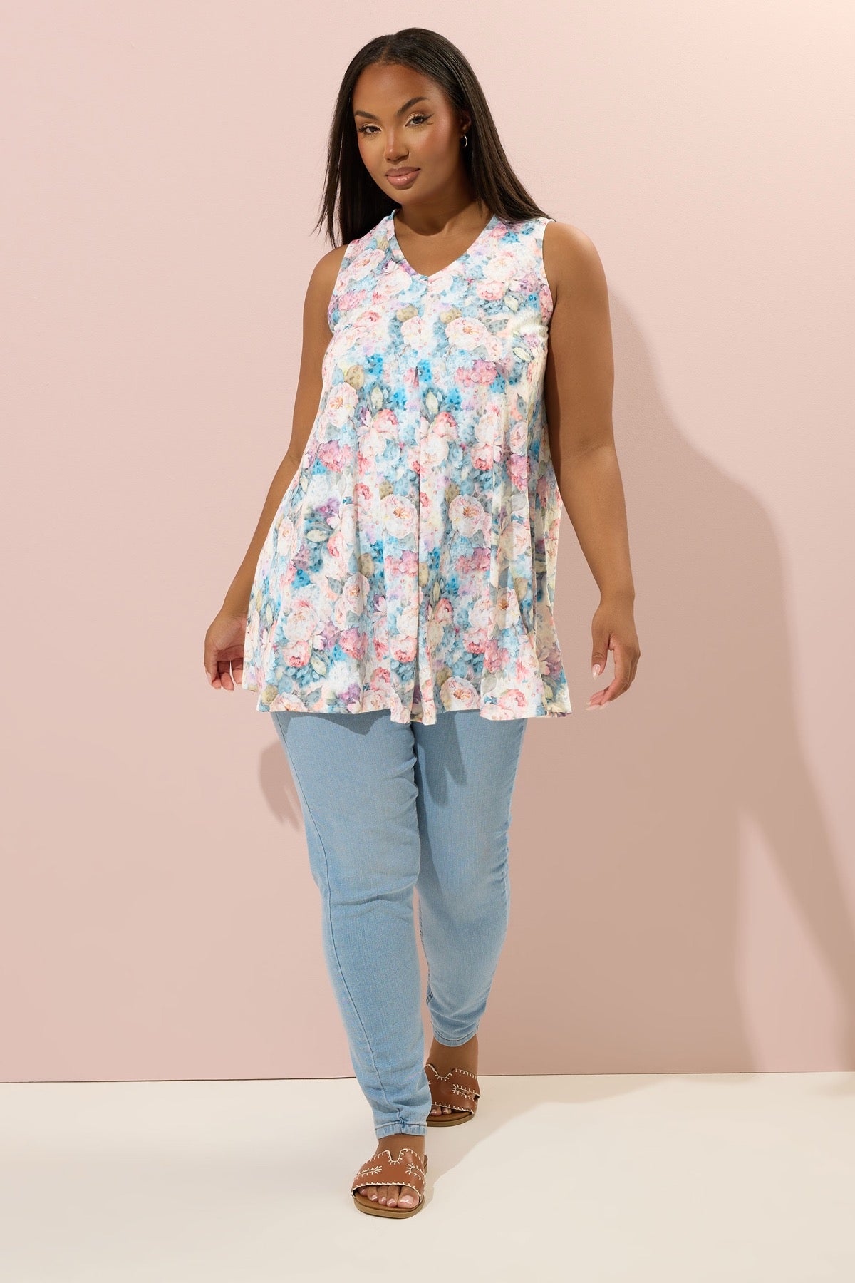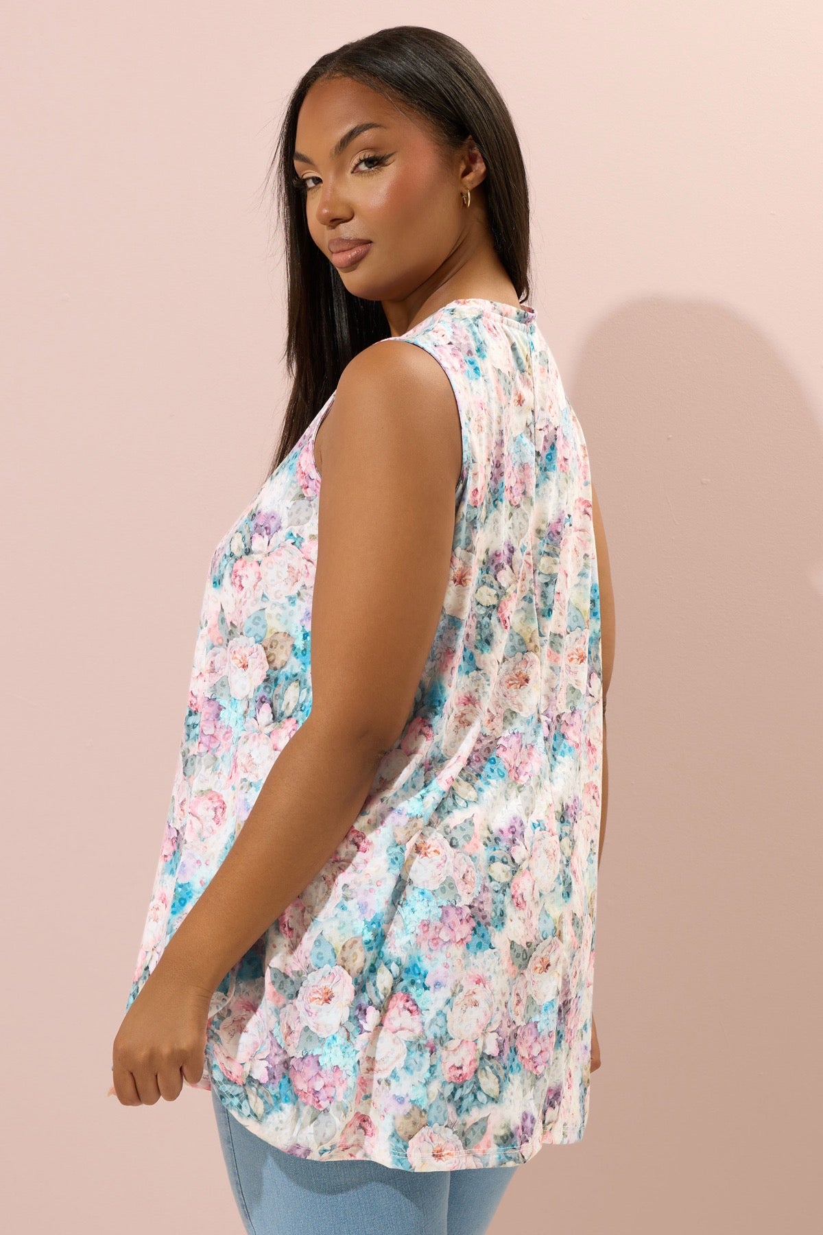 Büyük Beden Sıfır Kol V Yaka Çiçek Desenli Eteği Bollaşan Bluz 304188
