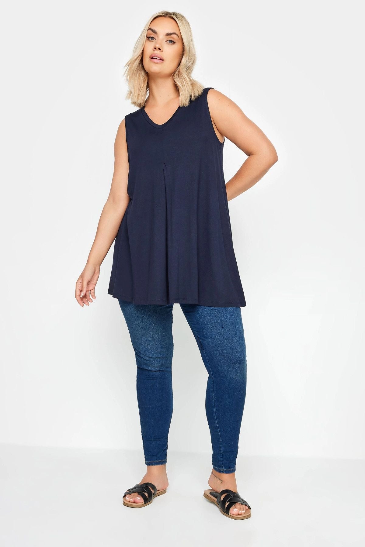 Büyük Beden Sıfır Kol V Yaka Eteği Bollaşan Basic Bluz 303106