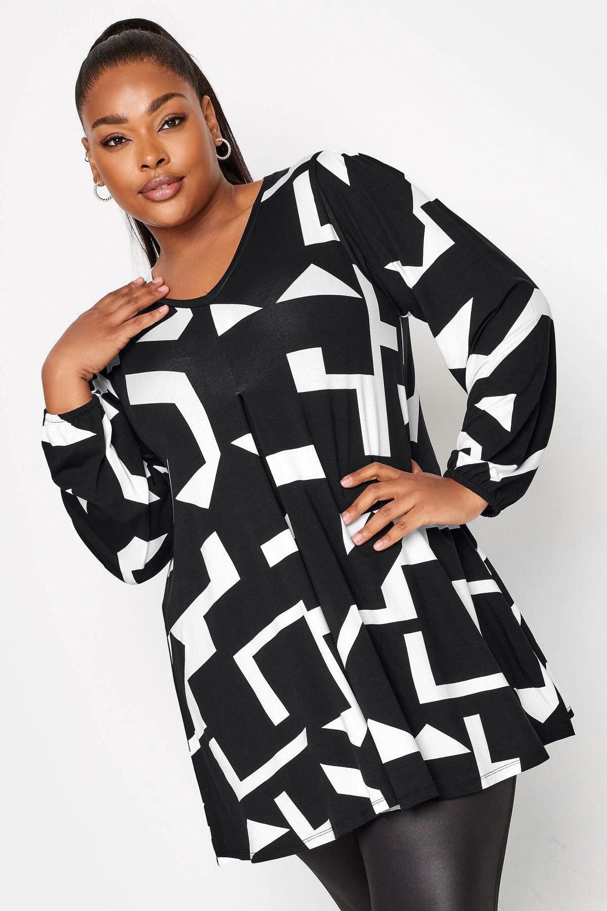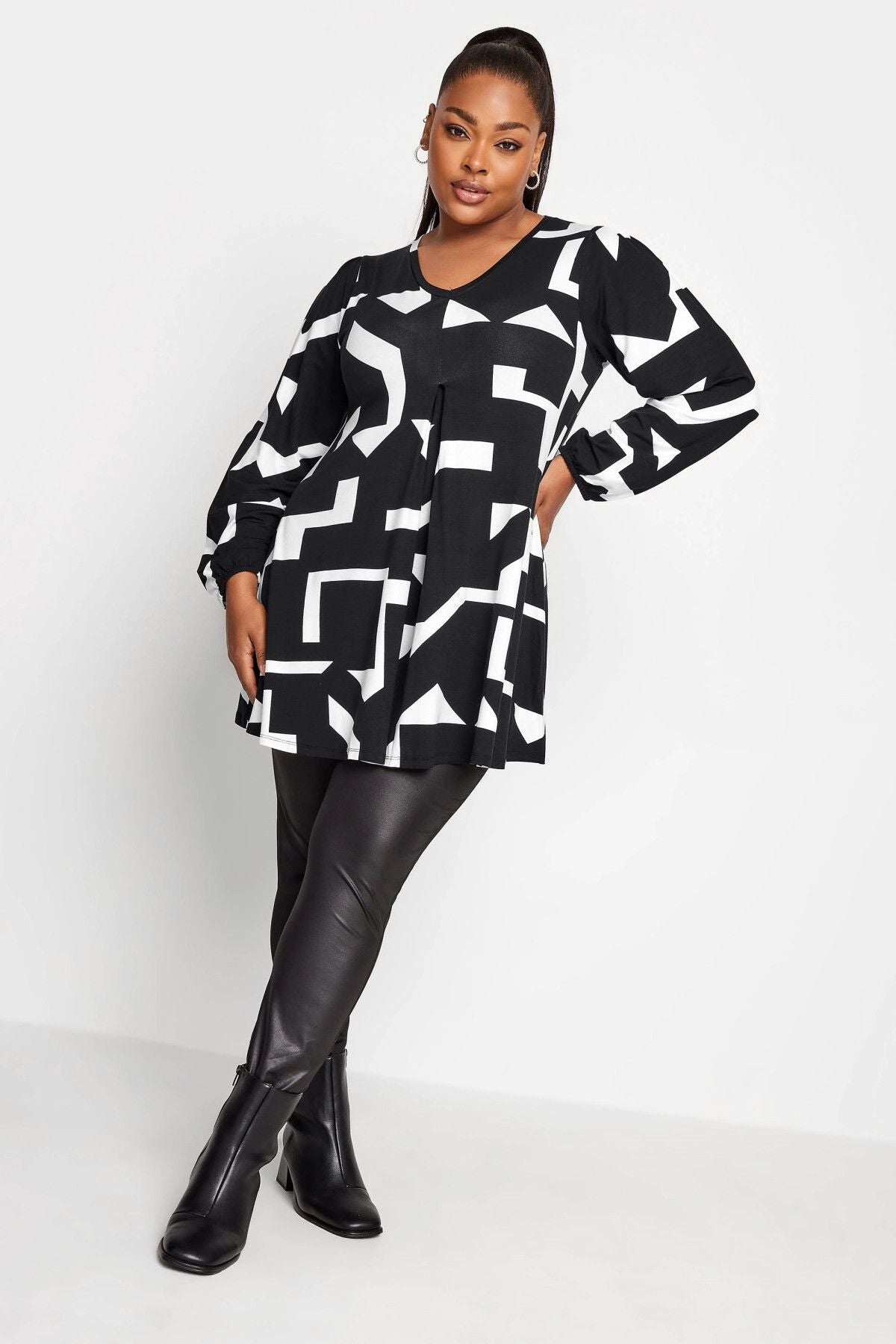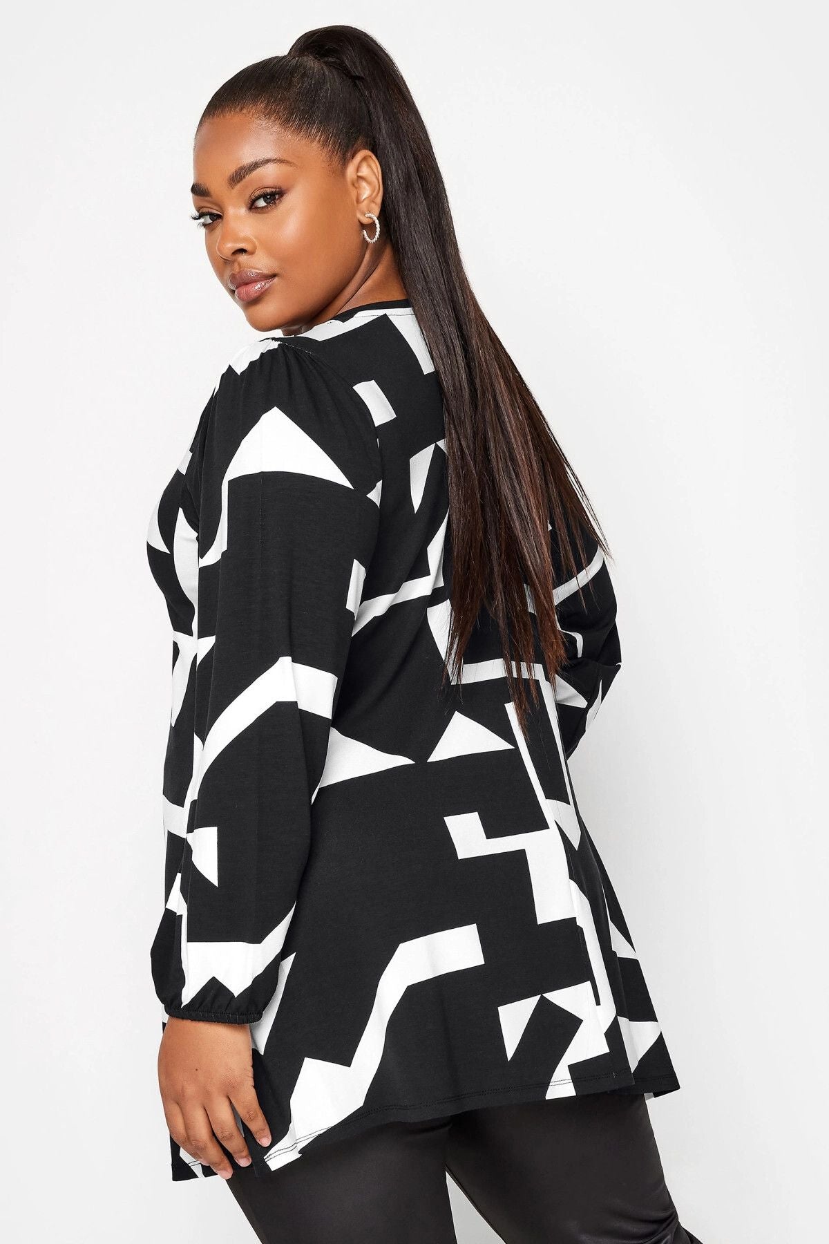 Büyük Beden Soyut Baskılı V Yaka Uzun Kollu Bluz 321228