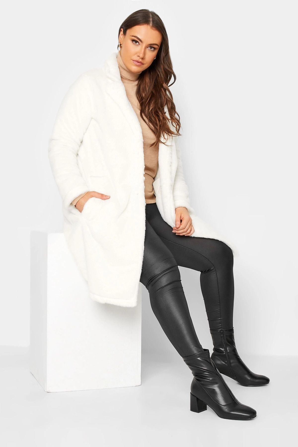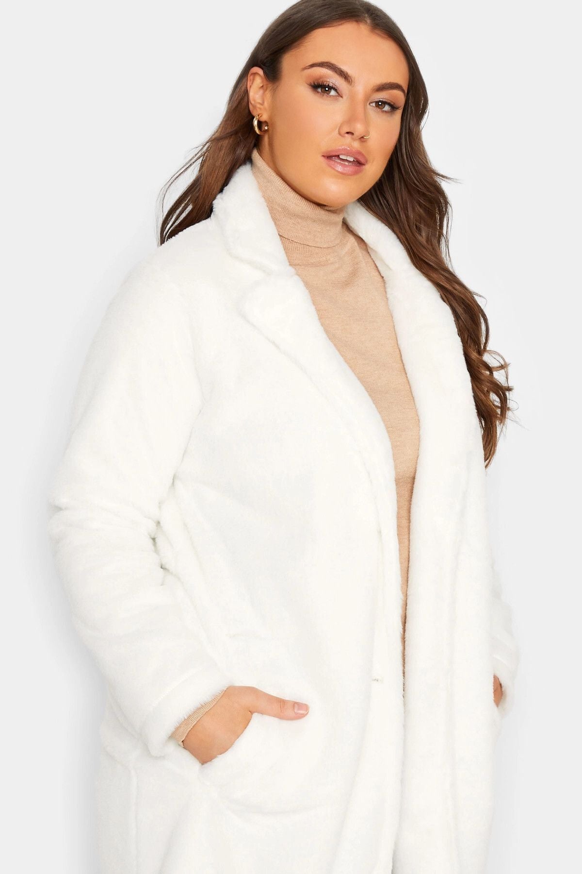 Büyük Beden Suni Kürk Uzun Kesim Cepli Düğmeli Kaban 301586